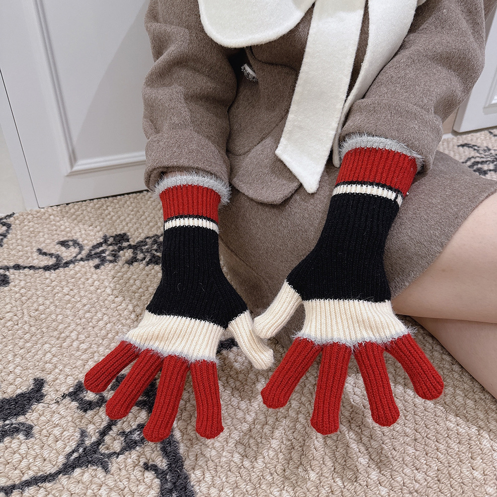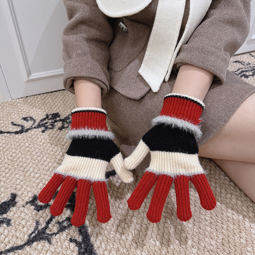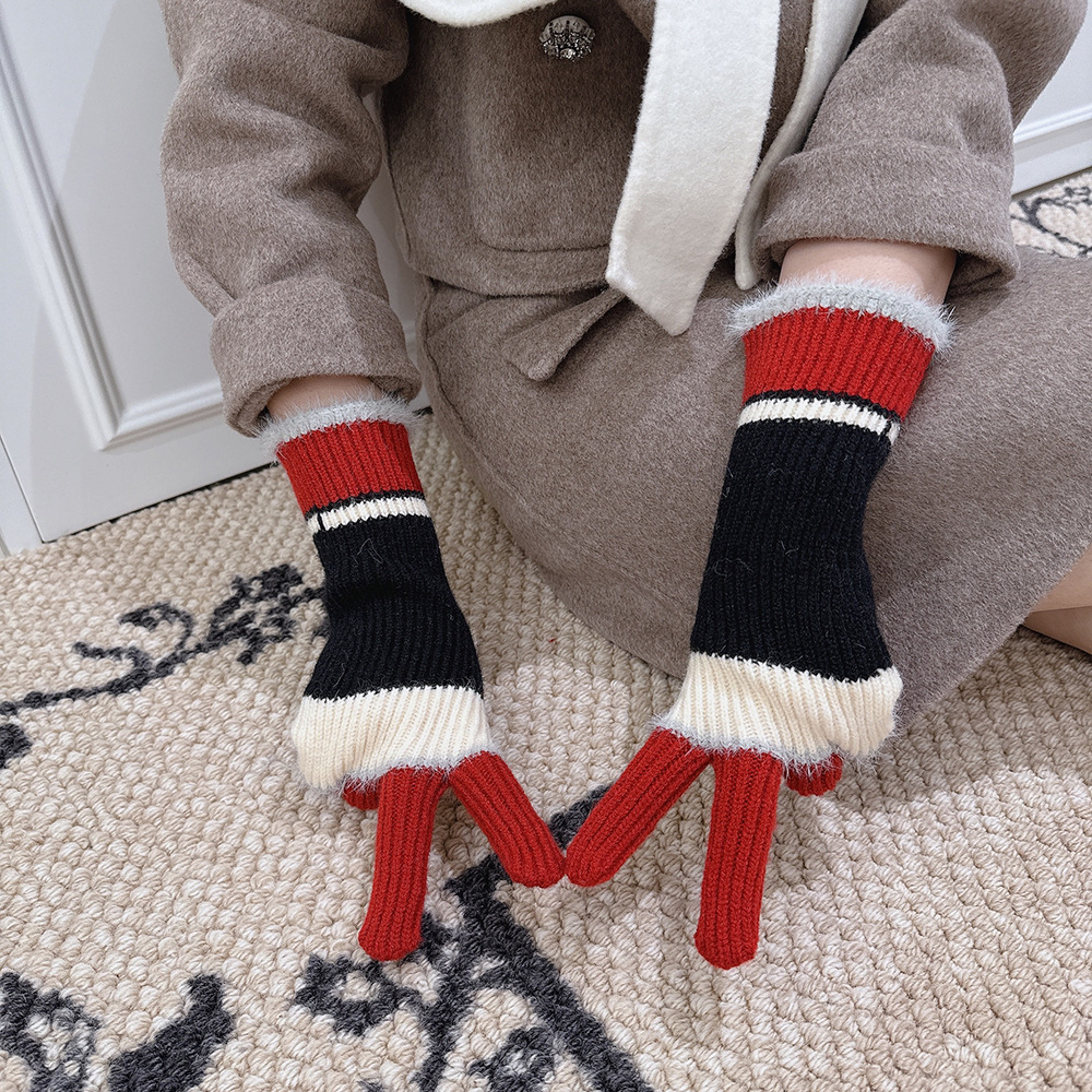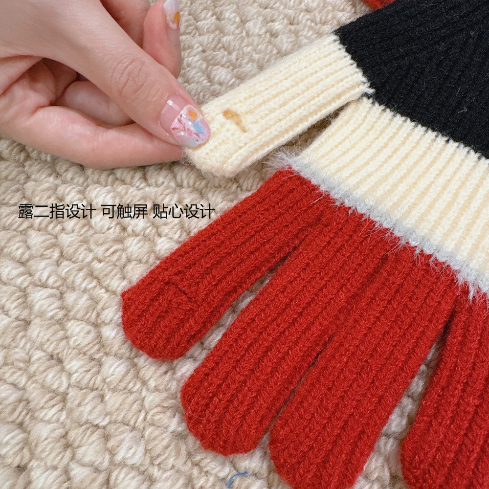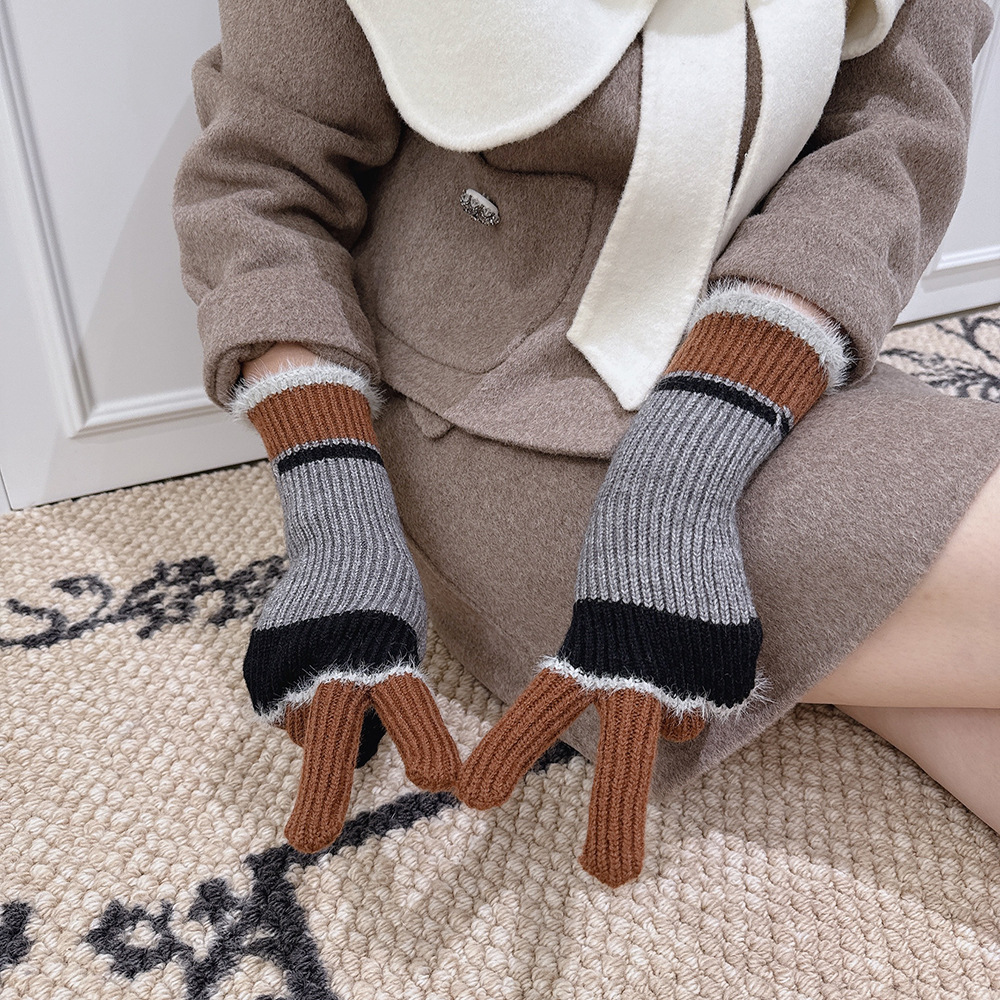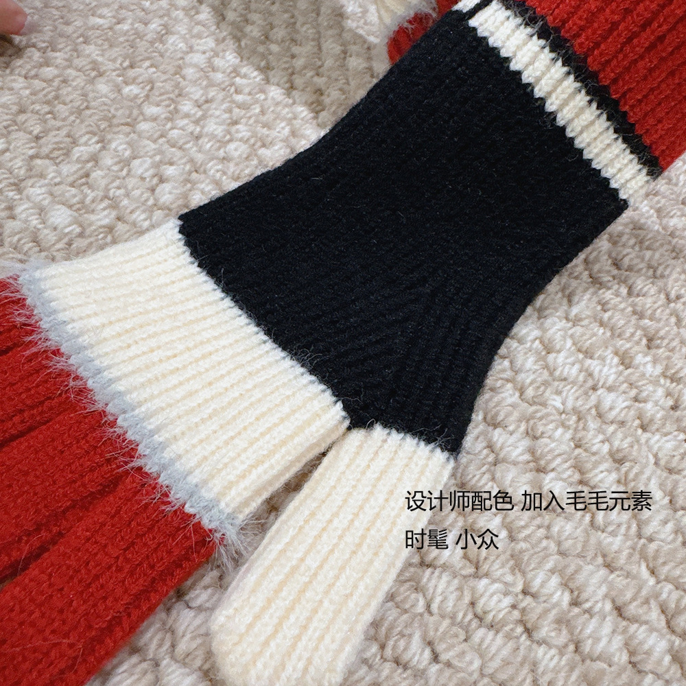 紧密针织加厚保暖,露指可触屏设计,方便使用,撞色搭配长毛圈设计,可爱甜美超级炸街,韩系风十足~