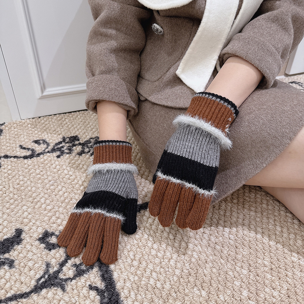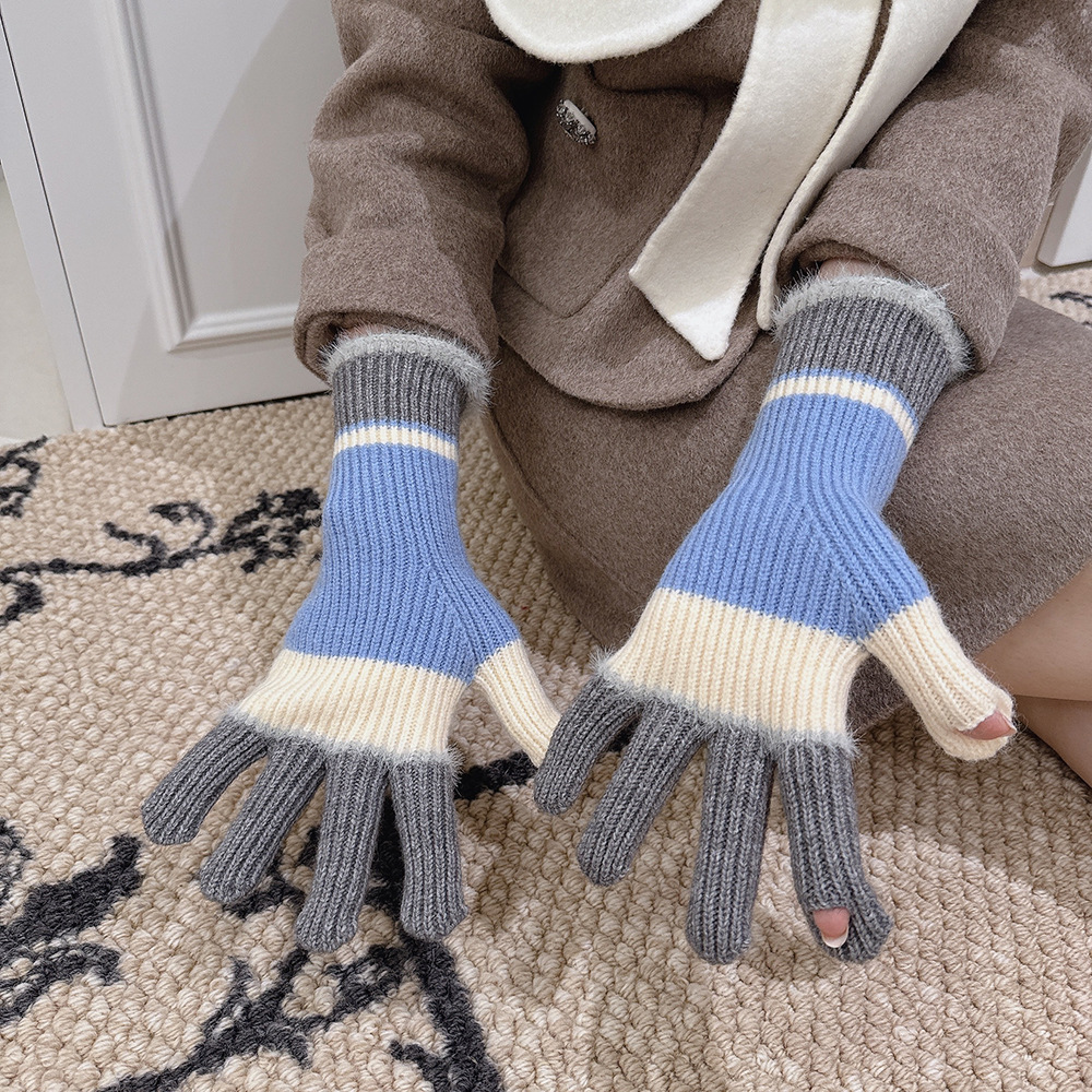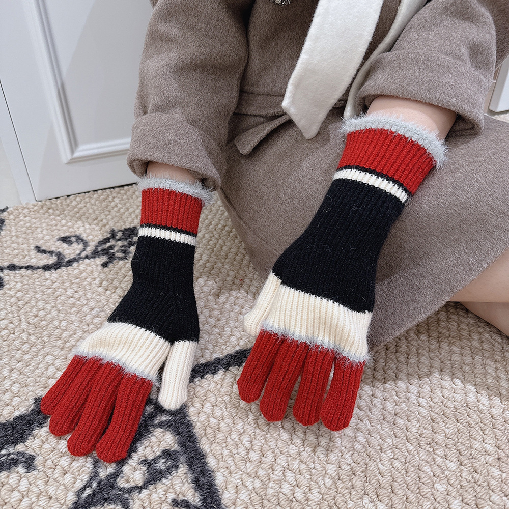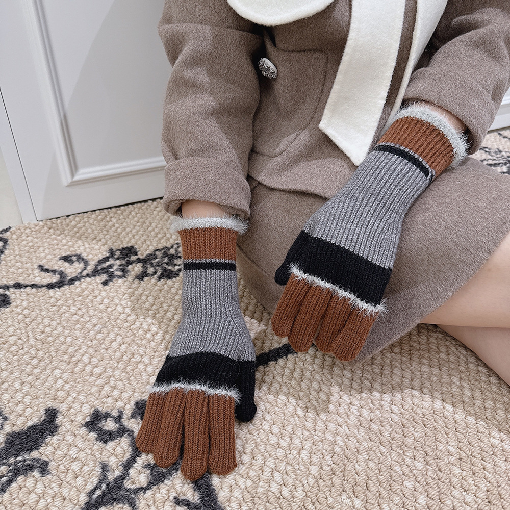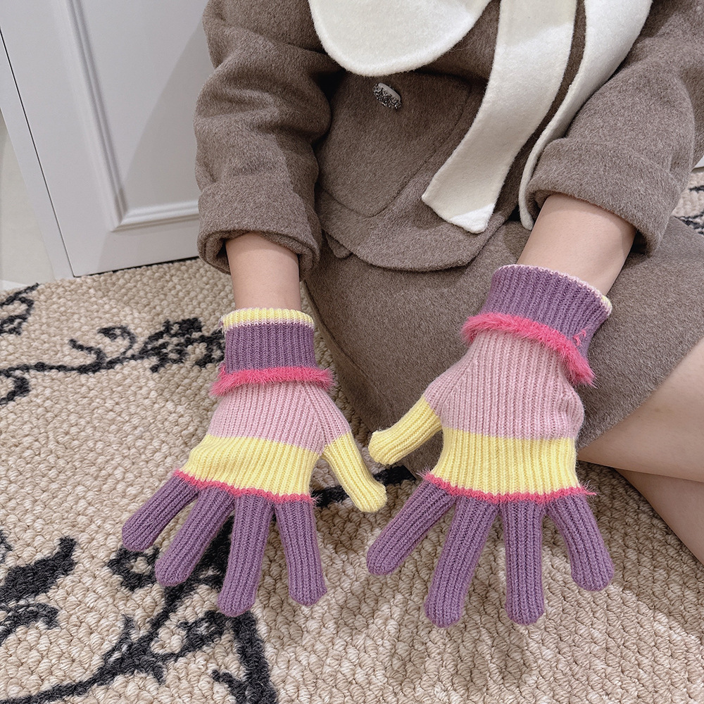 紧密针织加厚保暖,露指可触屏设计,方便使用,撞色搭配长毛圈设计,可爱甜美超级炸街,韩系风十足~