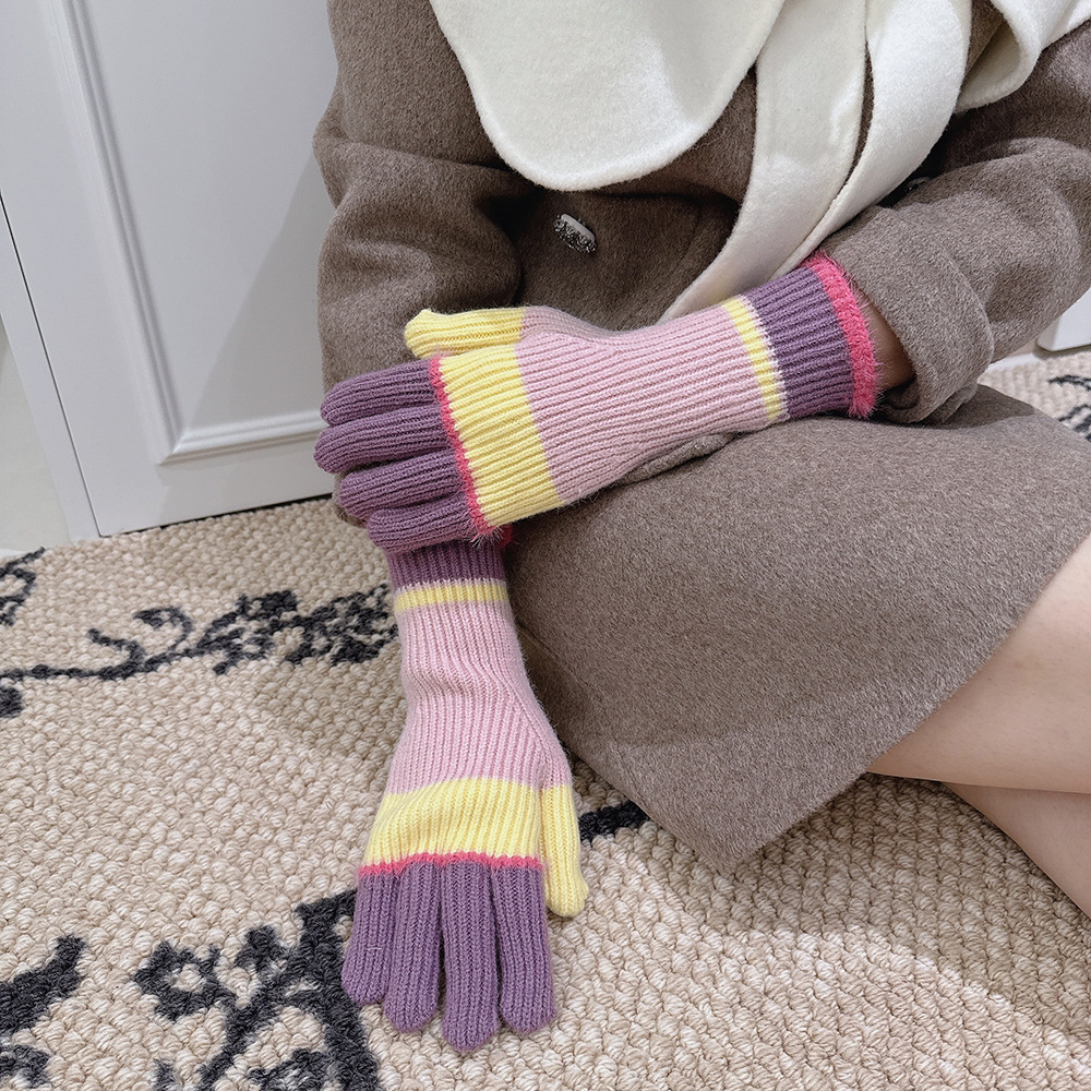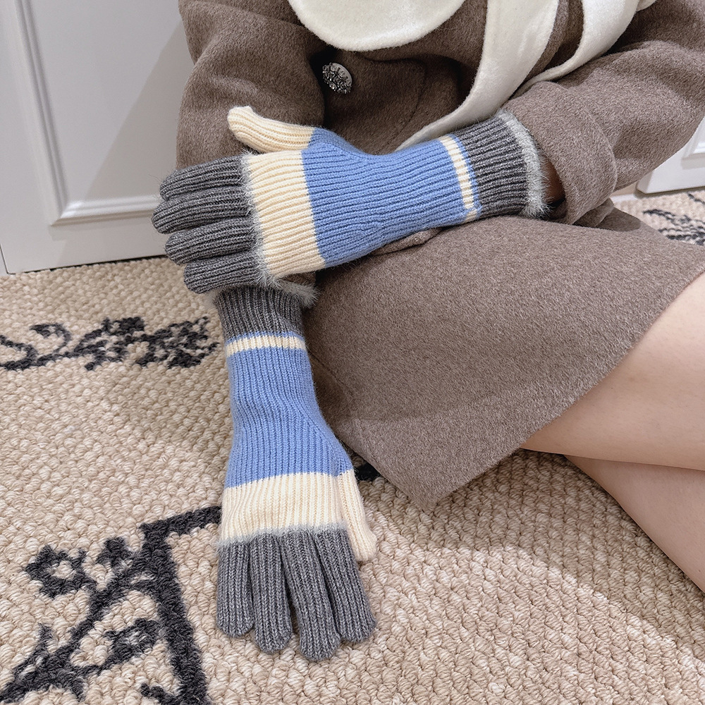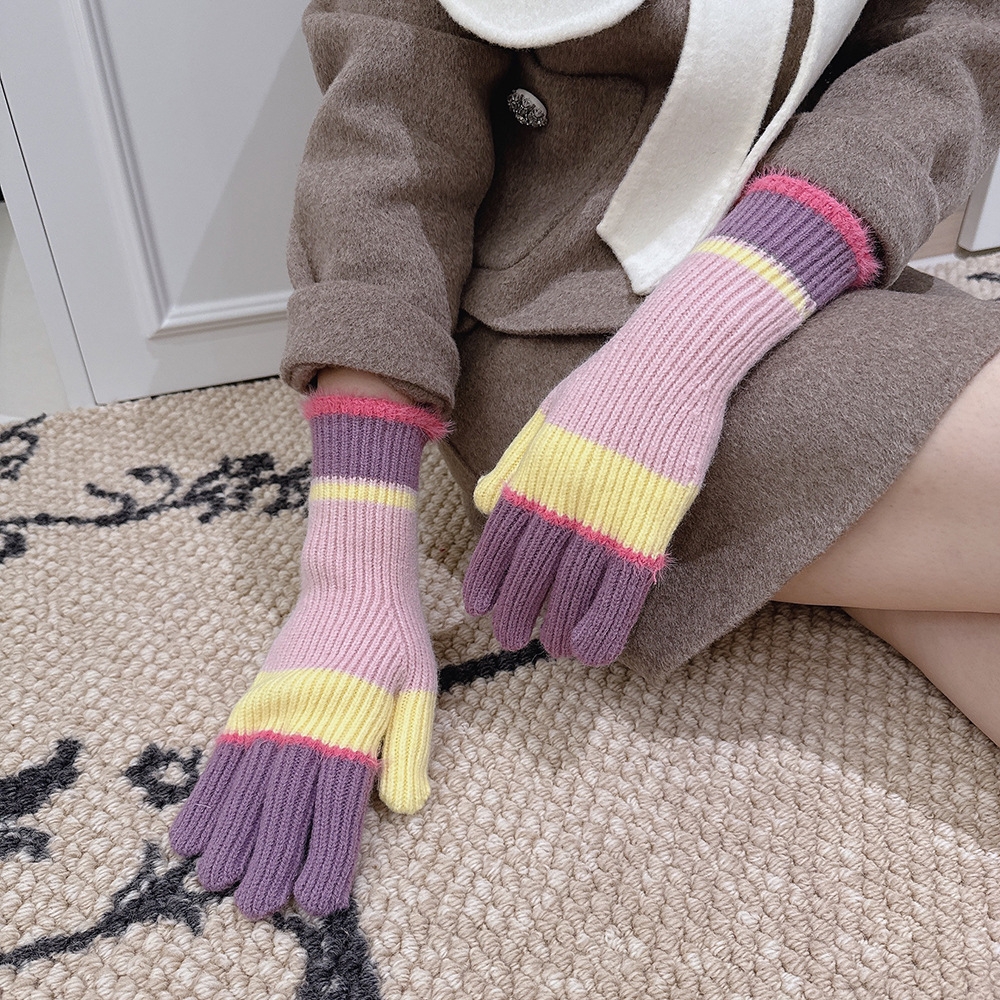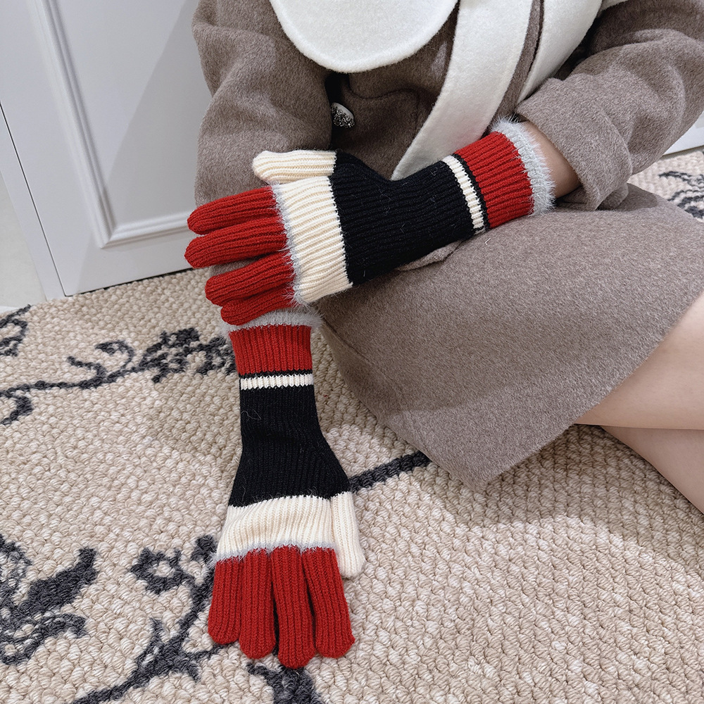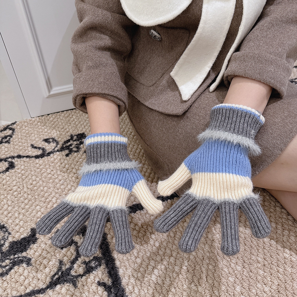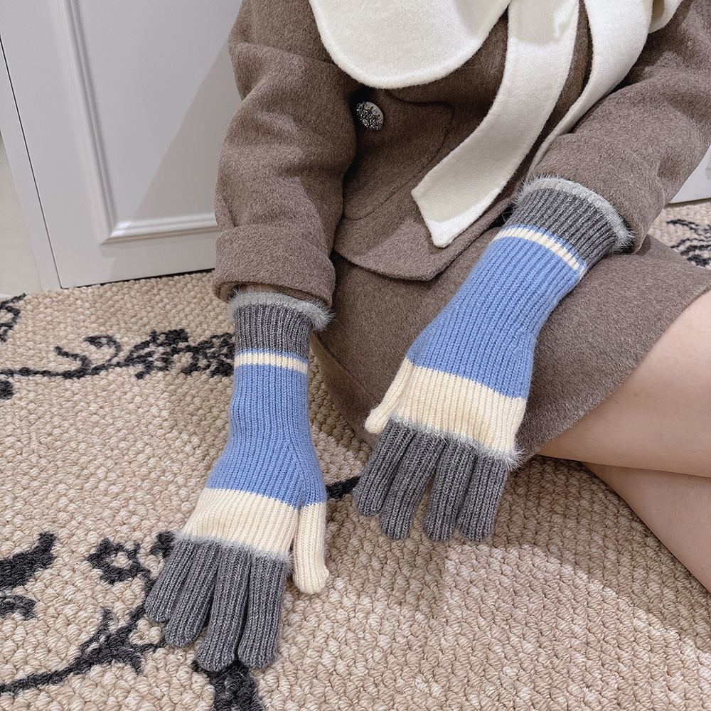 紧密针织加厚保暖,露指可触屏设计,方便使用,撞色搭配长毛圈设计,可爱甜美超级炸街,韩系风十足~