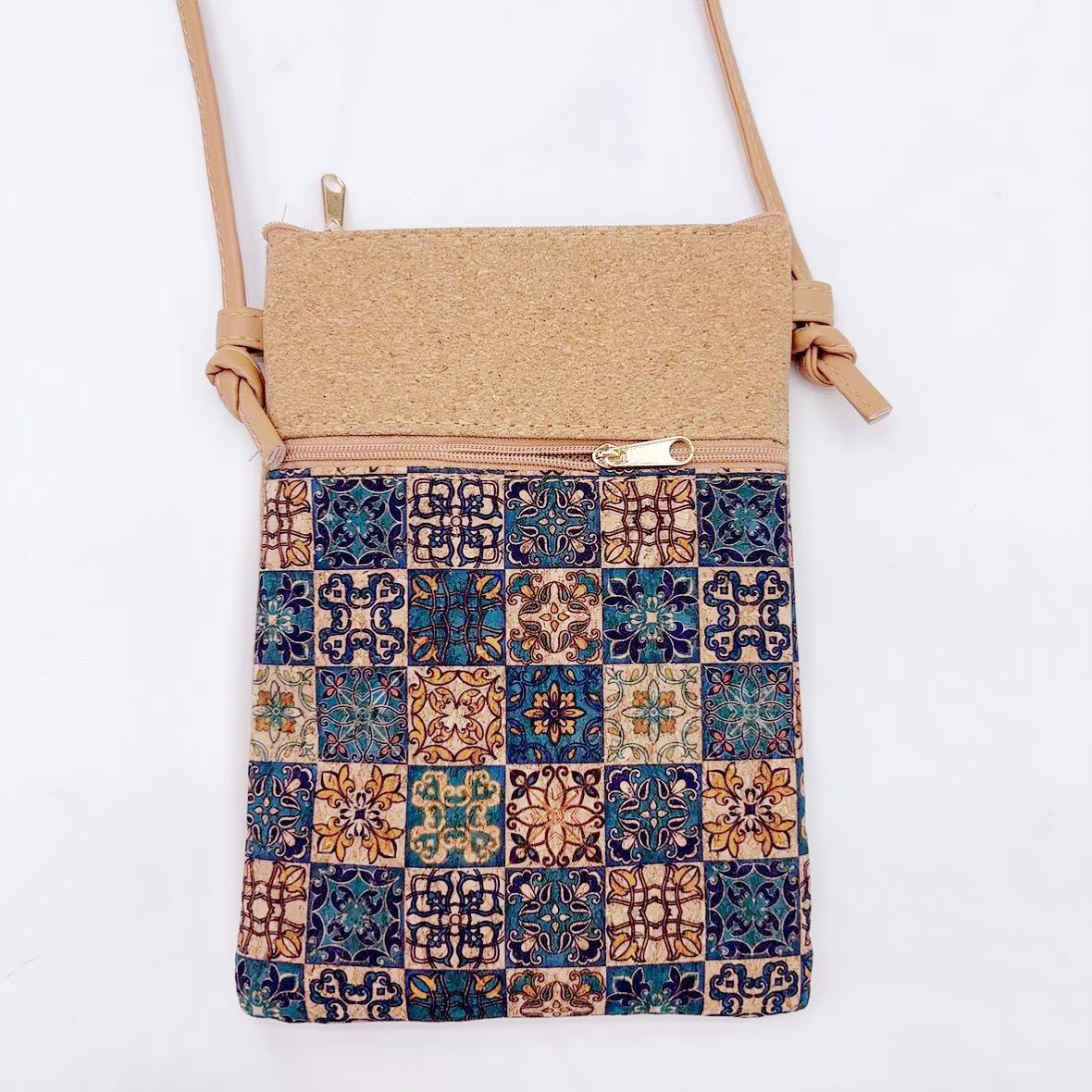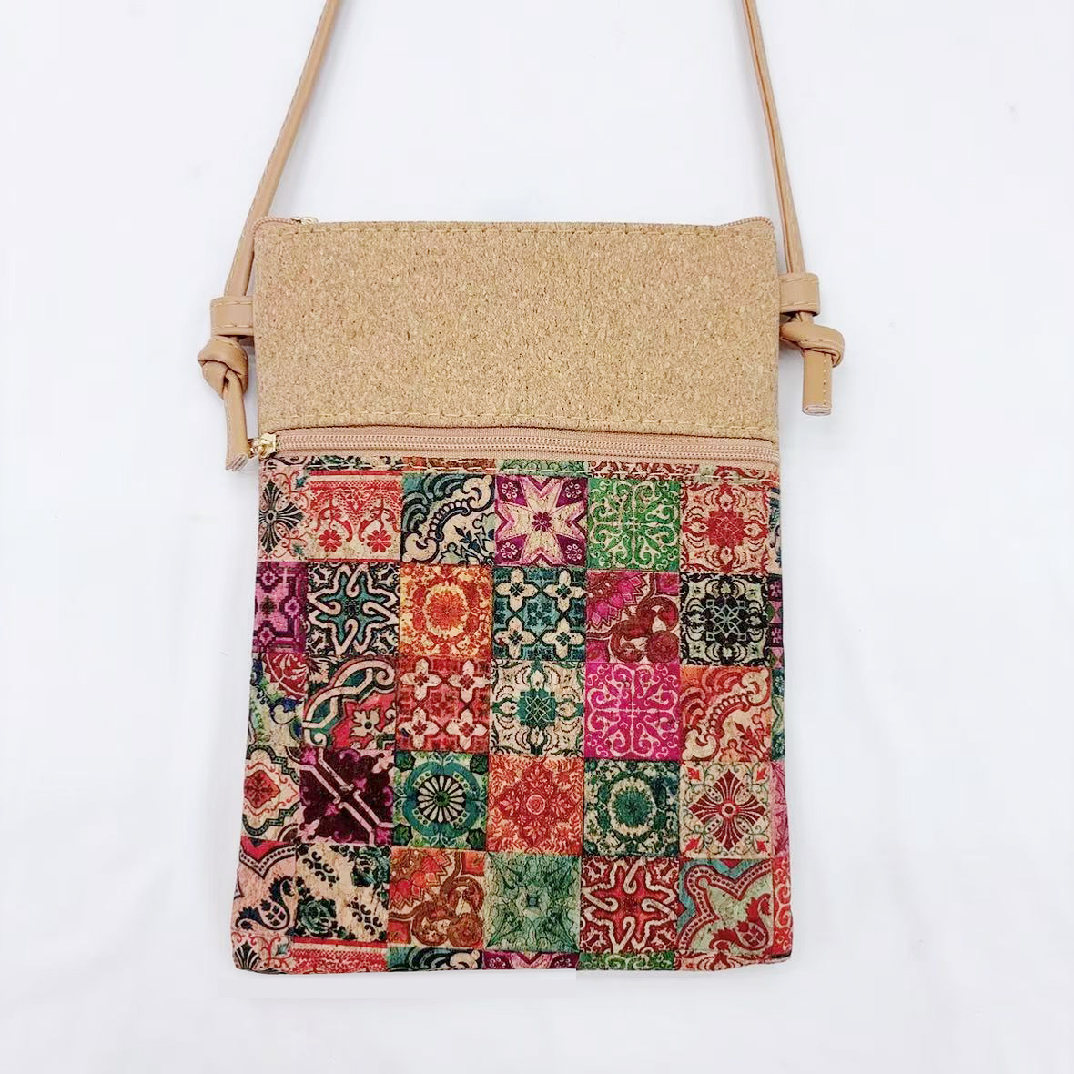 인기있는 보헤미안 스타일 코르크 휴대 전화 보관 가방 여성용 크로스 바디 백 어깨 끈 조절 가능한 여행 기념품