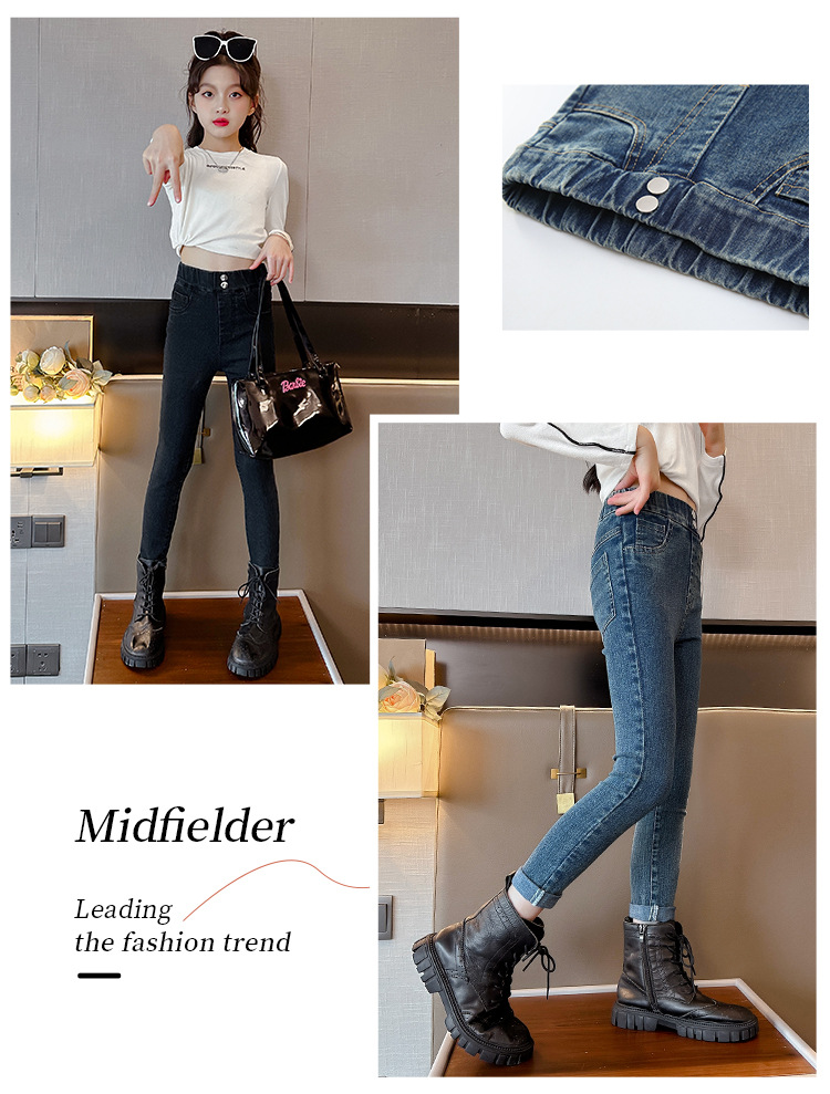 여아 데님 스키니 팬츠 2025 봄 가을 신상 아동 청바지 신축성 있는 슬림핏 중대형 아동 여아 슬림 팬츠