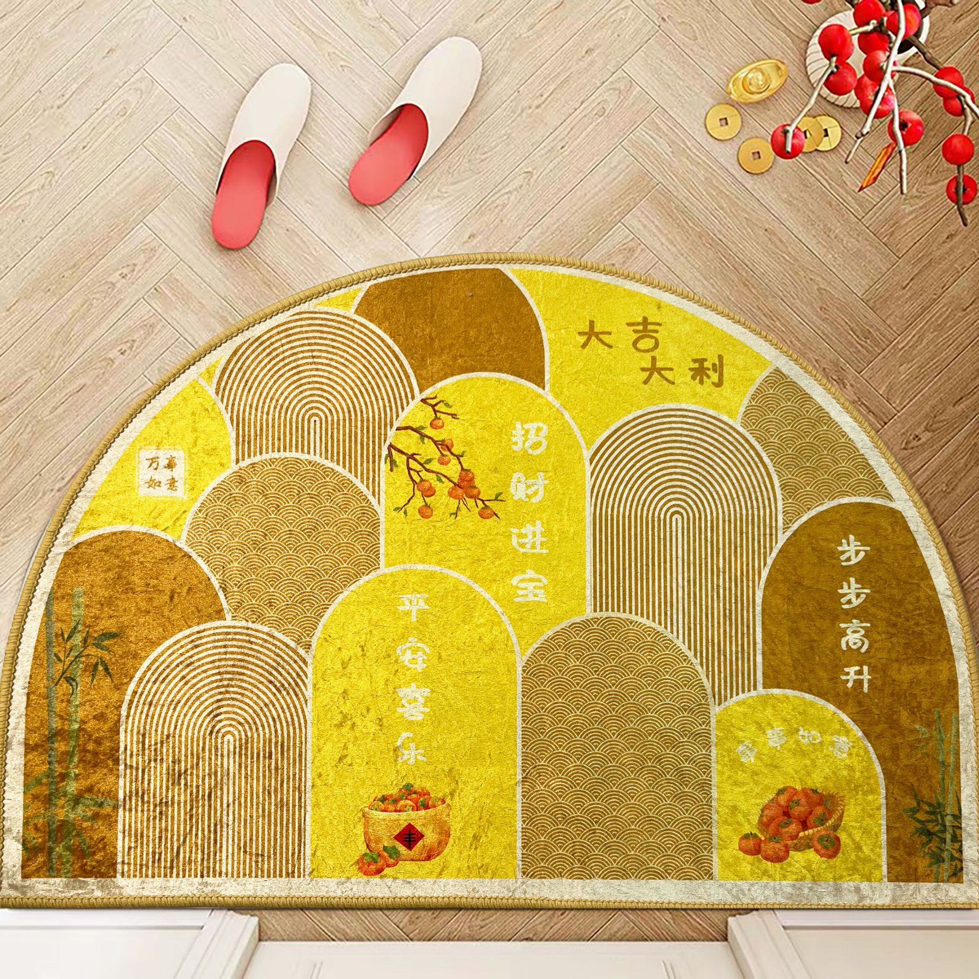 반원형 입장 문 매트 문 비 슬립 발 매트 지구 노란색 생 골드 리치 도어 매트 오픈 포춘 카펫