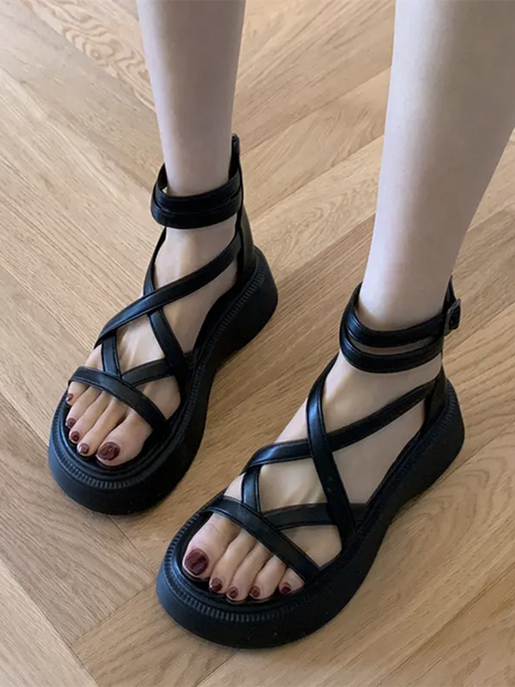 여성용 로마 샌들 여름 2025 새로운 패션 다재다능한 요정 스타일 스커트 외부 착용 두꺼운 밑창 샌들 유행