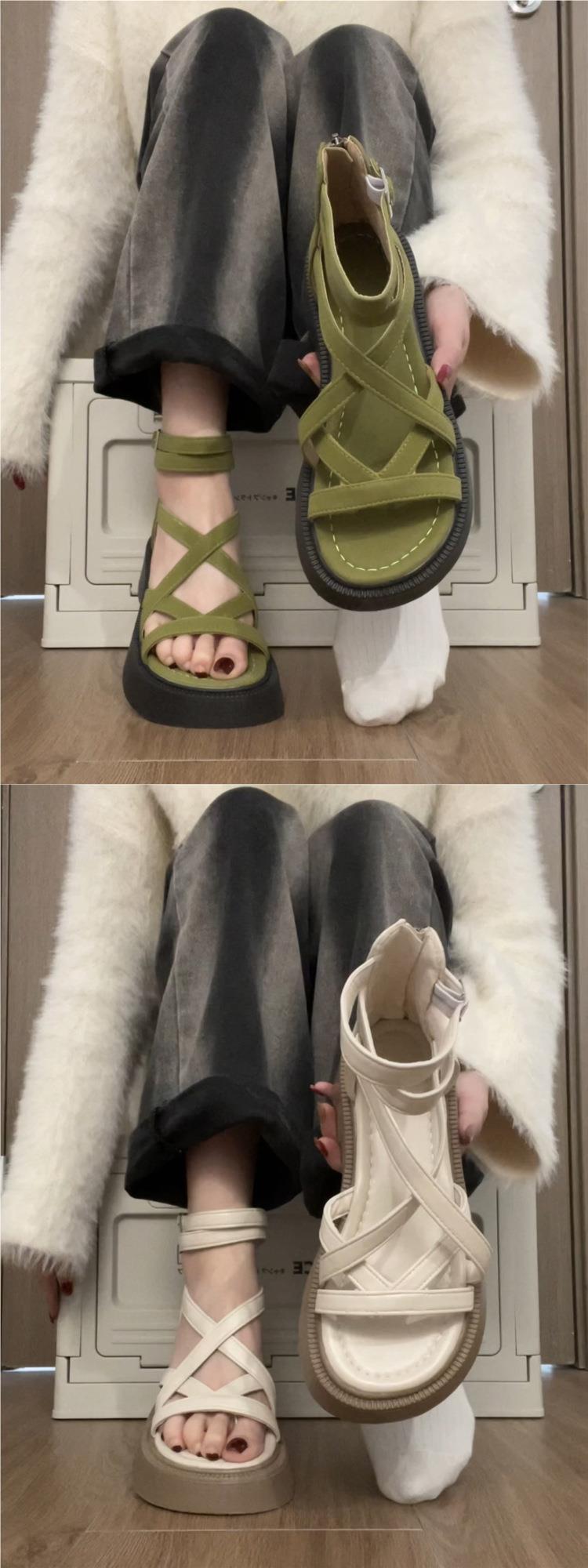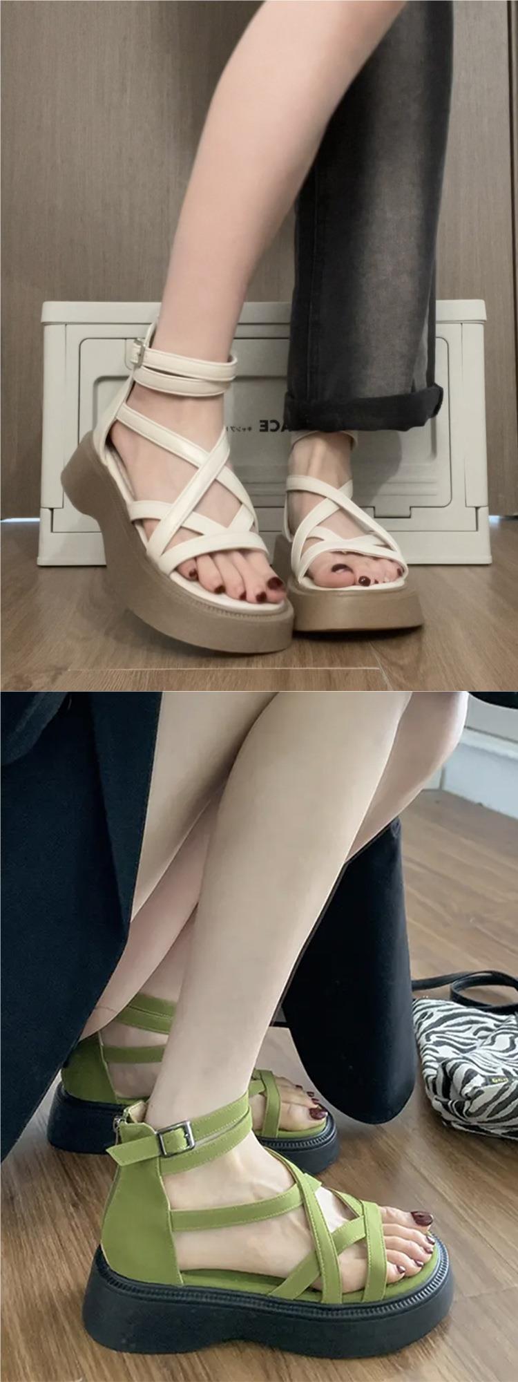 여성용 로마 샌들 여름 2025 새로운 패션 다재다능한 요정 스타일 스커트 외부 착용 두꺼운 밑창 샌들 유행스토어 가기