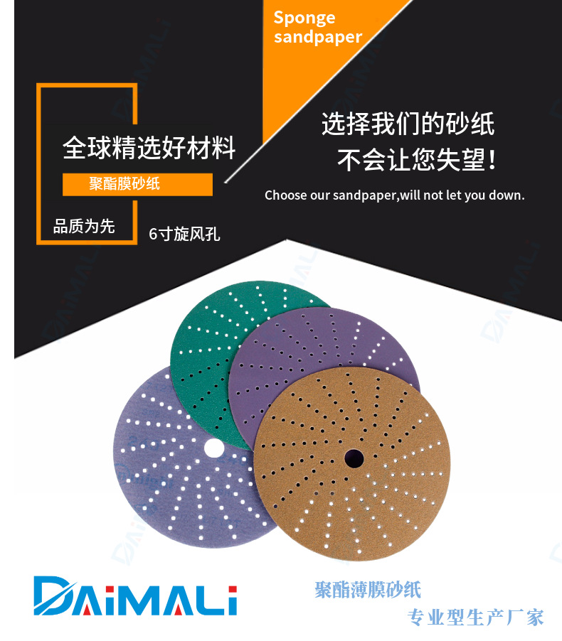 6 인치 150MM 사이클론 홀 녹색 보라색 금색 플로킹 사포 국경 간 자동차 연마 다공성 사포스토어 가기
