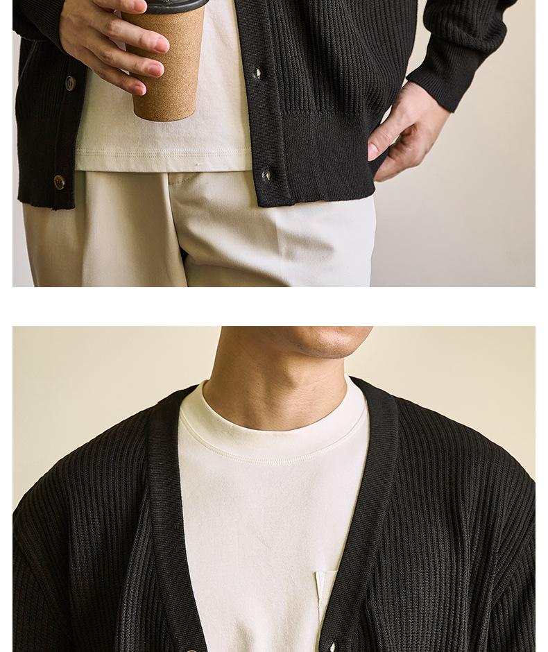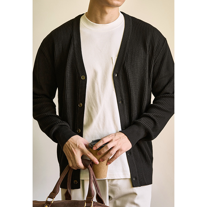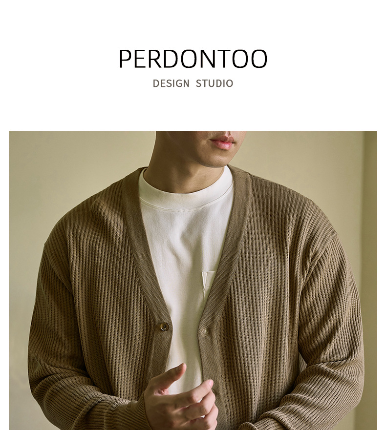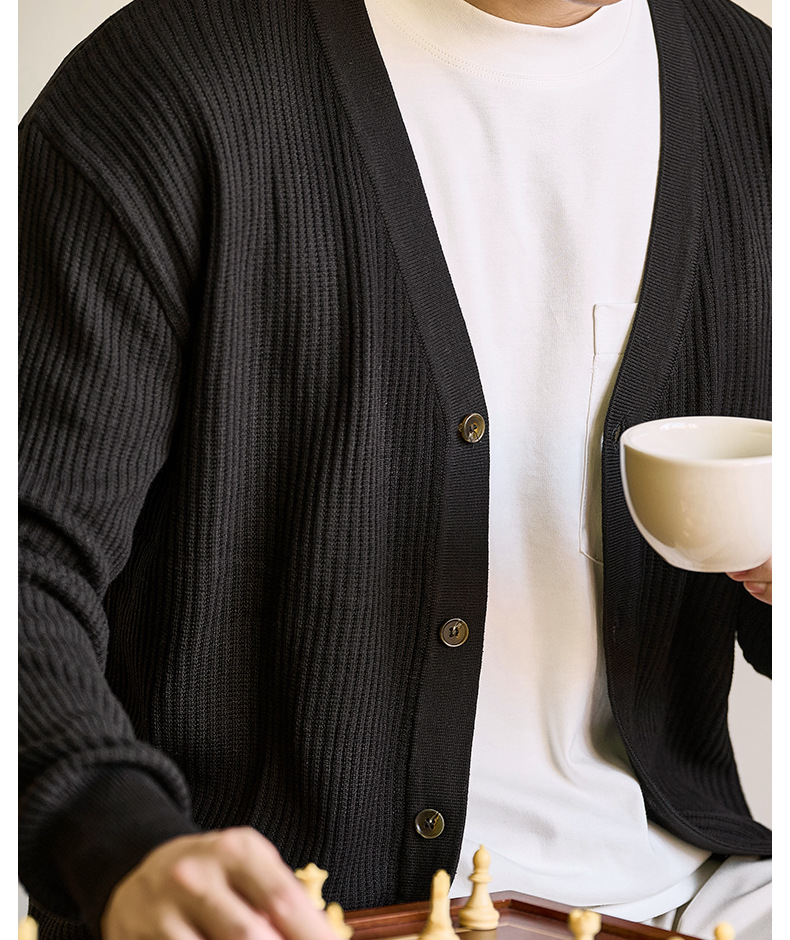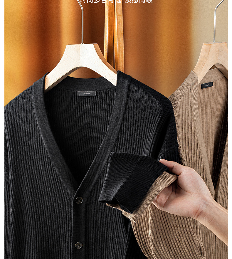 고급스러운 12 니트! 세로 줄무늬 질감의 가디건 남성용 가을 겨울 단색 캐주얼 두꺼운 보온 니트웨어스토어 가기
