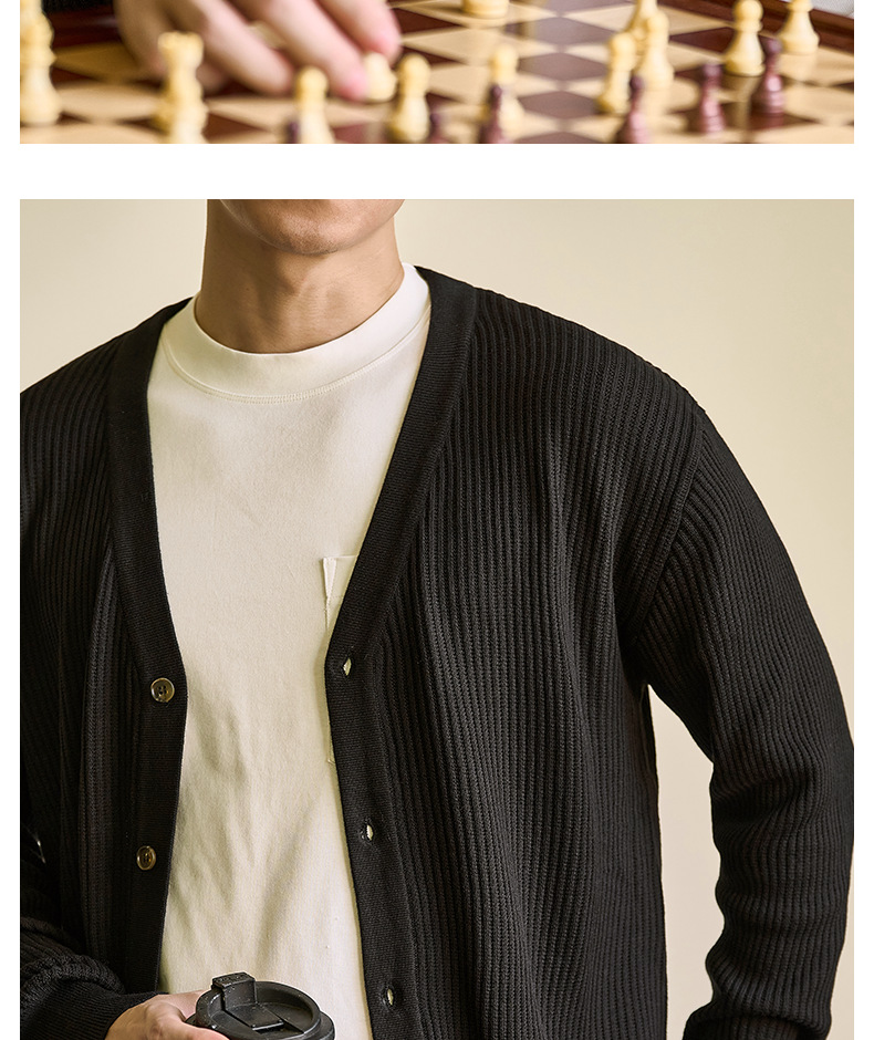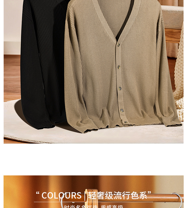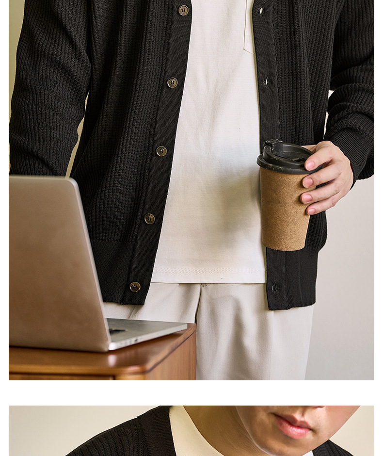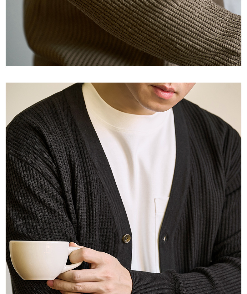 고급스러운 12 니트! 세로 줄무늬 질감의 가디건 남성용 가을 겨울 단색 캐주얼 두꺼운 보온 니트웨어스토어 가기