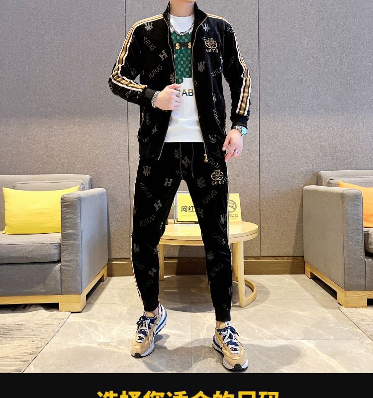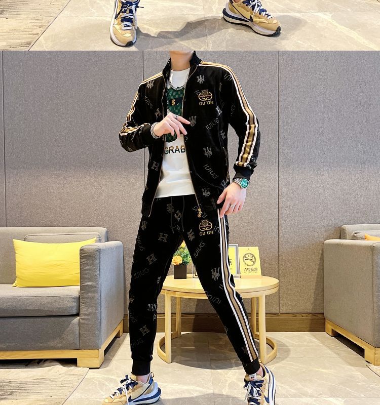 유럽 스테이션 가을 남성 스포츠 카디건 스웨트 셔츠 정장 남성 신작 캐주얼 한국 스타일 트렌디하고 잘 생긴 청소년 투피스 세트