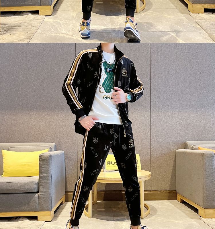 유럽 스테이션 가을 남성 스포츠 카디건 스웨트 셔츠 정장 남성 신작 캐주얼 한국 스타일 트렌디하고 잘 생긴 청소년 투피스 세트스토어 가기