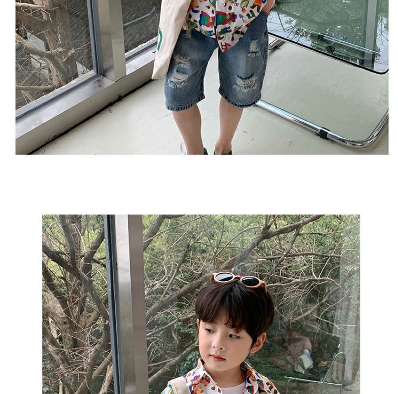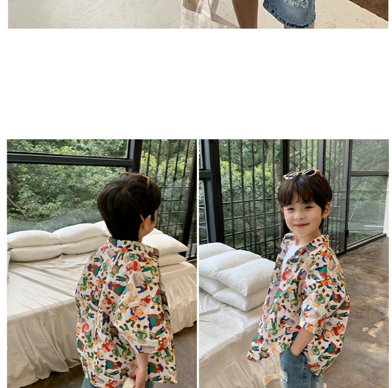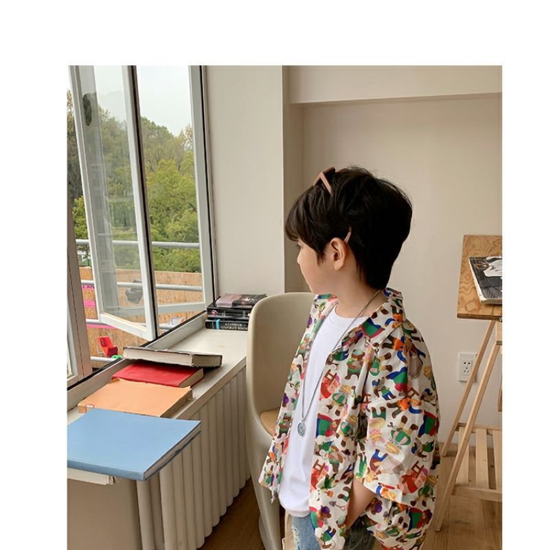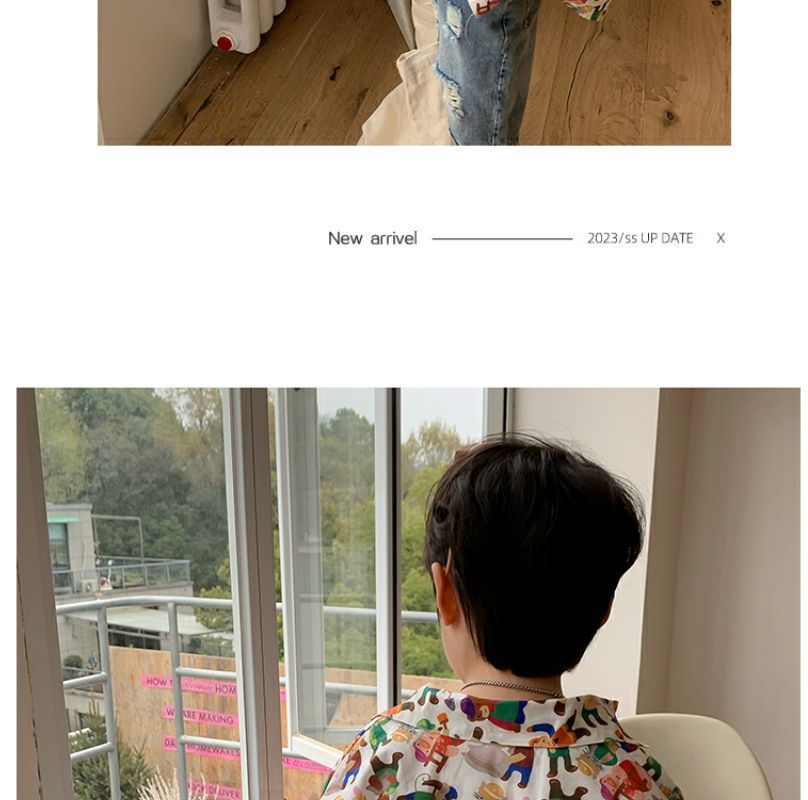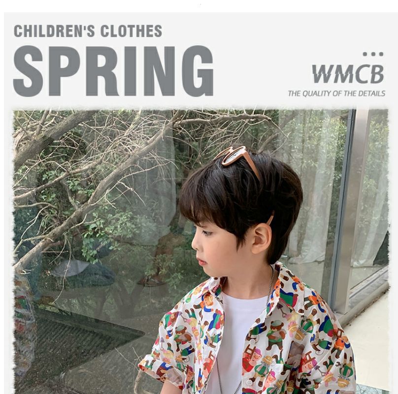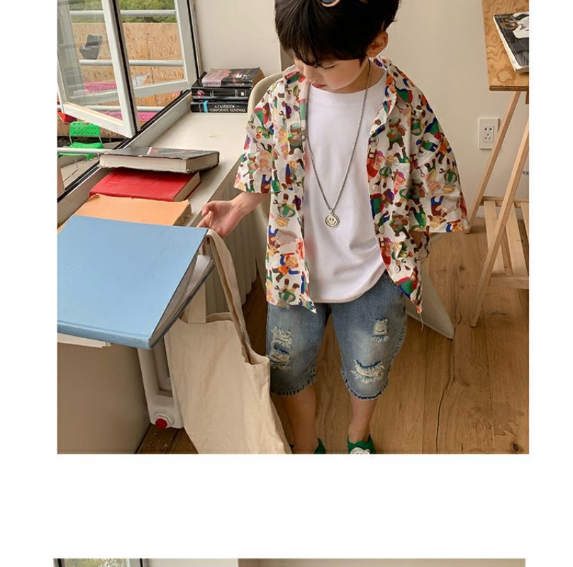 소년 반팔 꽃 셔츠 어린이 한국 스타일 셔츠 어린이 유행 여름 탑 만화 2023 새로운 아기의 탑스토어 가기
