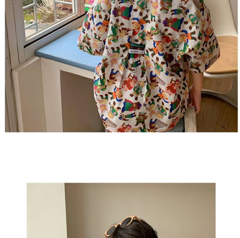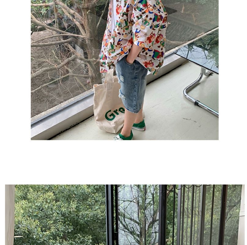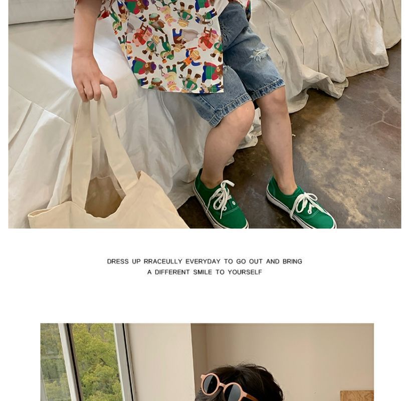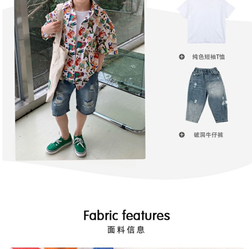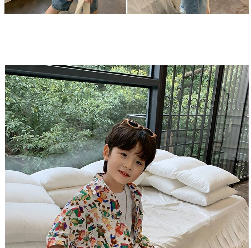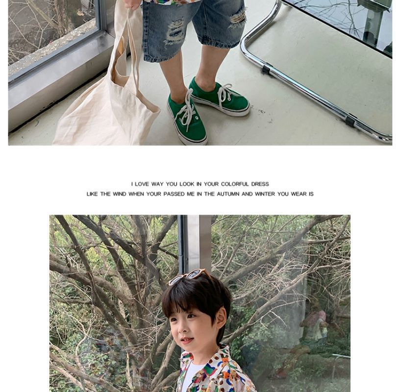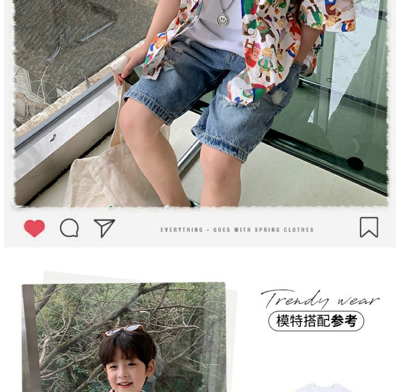 소년 반팔 꽃 셔츠 어린이 한국 스타일 셔츠 어린이 유행 여름 탑 만화 2023 새로운 아기의 탑스토어 가기