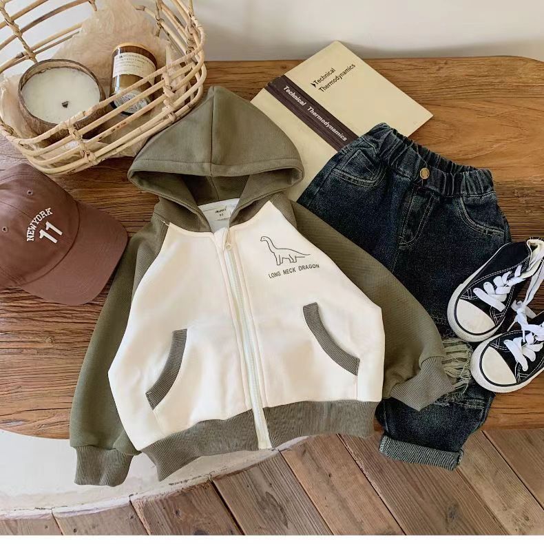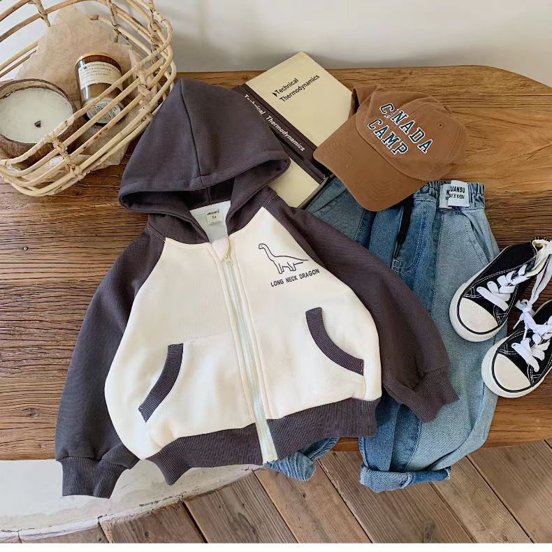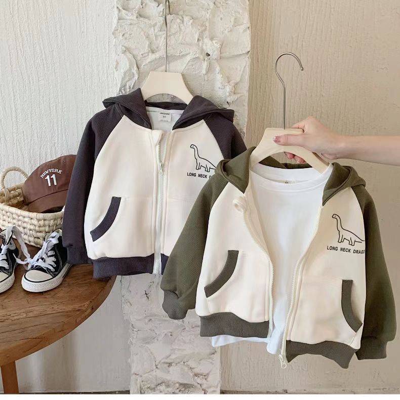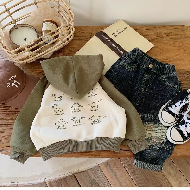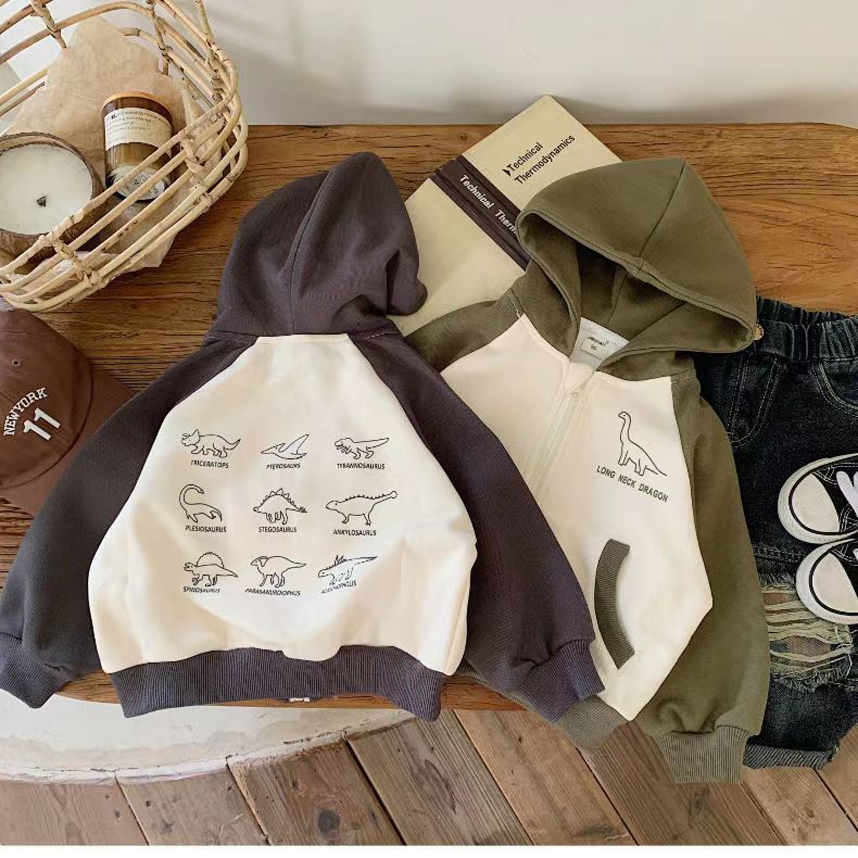어린이 새 가을 의류 잘 생긴 소년 후드 만화 공룡 인쇄 카디건 스웨터 어린이 코트 탑스토어 가기