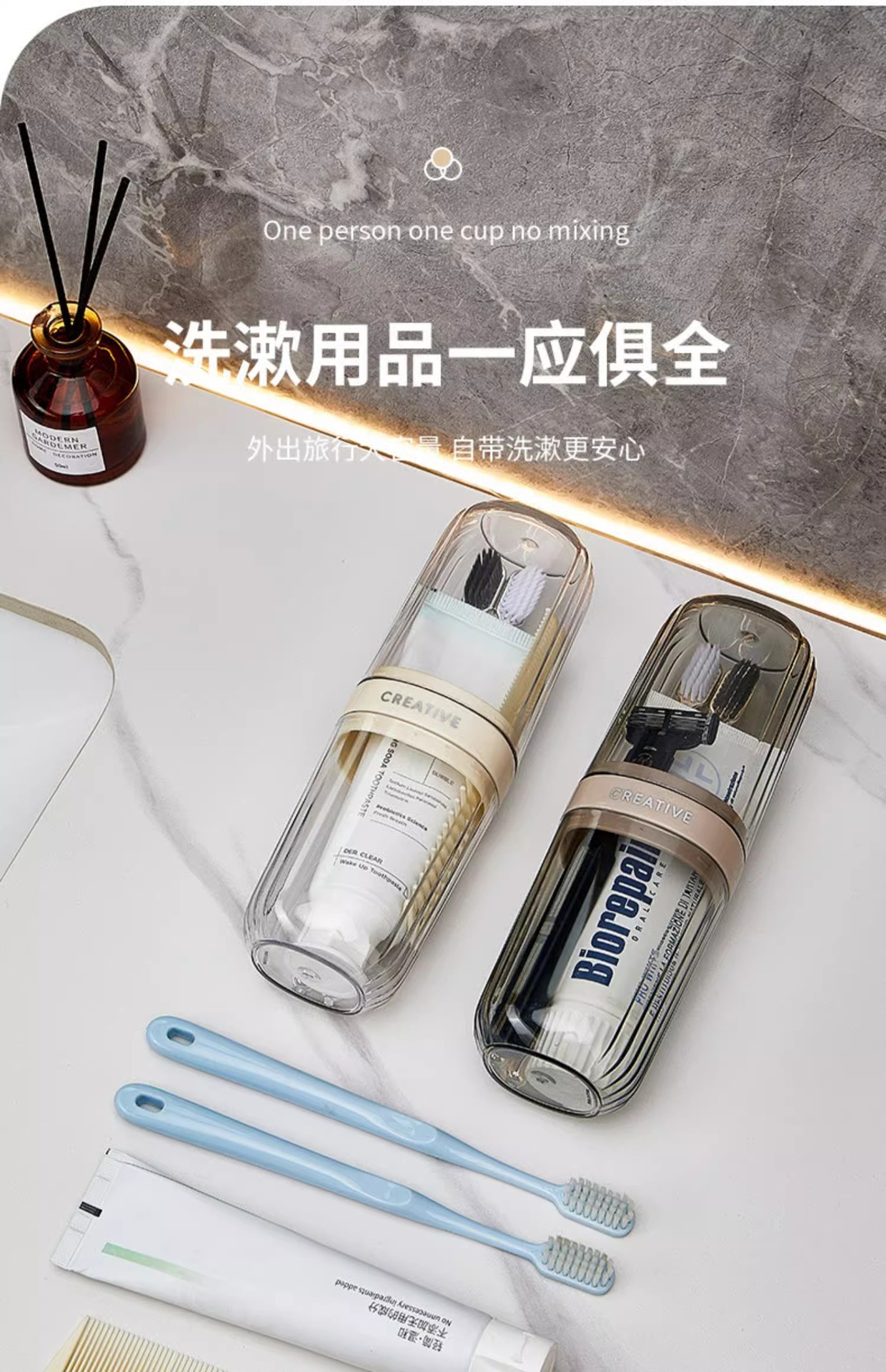 여행 입 컵 휴대용 치과 저장 상자 브러시 컵 세트 가벼운 고급 플라스틱 야외 3 대 1 워시 컵스토어 가기