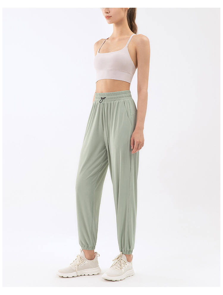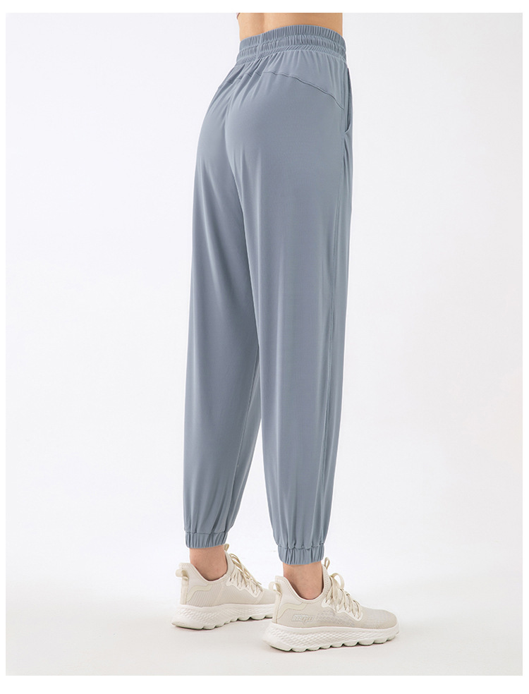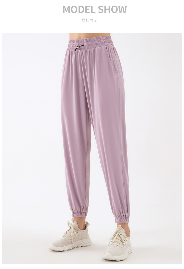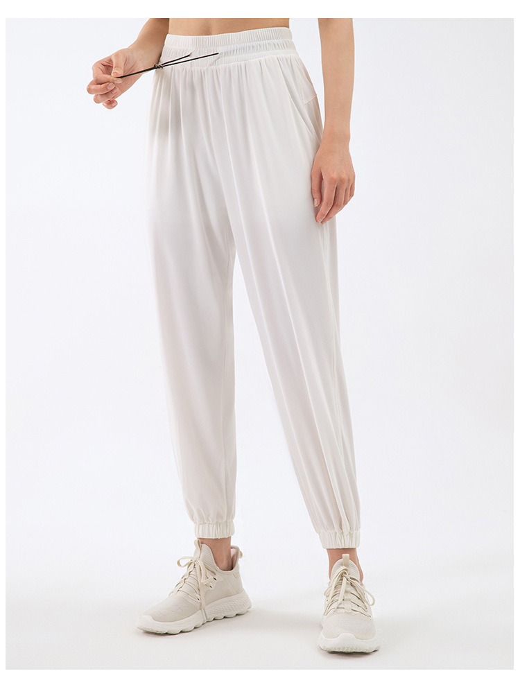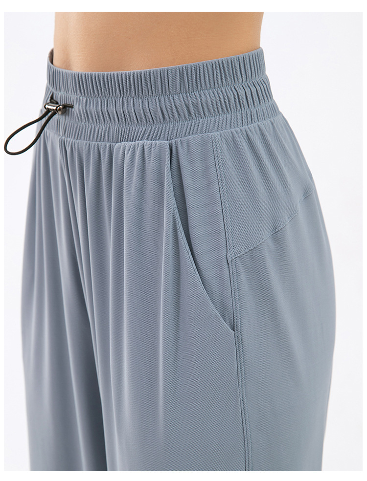 여름 스포츠 바지 여성의 느슨한 시원한 통기성 피트니스 바지 태양 보호 다리 캐주얼 바지 높은 허리 및 높은 허리 요가 바지