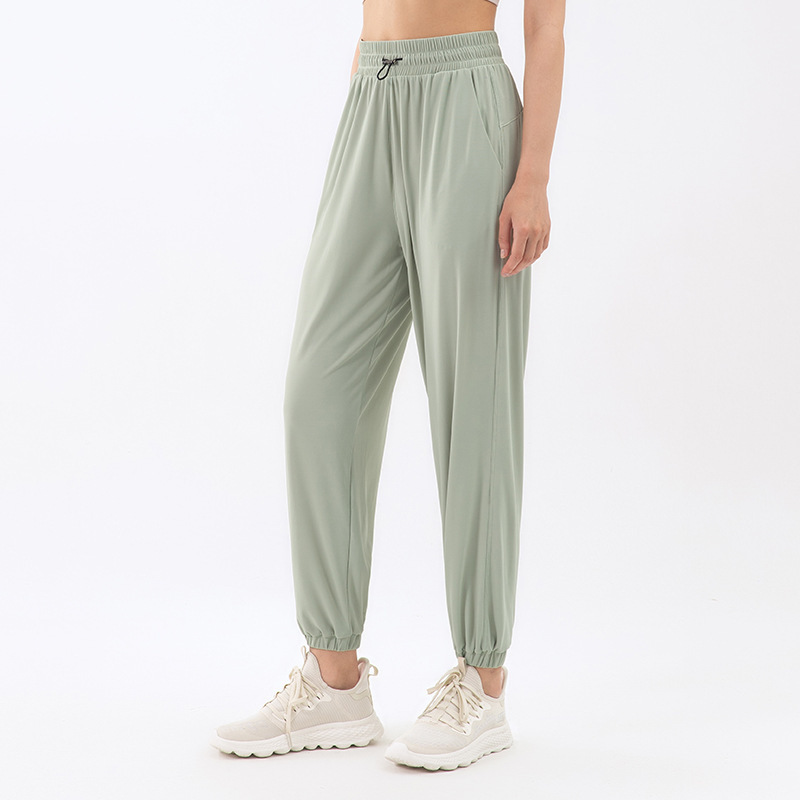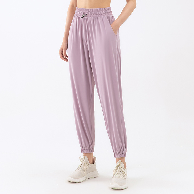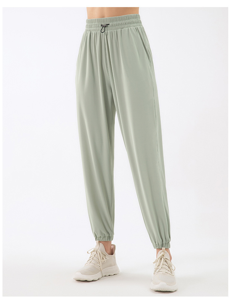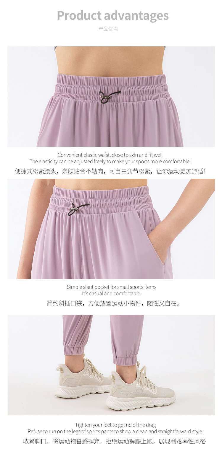 여름 스포츠 바지 여성의 느슨한 시원한 통기성 피트니스 바지 태양 보호 다리 캐주얼 바지 높은 허리 및 높은 허리 요가 바지
