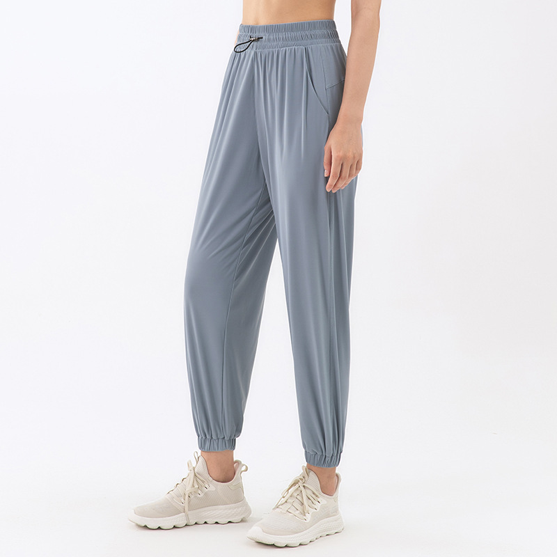 여름 스포츠 바지 여성의 느슨한 시원한 통기성 피트니스 바지 태양 보호 다리 캐주얼 바지 높은 허리 및 높은 허리 요가 바지스토어 가기