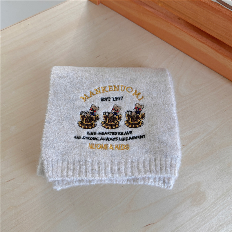 가을과 겨울 대학 스타일 패션 따뜻한 붉은 양모 스카프 한국 노란 편지 곰 니트 달콤한 소녀 스카프스토어 가기