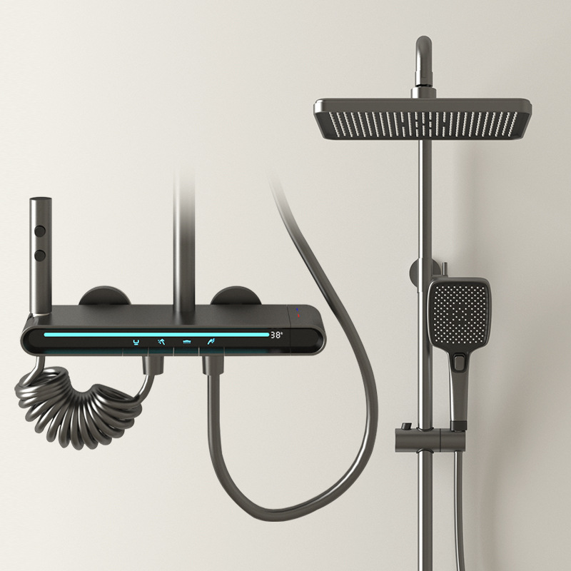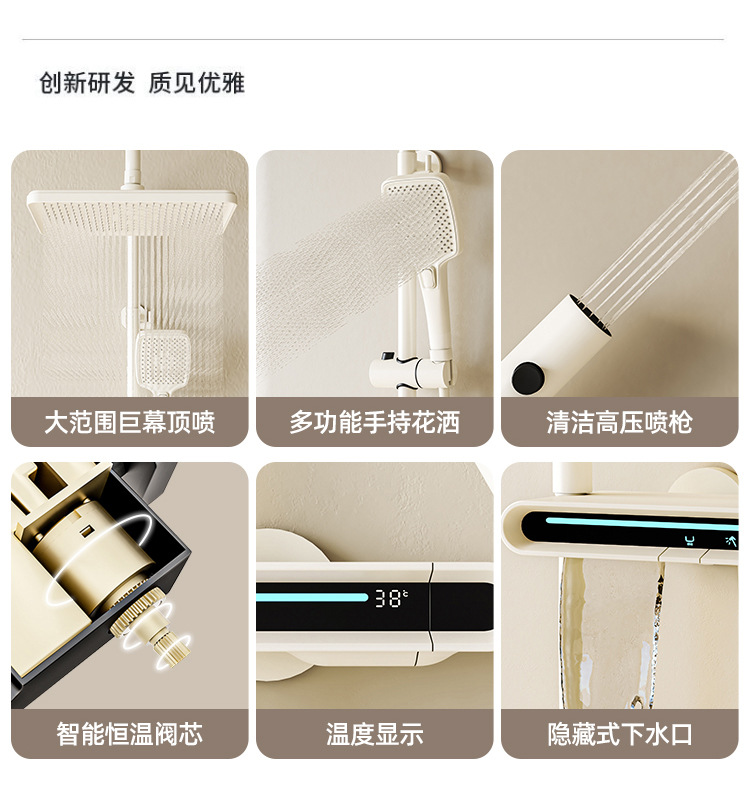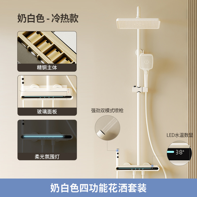 가정용 모든 구리 일정한 온도 개방 샤워 세트 분위기 빛 가압 샤워 헤드 샤워 장치 욕실 유물