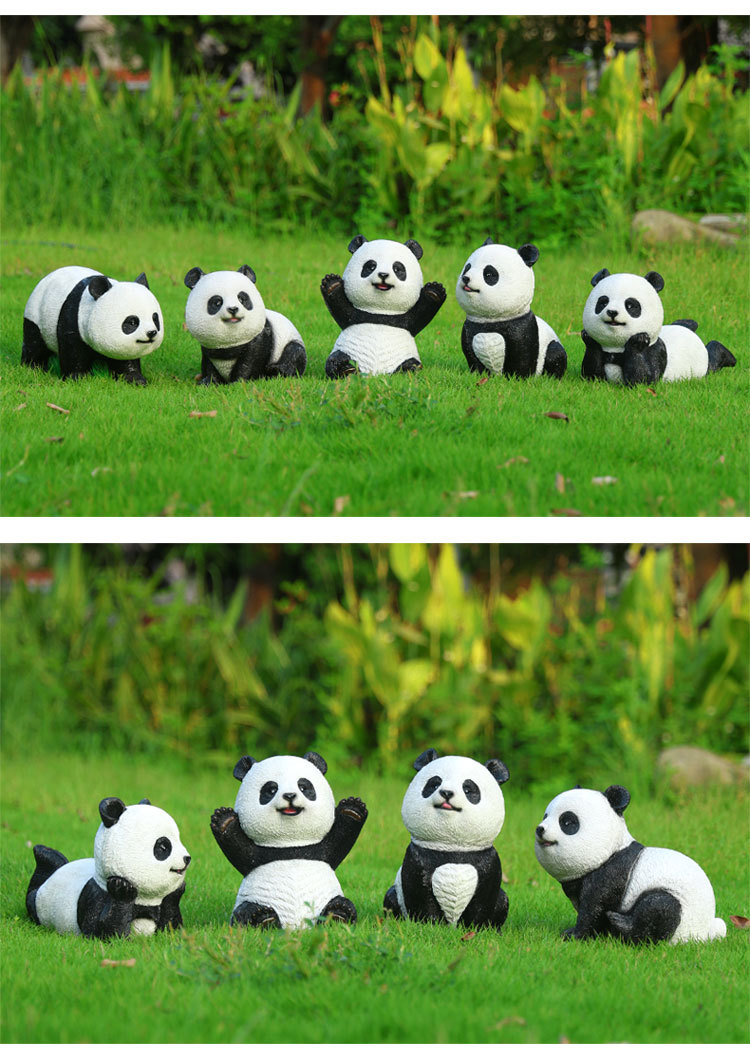 시뮬레이션 팬더 인형 조각품 수지 공예품 정원 안뜰 동물 장식품 야외 유치원 장식