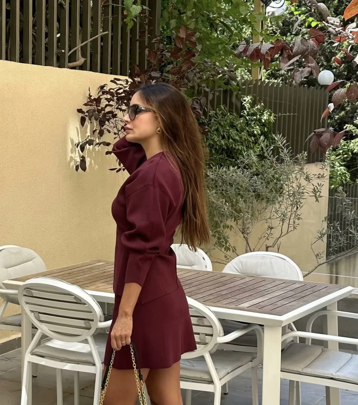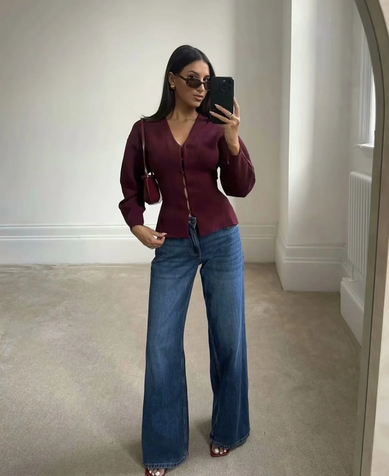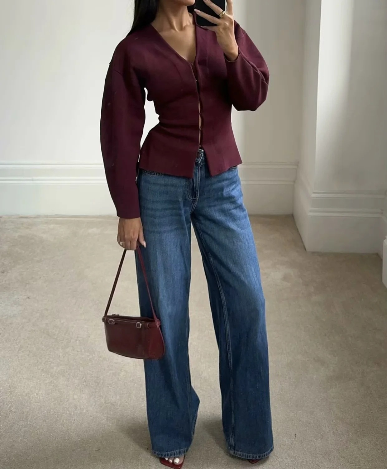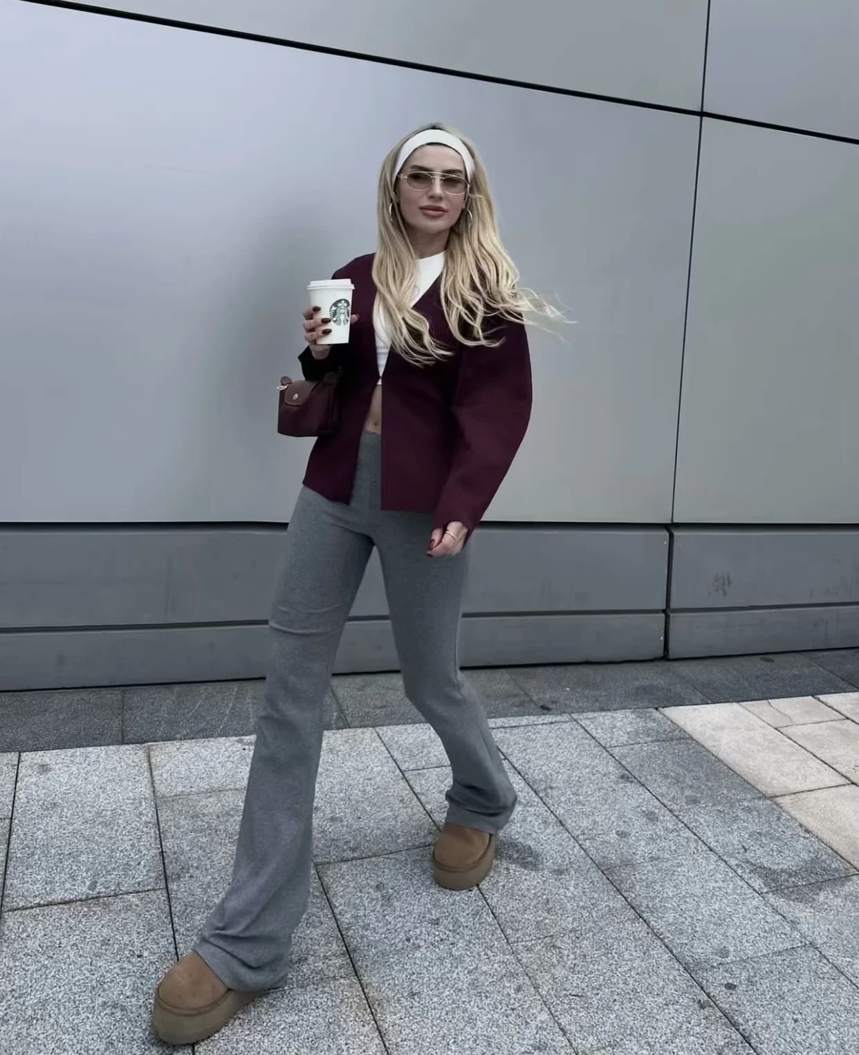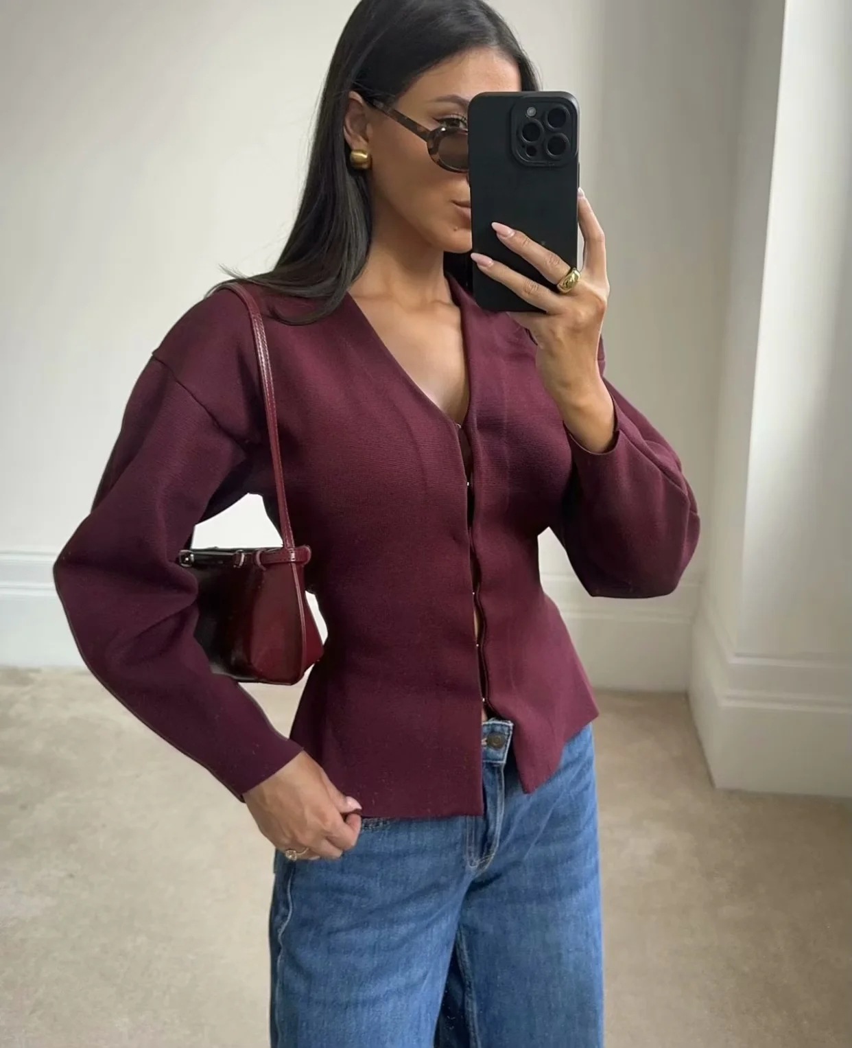 국경 간 유럽과 미국 여성의 AliExpress INS 폭발 V 넥 긴 소매 간단한 니트 세트