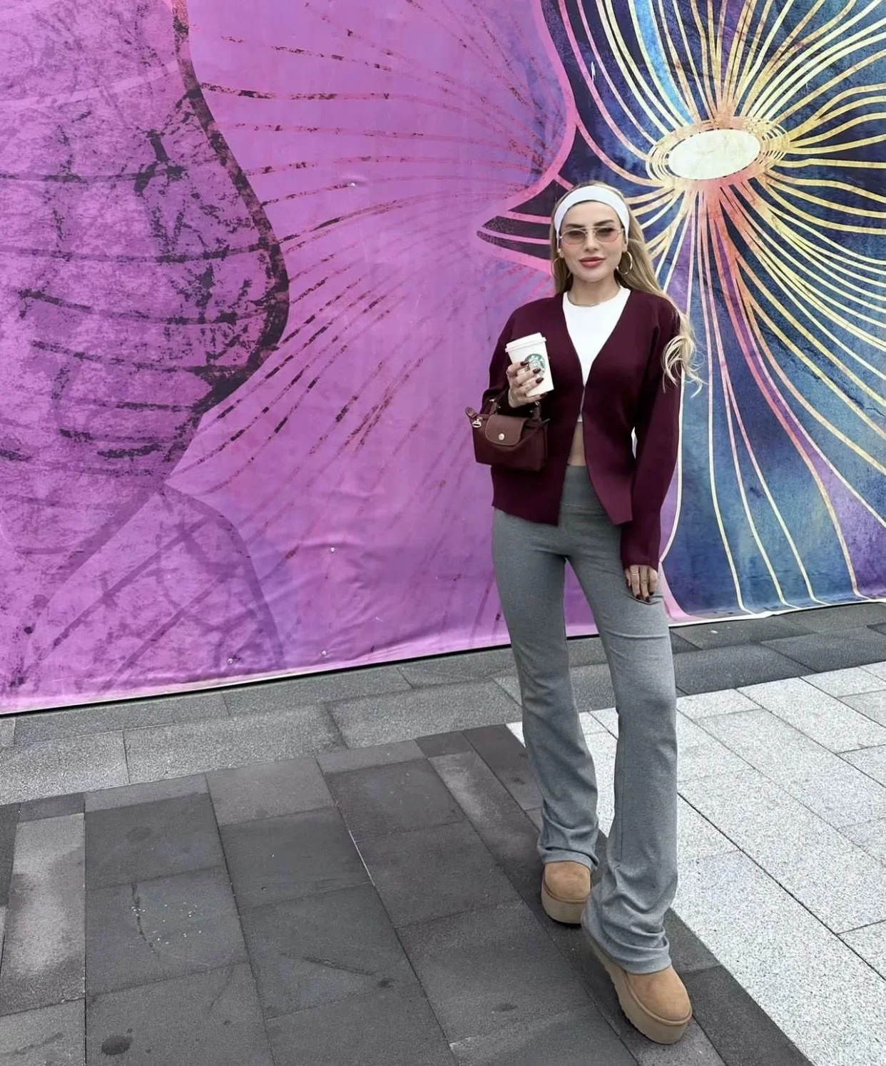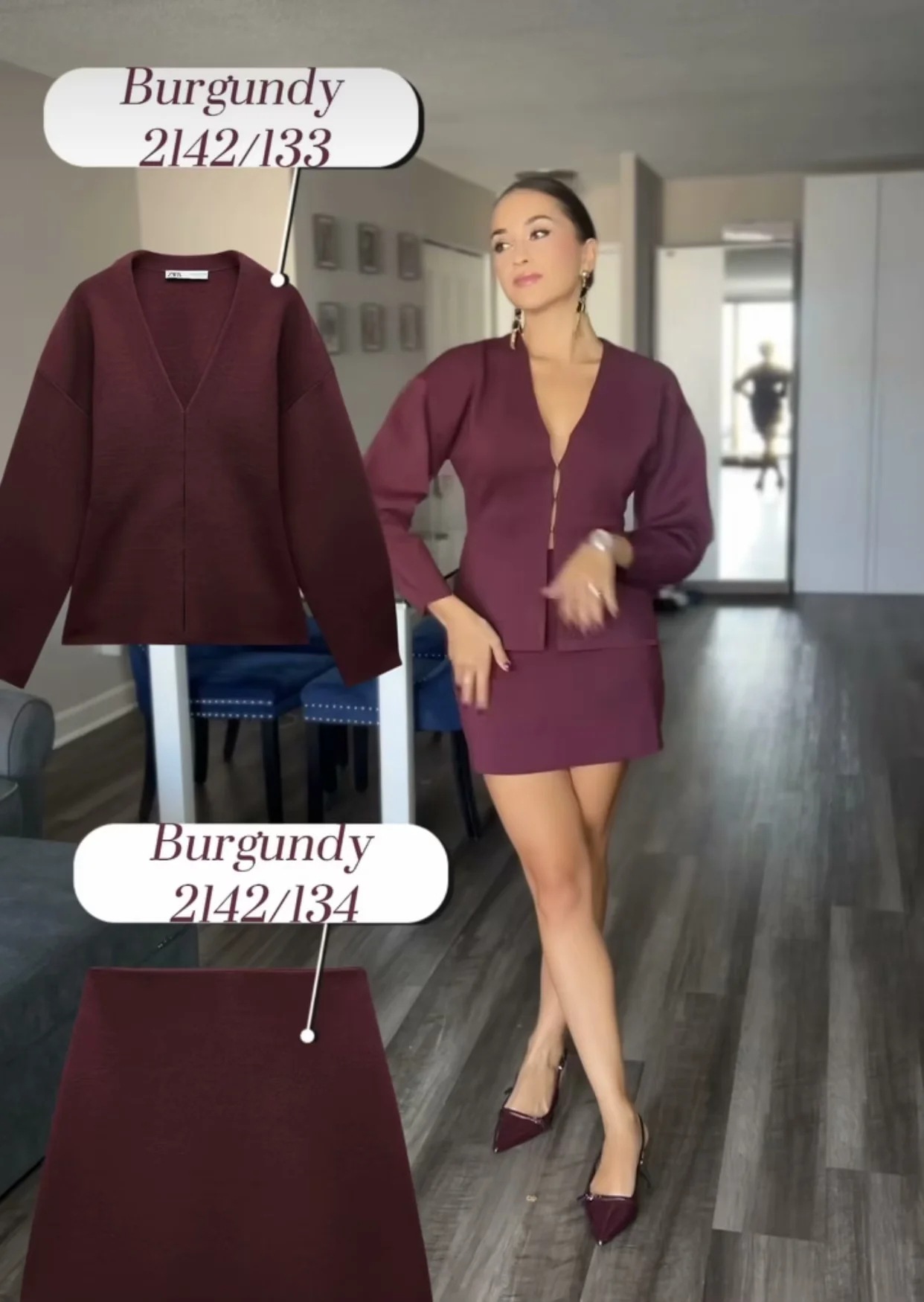 국경 간 유럽과 미국 여성의 AliExpress INS 폭발 V 넥 긴 소매 간단한 니트 세트스토어 가기