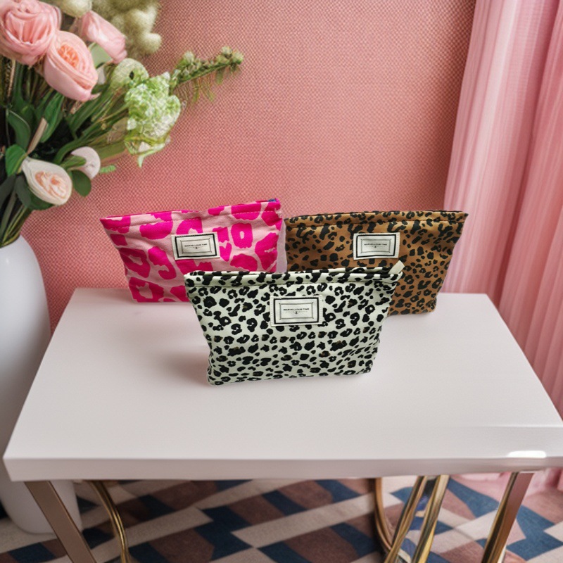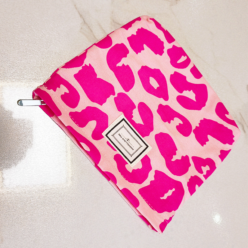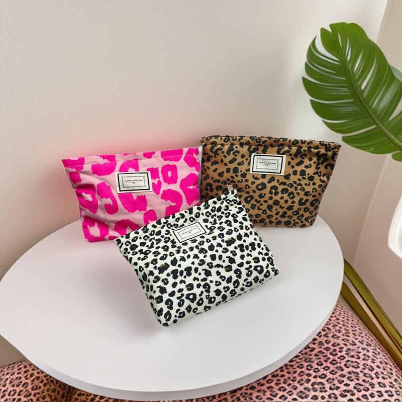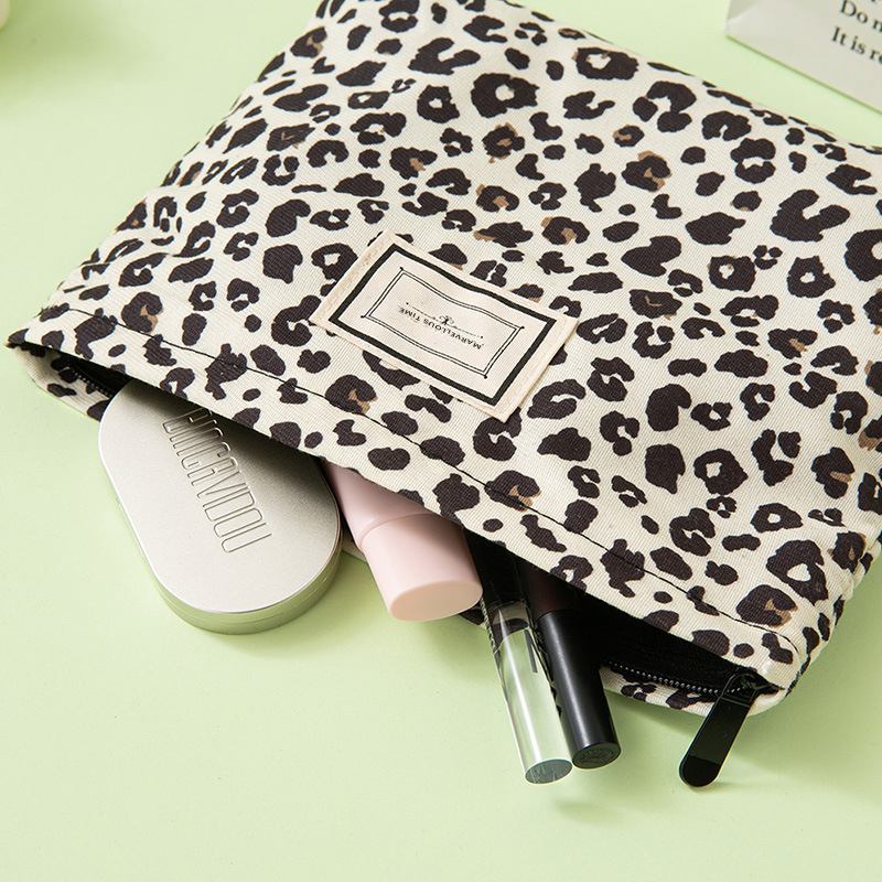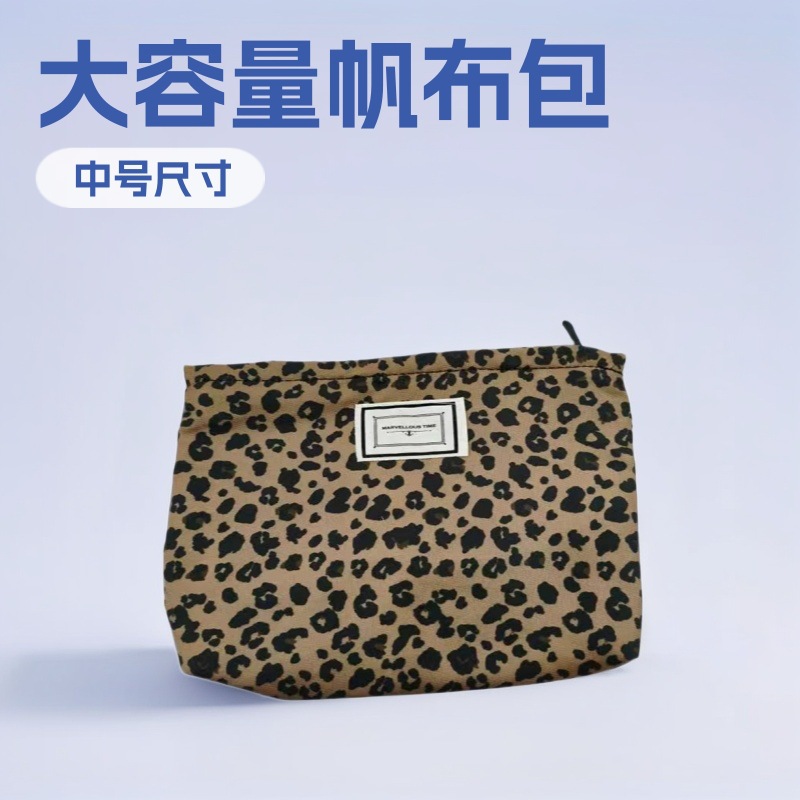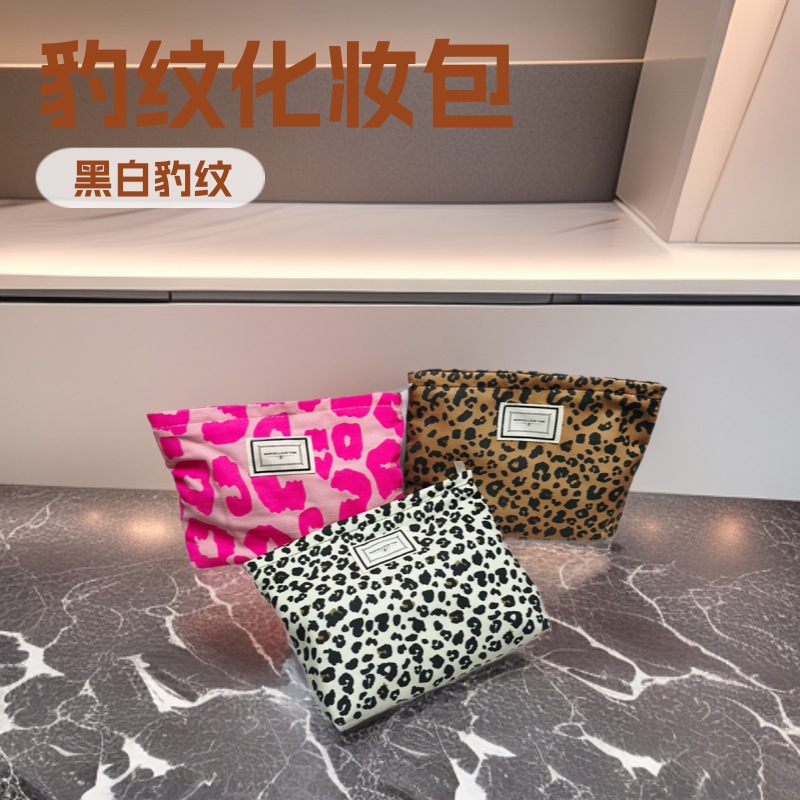 국경을 넘나드는 패셔너블한 작은 표범 무늬 화장품 가방, 특수 휴대용 캔버스 작은 가방, 클러치 백, 일본식 간단한 수납 가방스토어 가기