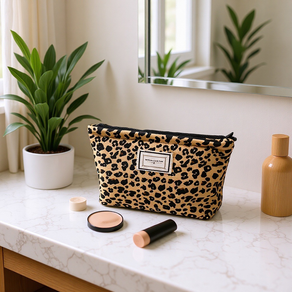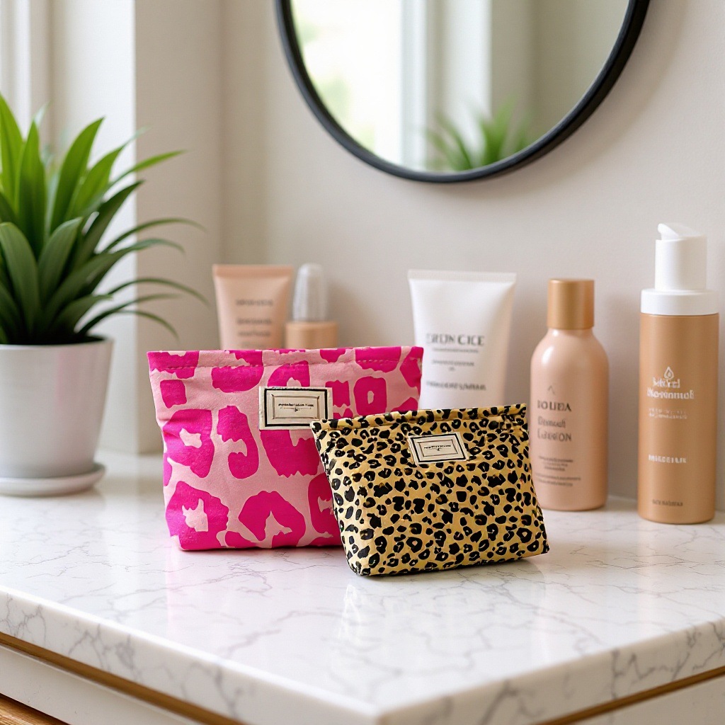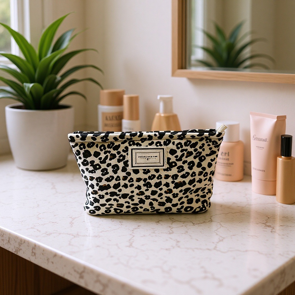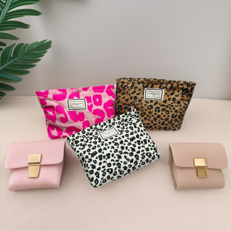 국경을 넘나드는 패셔너블한 작은 표범 무늬 화장품 가방, 특수 휴대용 캔버스 작은 가방, 클러치 백, 일본식 간단한 수납 가방