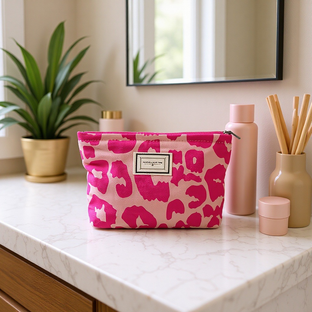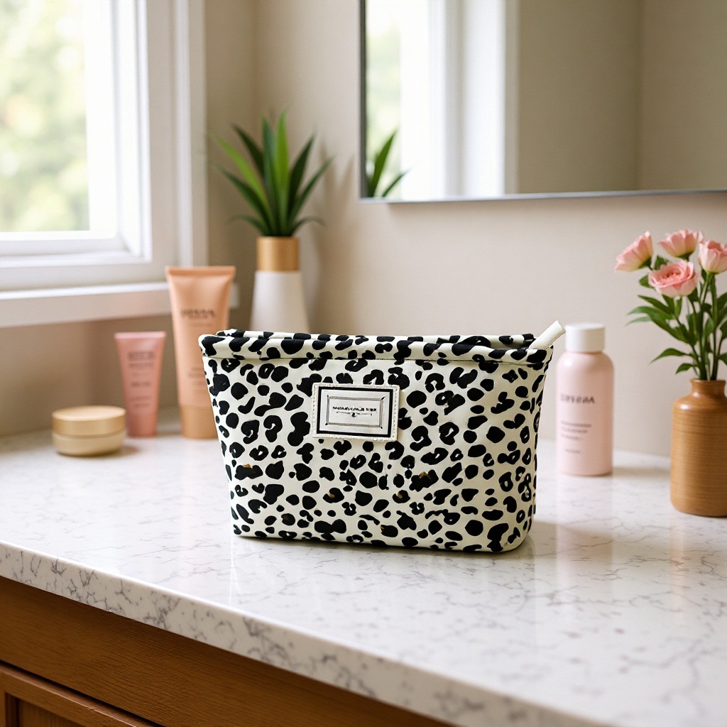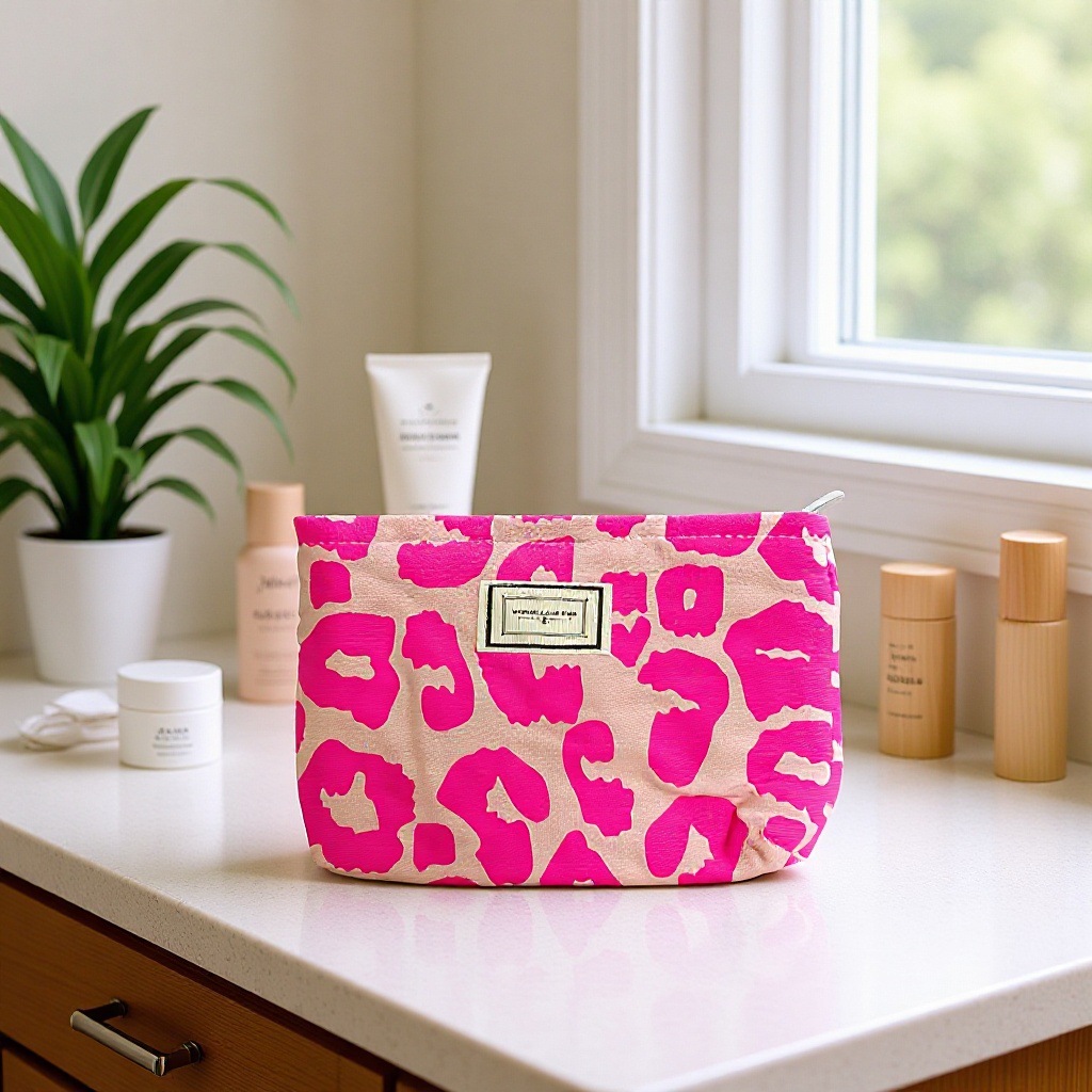 국경을 넘나드는 패셔너블한 작은 표범 무늬 화장품 가방, 특수 휴대용 캔버스 작은 가방, 클러치 백, 일본식 간단한 수납 가방