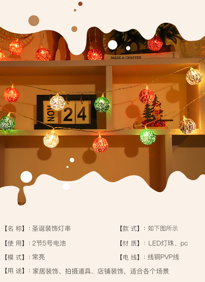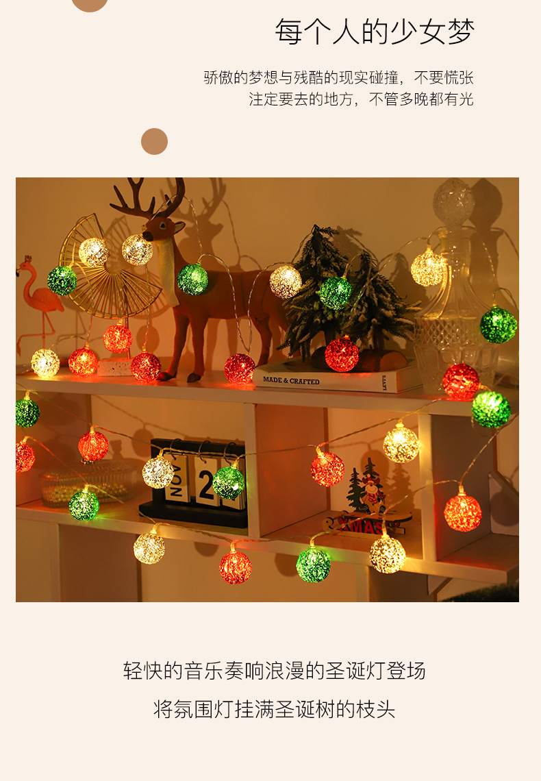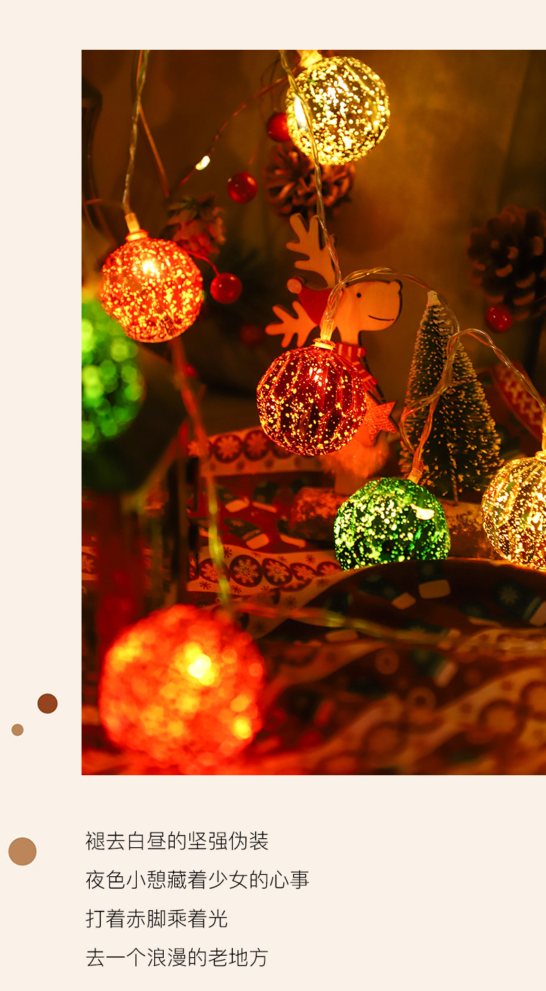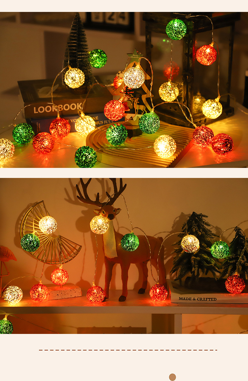 국경을 넘는 새로운 LED 크리스마스 공 조명 크리스마스 장식 조명 문자열 크리스마스 트리 펜던트 장식 깜박이는 조명 배터리
