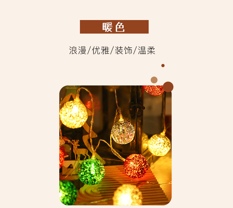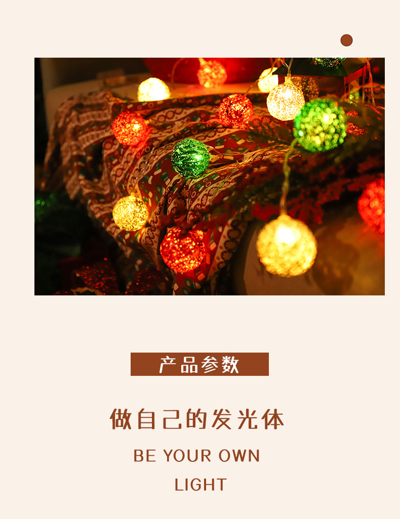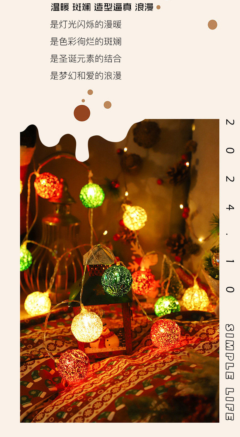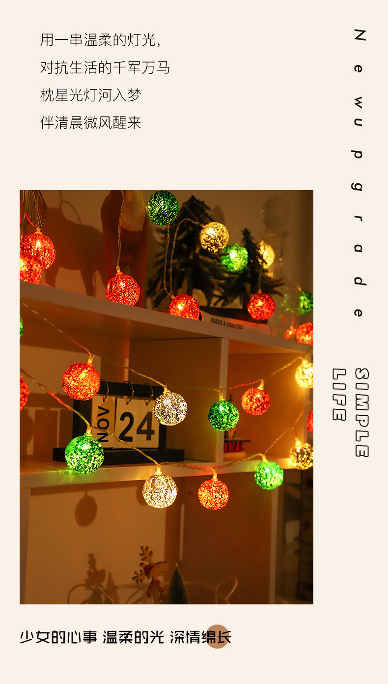 국경을 넘는 새로운 LED 크리스마스 공 조명 크리스마스 장식 조명 문자열 크리스마스 트리 펜던트 장식 깜박이는 조명 배터리