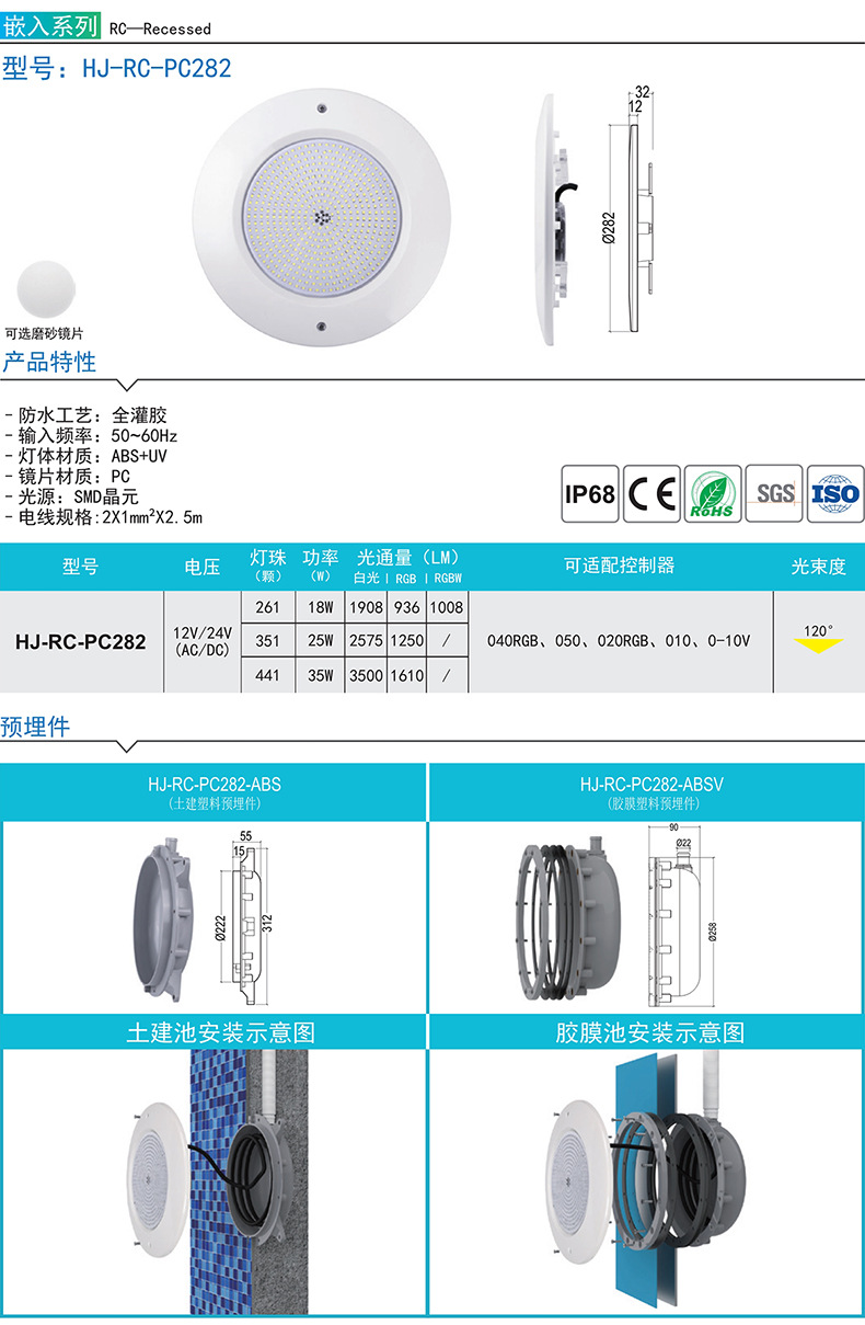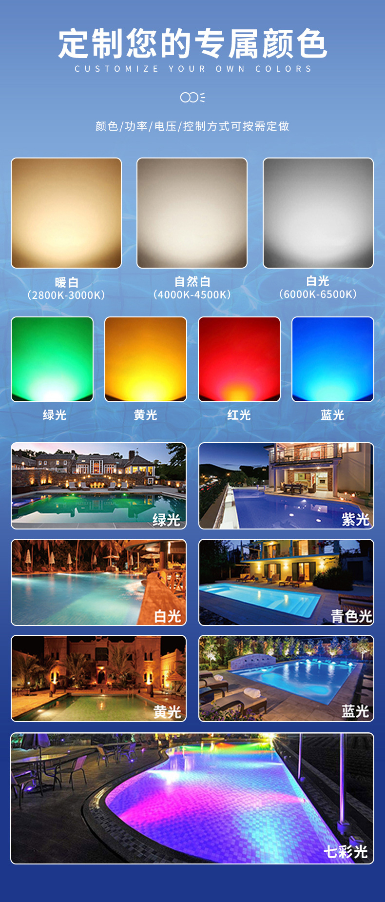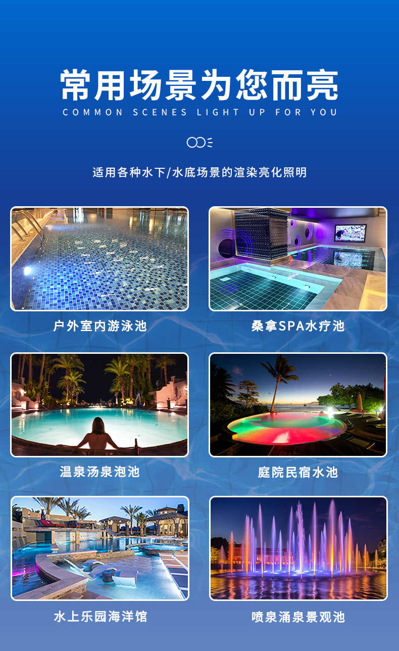 유럽 및 미국산 ABS 플라스틱 12V 필름 수영장 수중 조명, 유리 수영장 RGB 7색 LED 수영장 야간 조명 제조업체스토어 가기