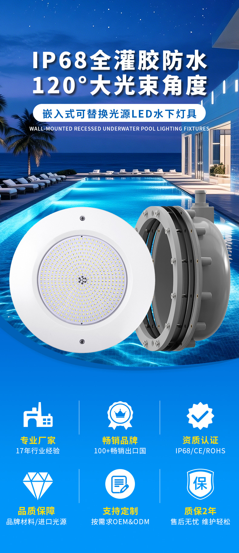 유럽 및 미국산 ABS 플라스틱 12V 필름 수영장 수중 조명, 유리 수영장 RGB 7색 LED 수영장 야간 조명 제조업체