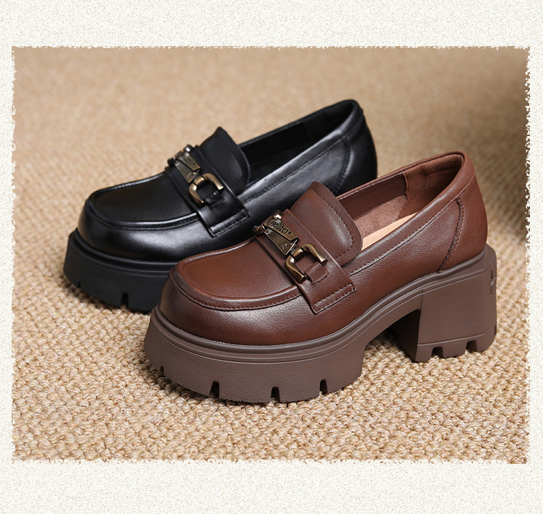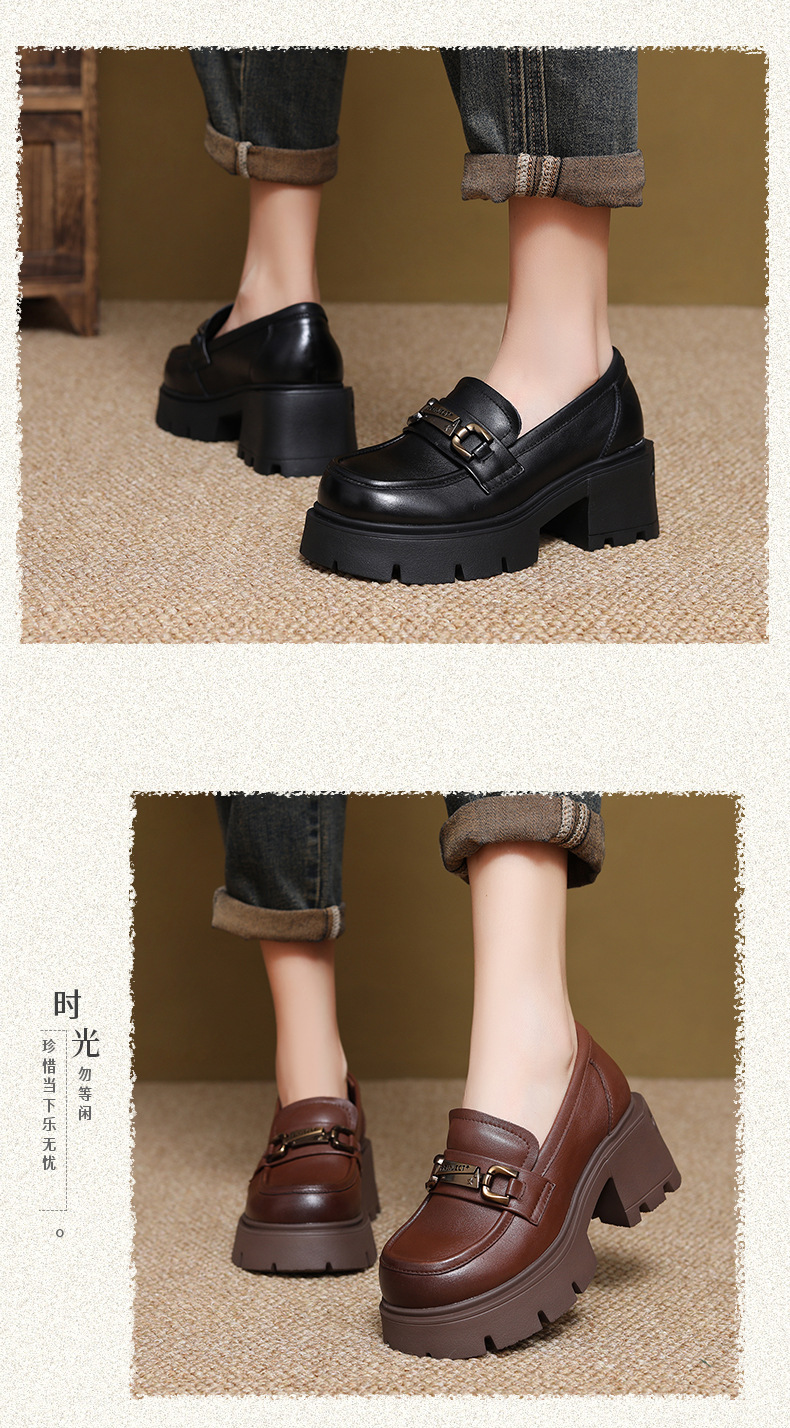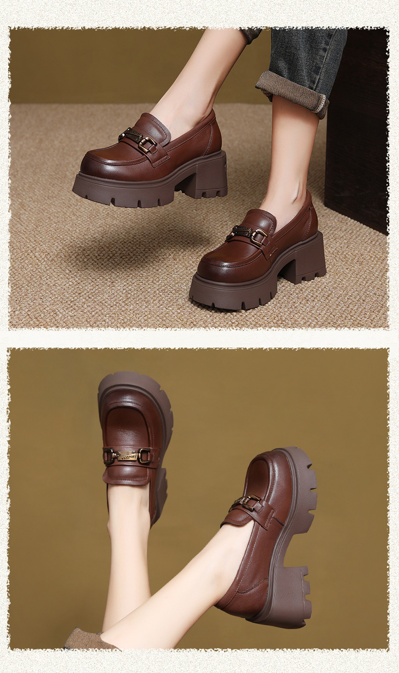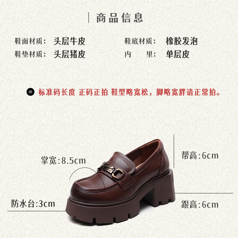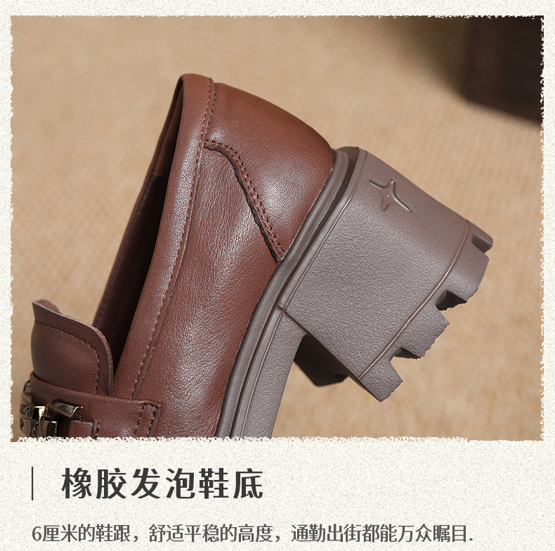 1층 소가죽 레트로 영국 스타일 로퍼 여성용 가을 신상 두꺼운 밑창 다용도 단화 굽 높이 증가 신발스토어 가기
