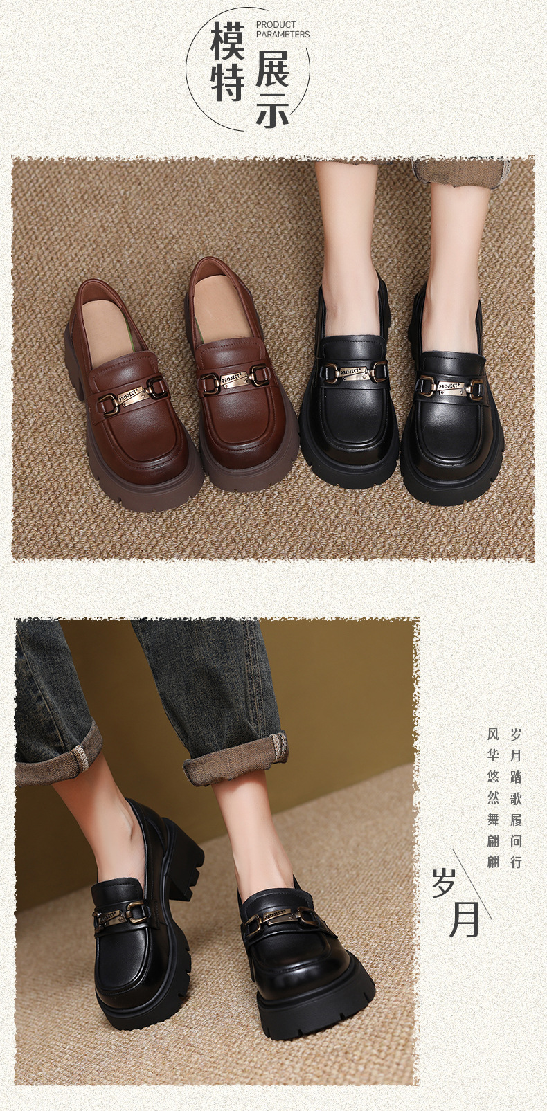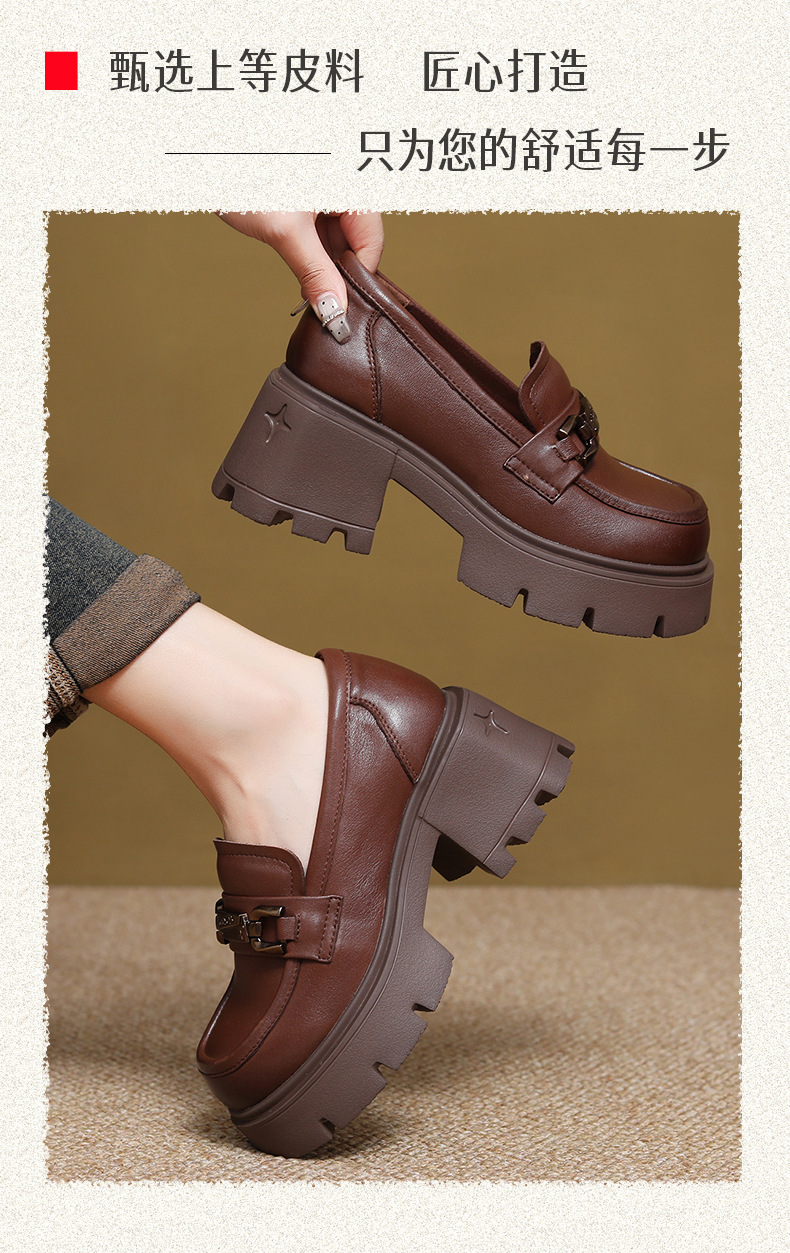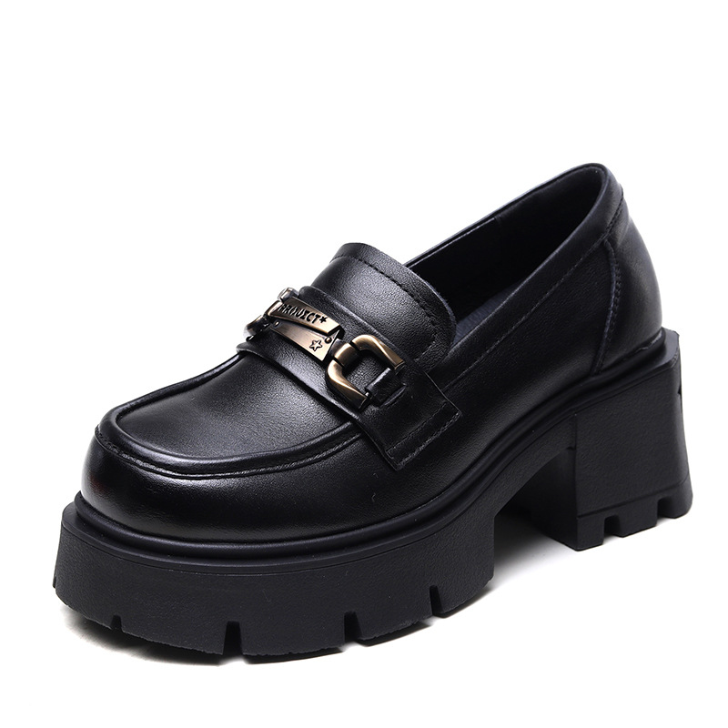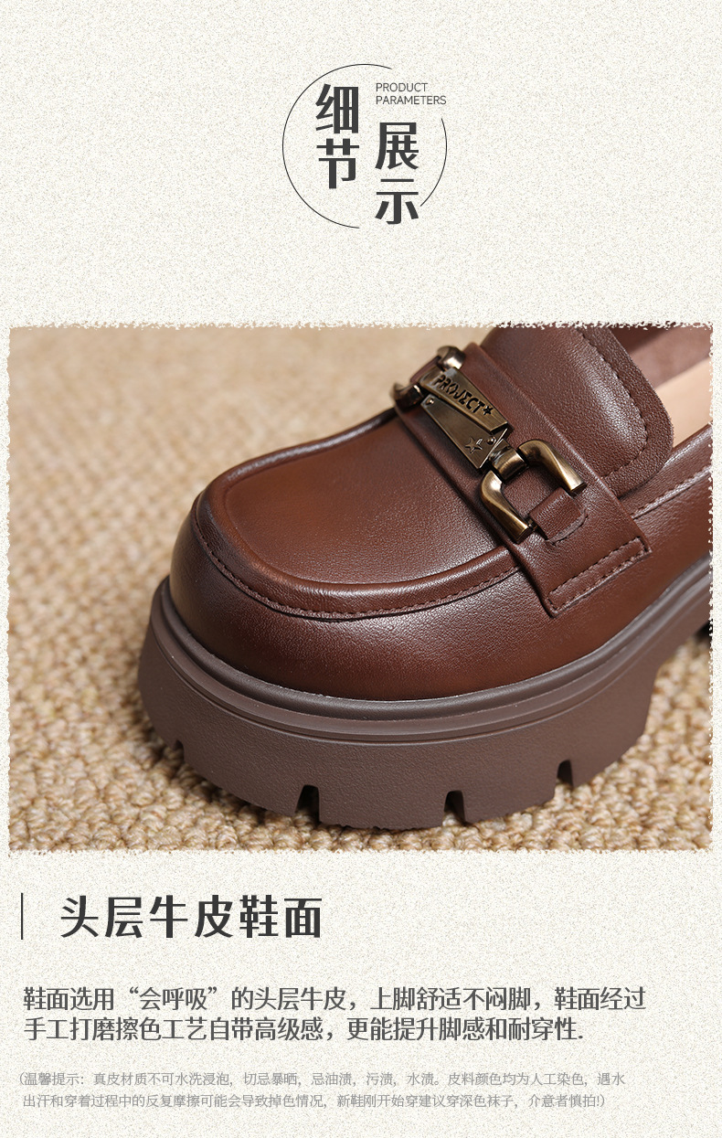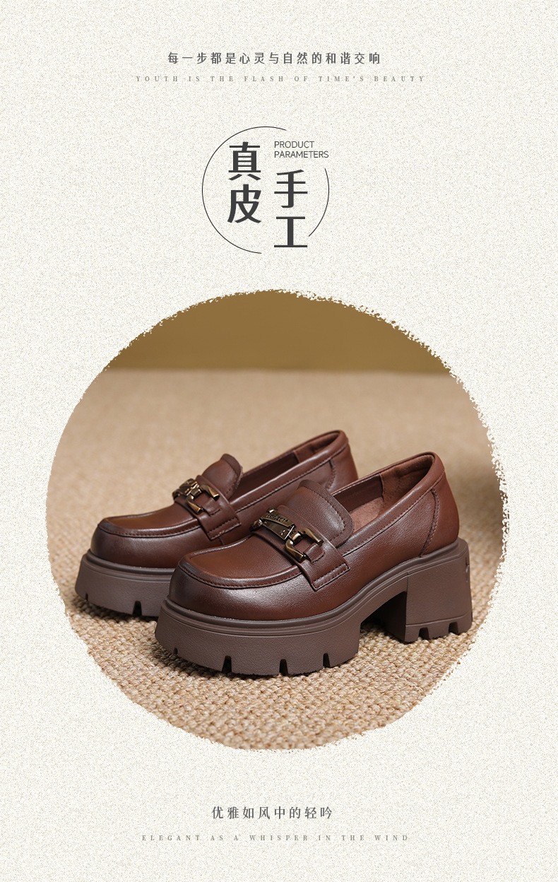 1층 소가죽 레트로 영국 스타일 로퍼 여성용 가을 신상 두꺼운 밑창 다용도 단화 굽 높이 증가 신발스토어 가기