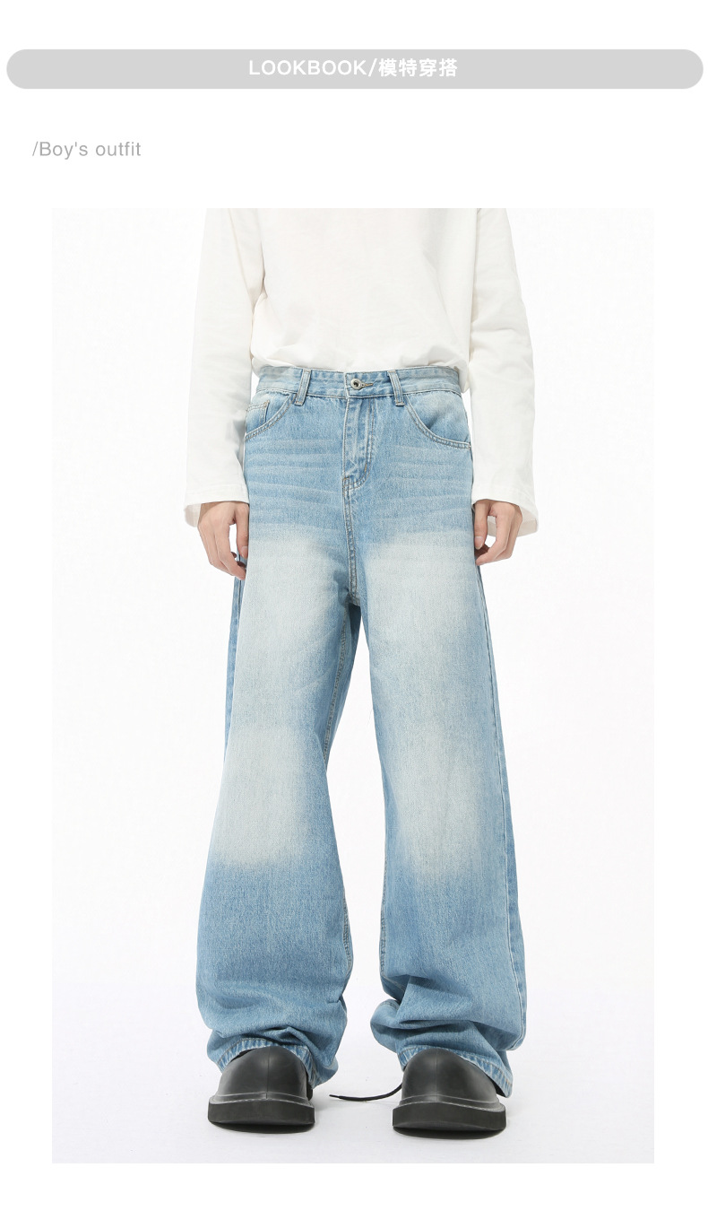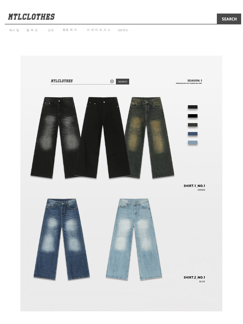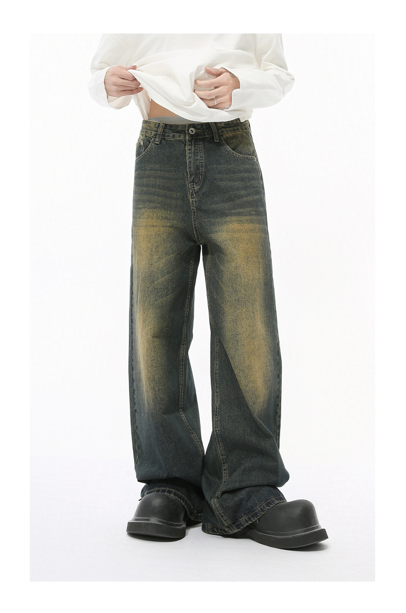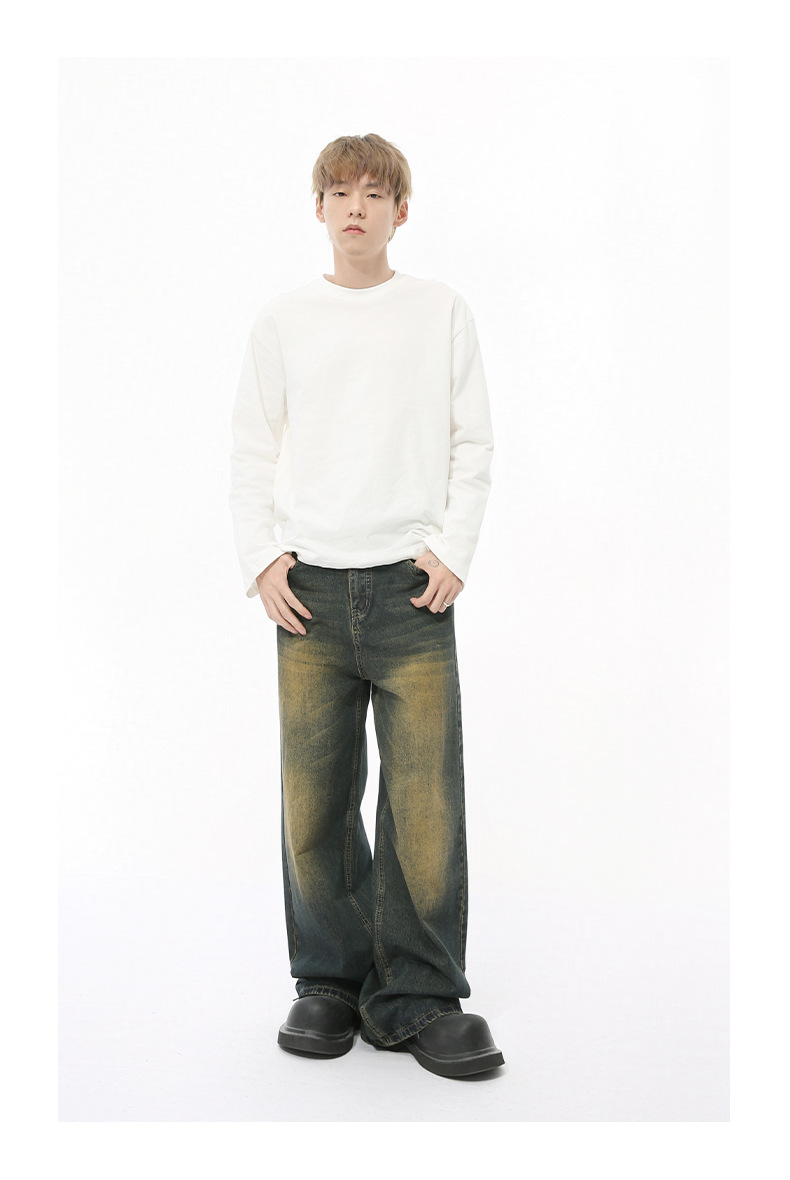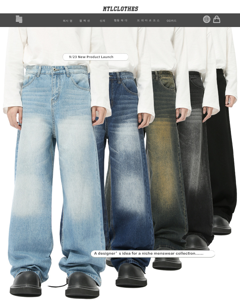 MTLCLOTHES 남성복 | 가을 새로운 한국 스타일 레트로 멀티 컬러 올드 화이트 스트레이트 레그 청바지 트렌디스토어 가기