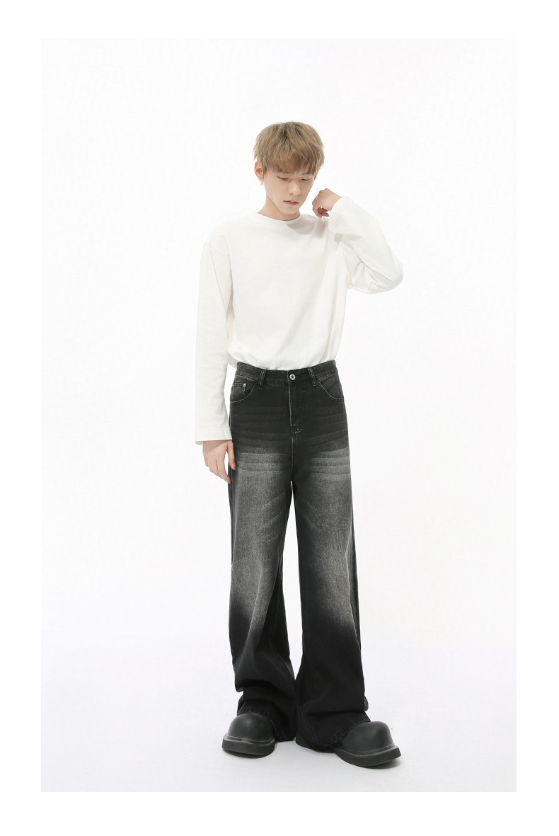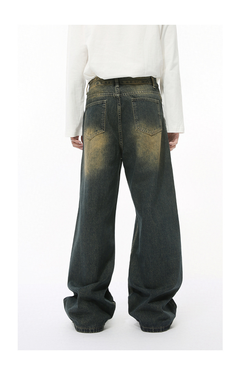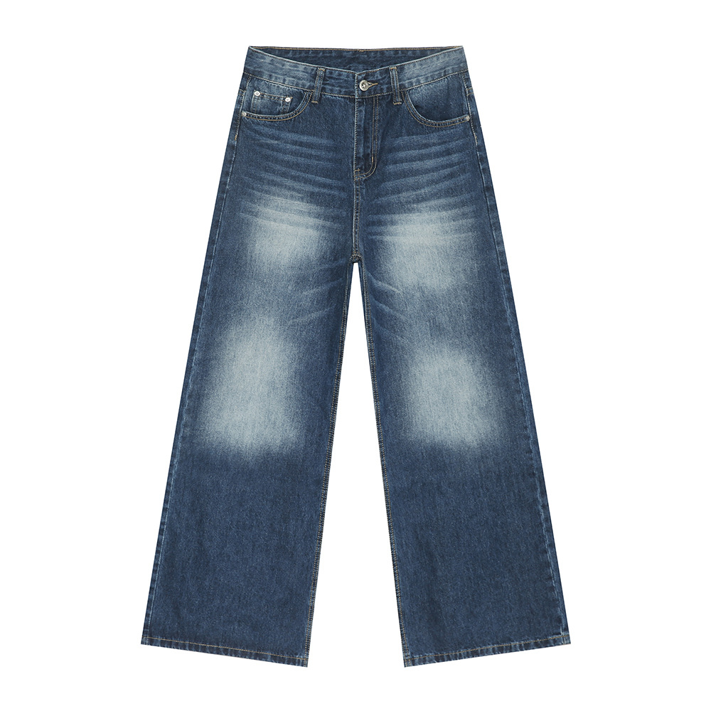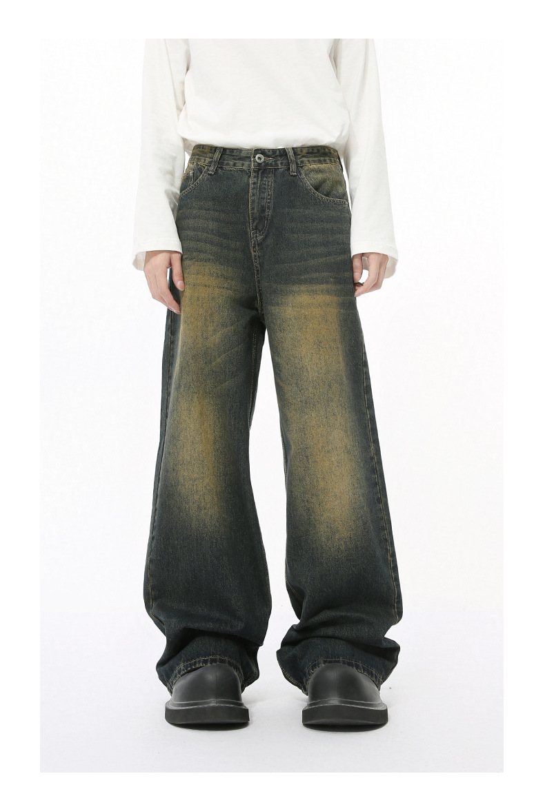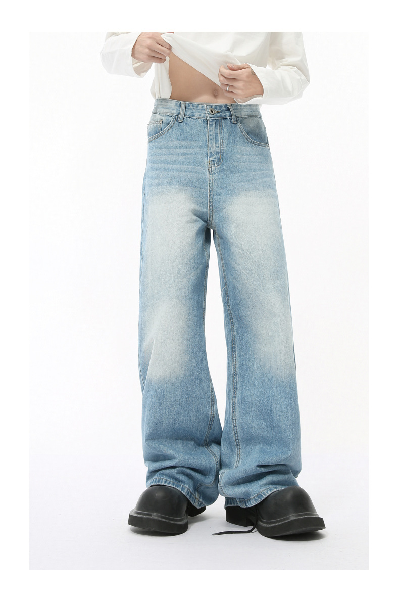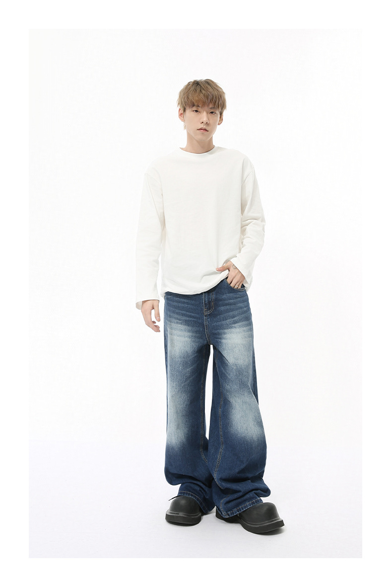 MTLCLOTHES 남성복 | 가을 새로운 한국 스타일 레트로 멀티 컬러 올드 화이트 스트레이트 레그 청바지 트렌디스토어 가기