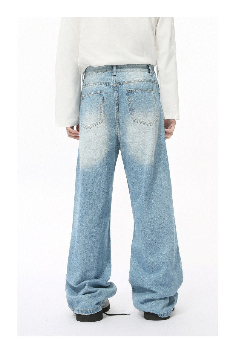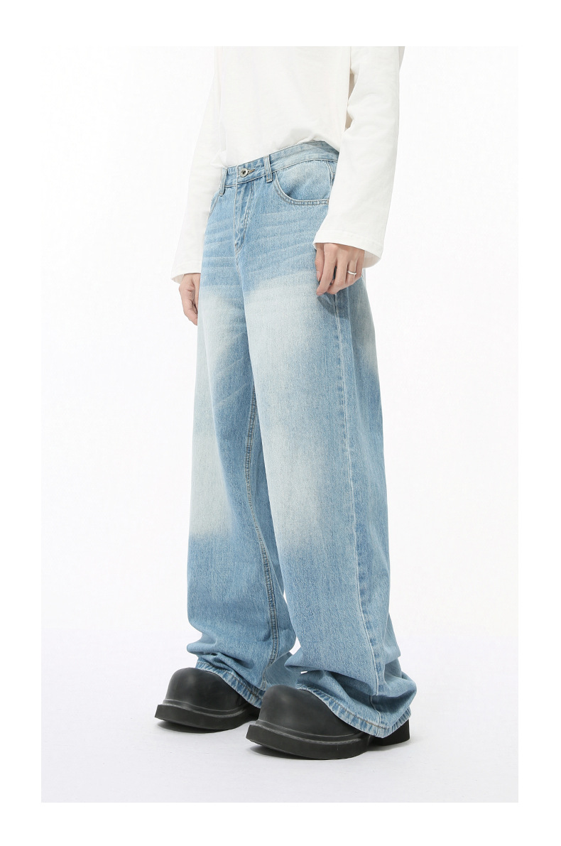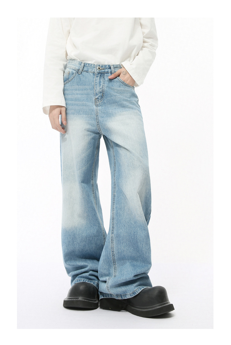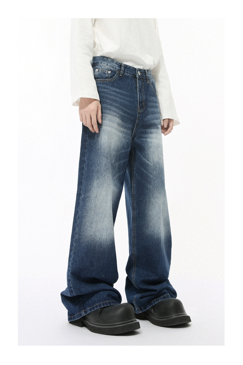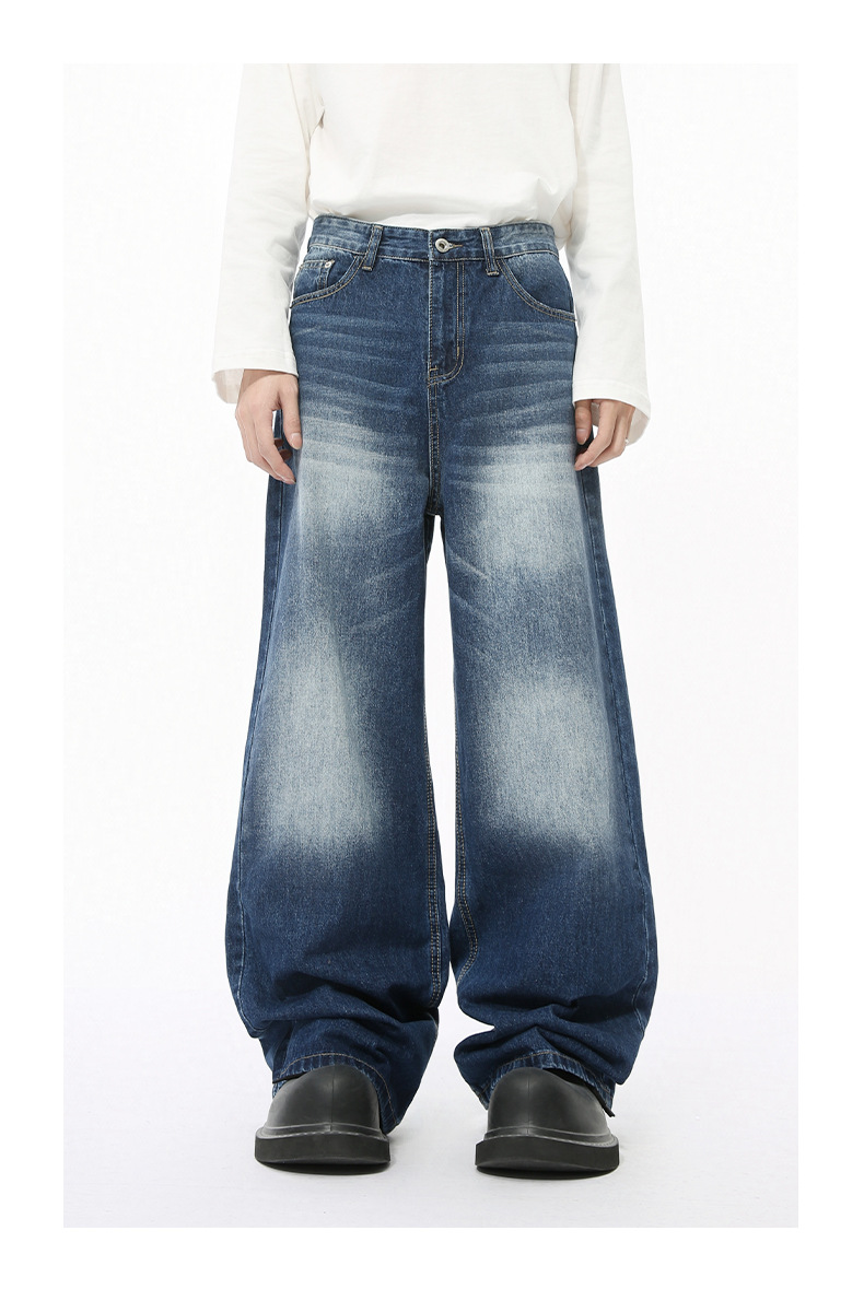 MTLCLOTHES 남성복 | 가을 새로운 한국 스타일 레트로 멀티 컬러 올드 화이트 스트레이트 레그 청바지 트렌디스토어 가기