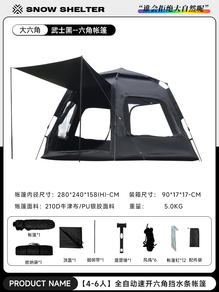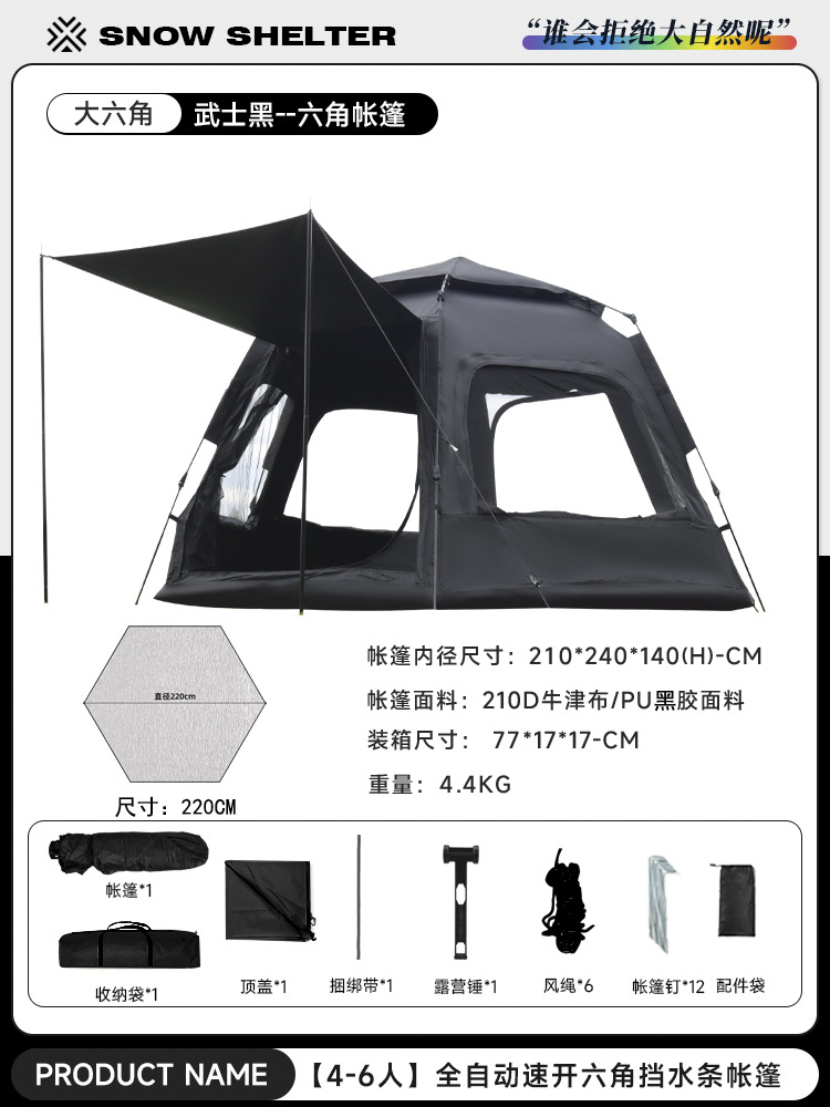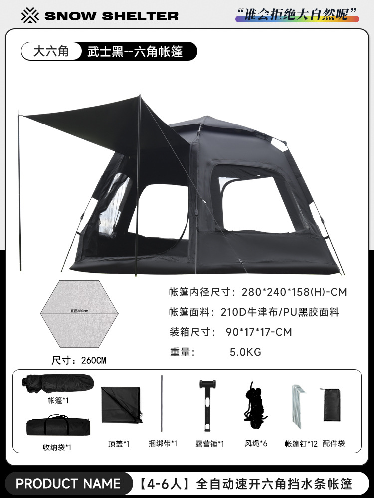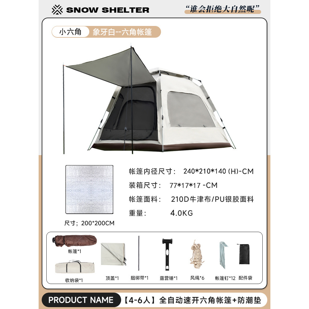 육각 텐트 휴대용 자동 빠른 열기 두꺼운 옥스포드 천 방수 선 스크린 야외 피크닉 캠핑 텐트