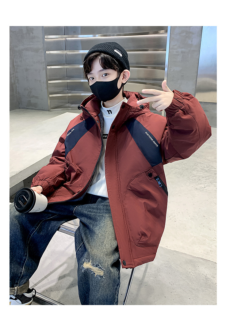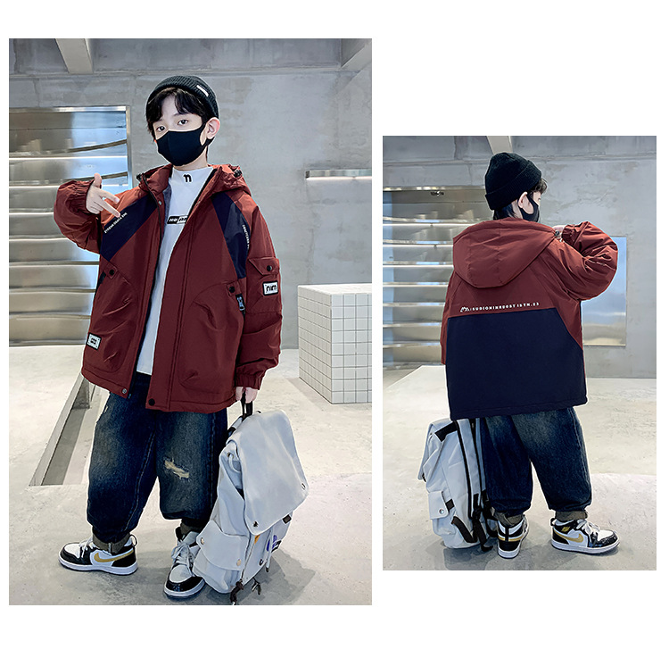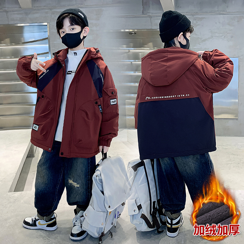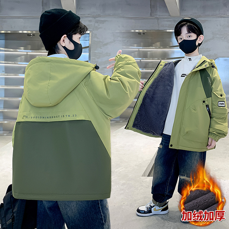 아동복 소년 기모 면 코트 2024 새로운 어린이 잘 생긴 가을 꽃 봄 가을 겨울 어린이 착용스토어 가기