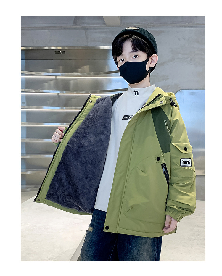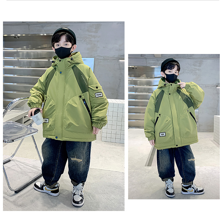 아동복 소년 기모 면 코트 2024 새로운 어린이 잘 생긴 가을 꽃 봄 가을 겨울 어린이 착용