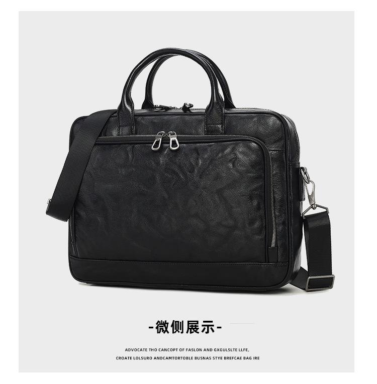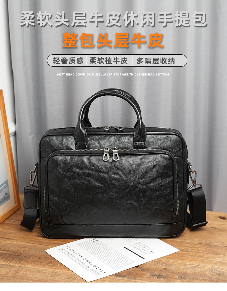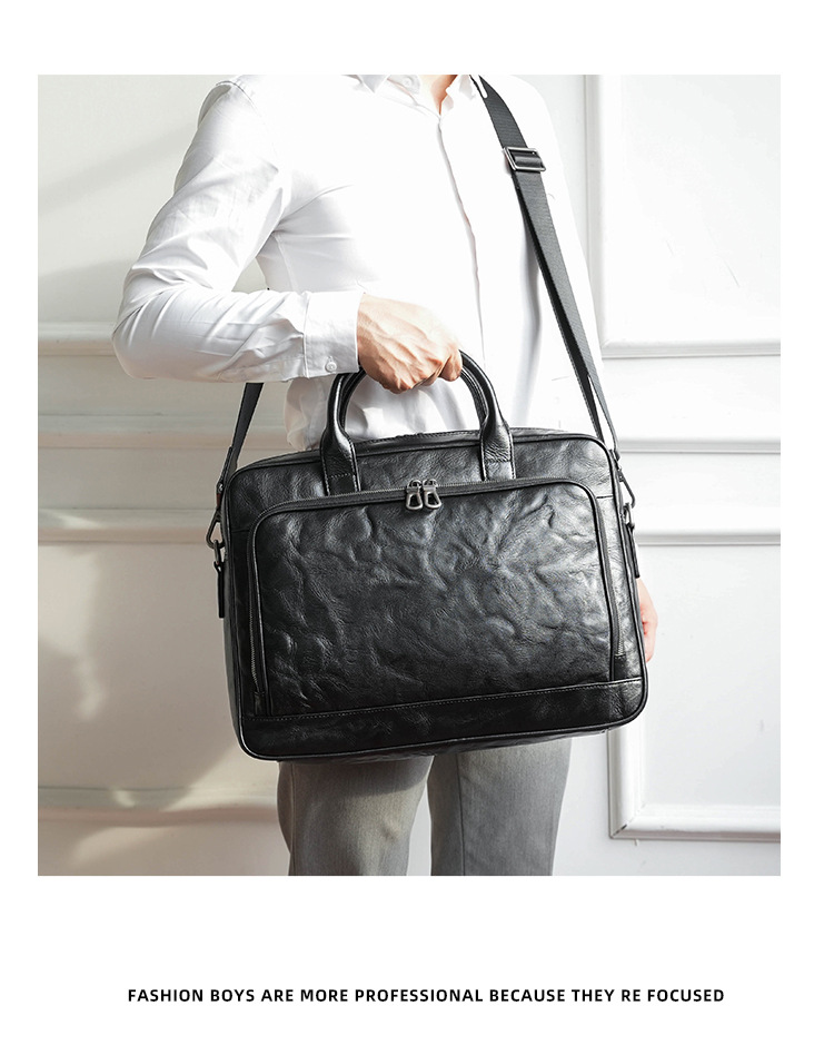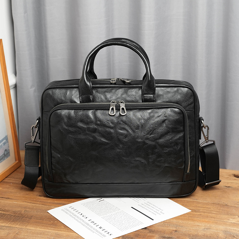 가죽 남성용 서류가방, 주름 디자인, 대용량 남성용 핸드백, 소가죽 컴퓨터 가방, 패셔너블하고 캐주얼한 남성 가방
