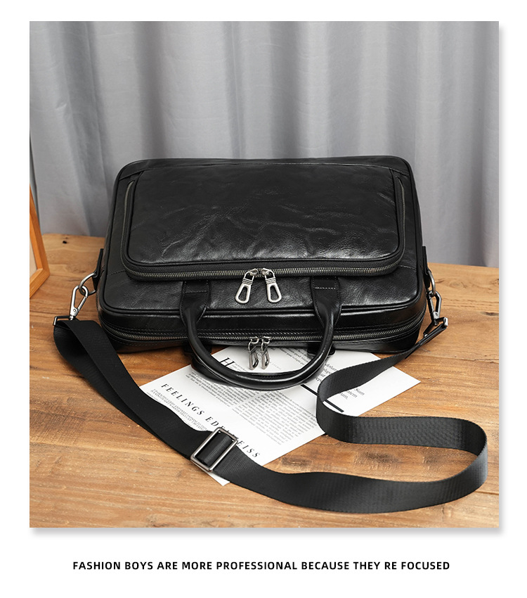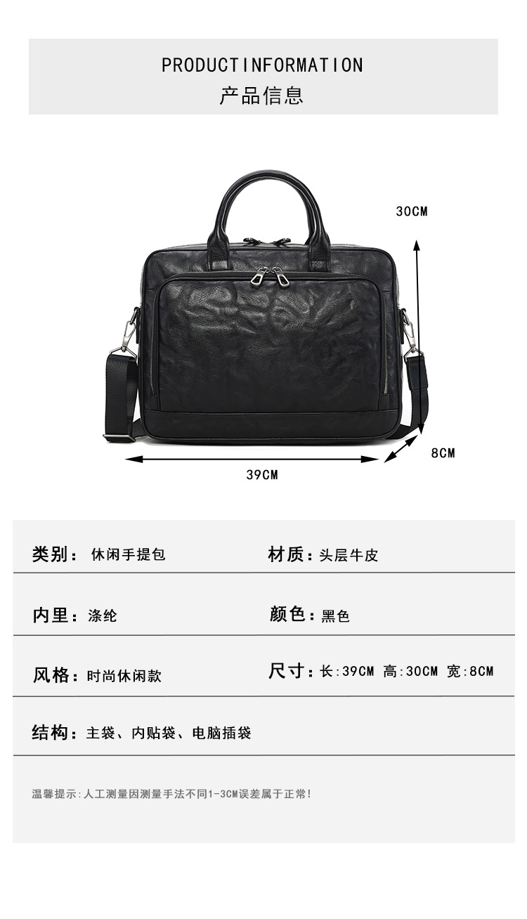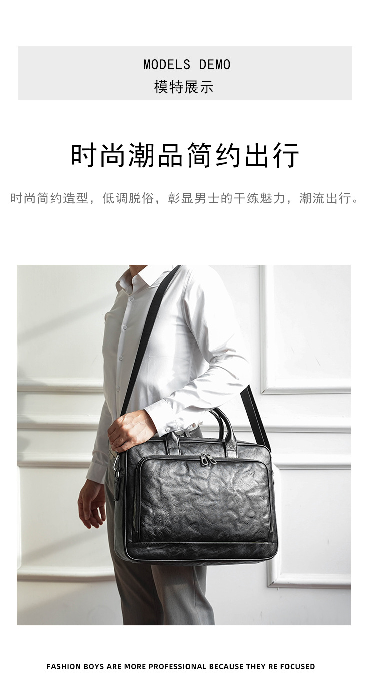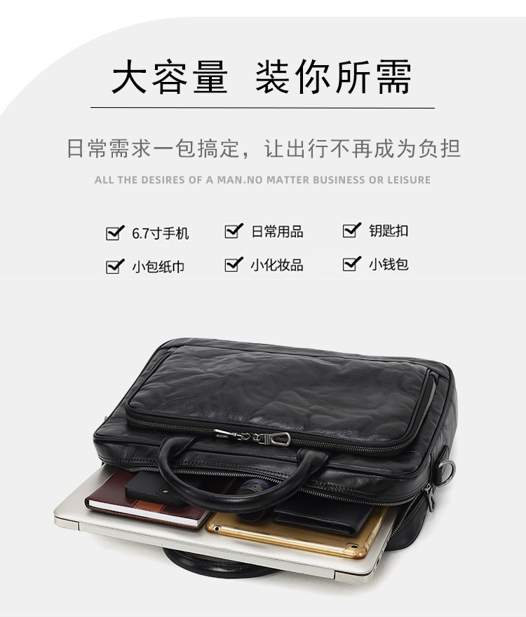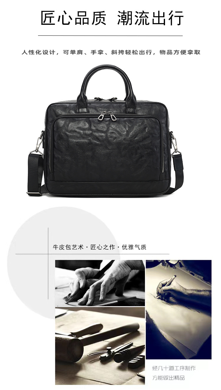 가죽 남성용 서류가방, 주름 디자인, 대용량 남성용 핸드백, 소가죽 컴퓨터 가방, 패셔너블하고 캐주얼한 남성 가방스토어 가기