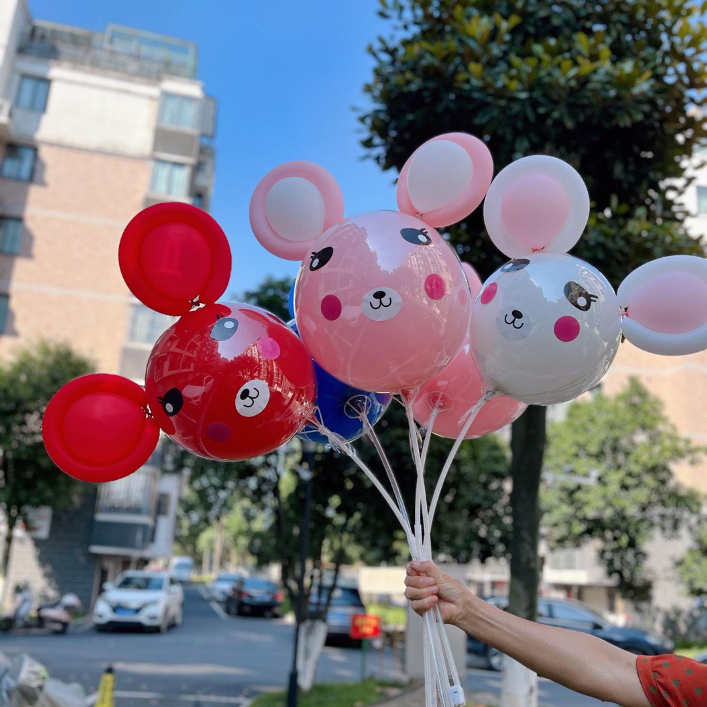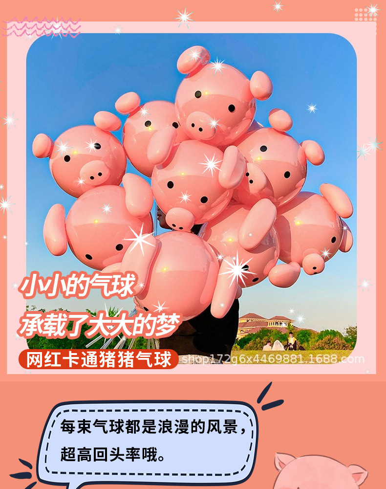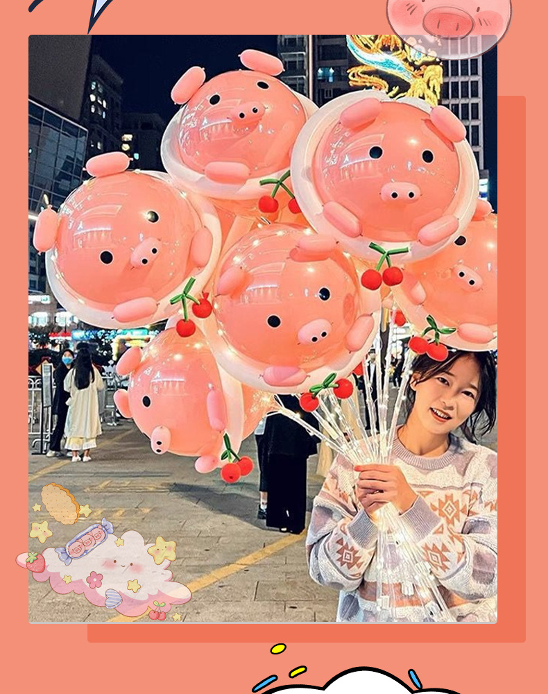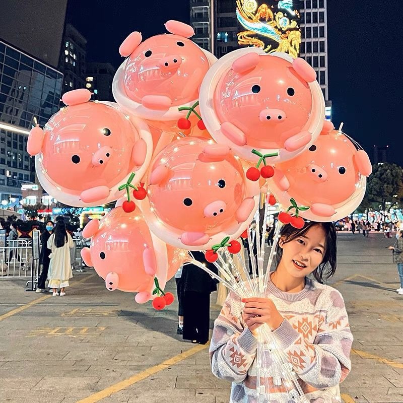 도매 국경일 그물 빨간 돼지 풍선 거리, 광활한 야시장 판매 포장 파동 공 만화 수제 소재 가방스토어 가기