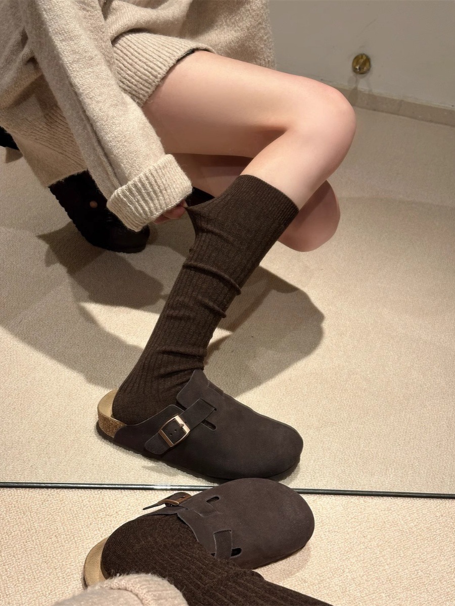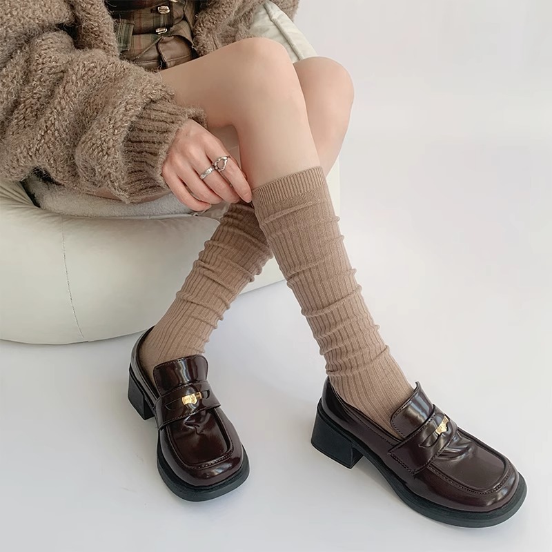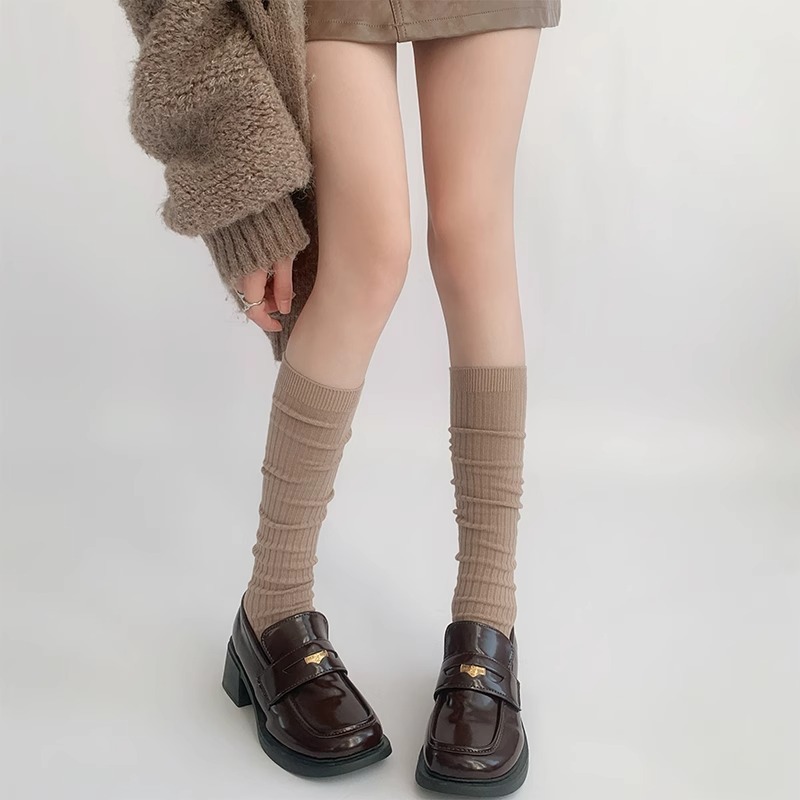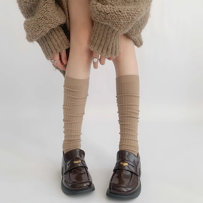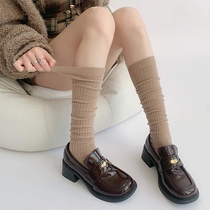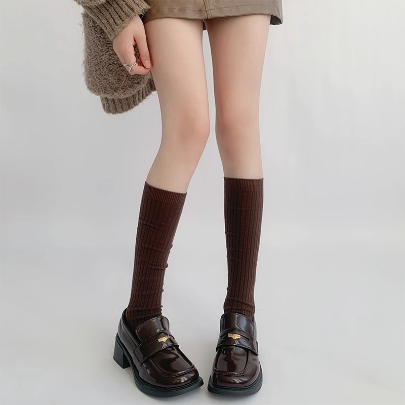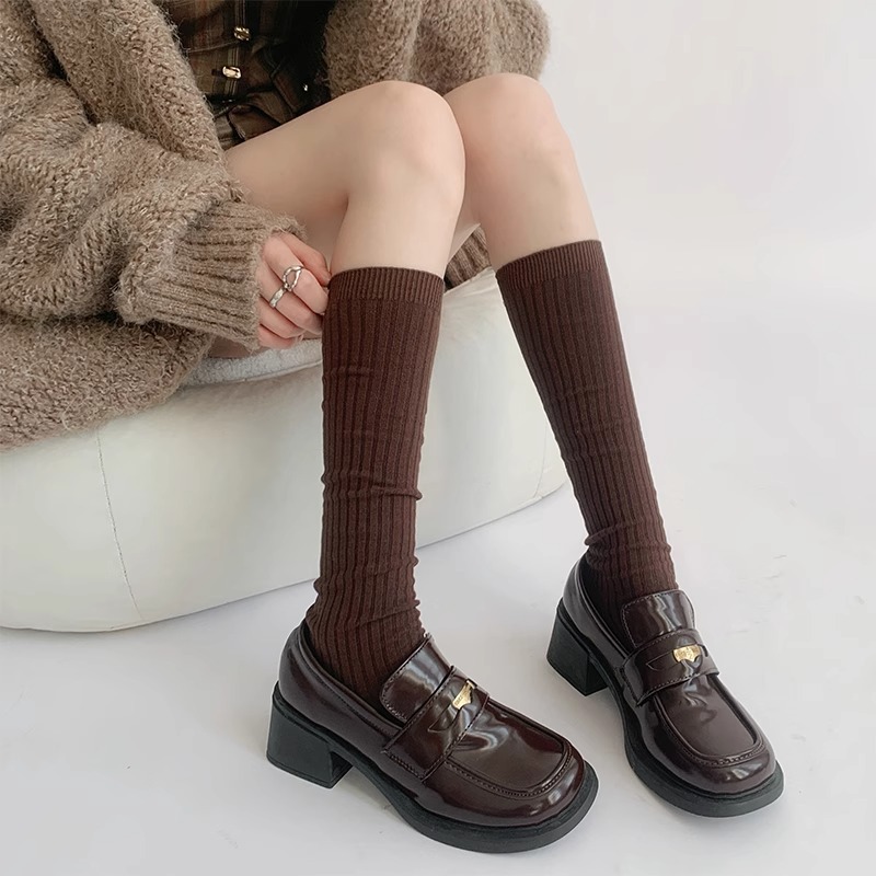 단색 간단한 송아지 양말 여성 일본 스타일 스택 양말 가을 및 겨울 학술 스타일 JK 스타킹 다크 브라운 Maillard 양말스토어 가기
