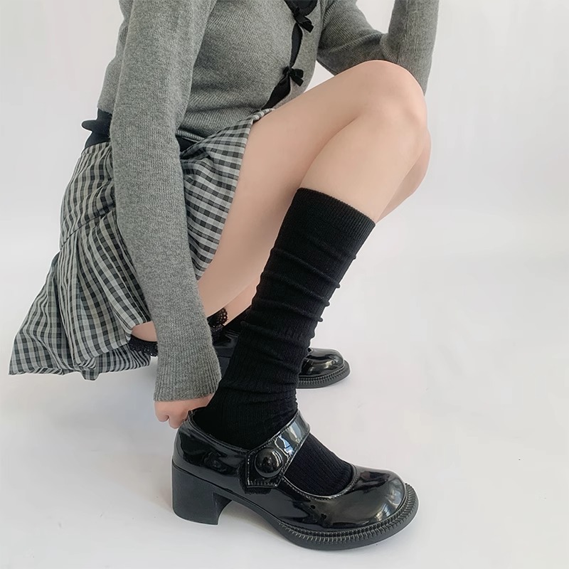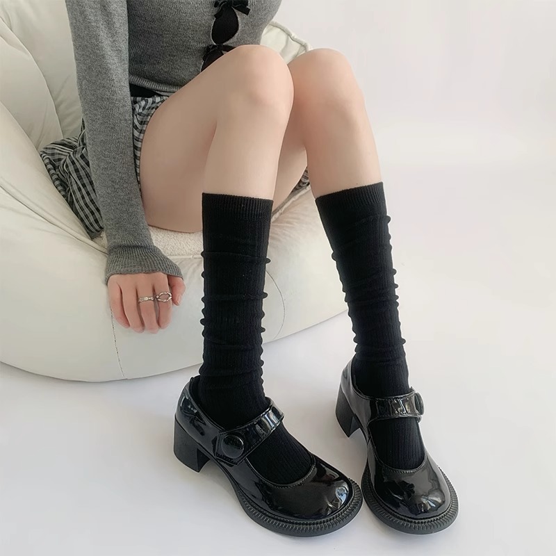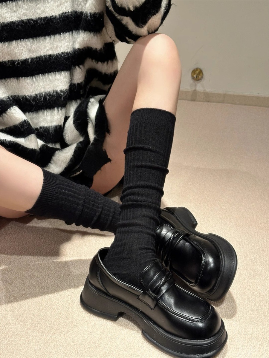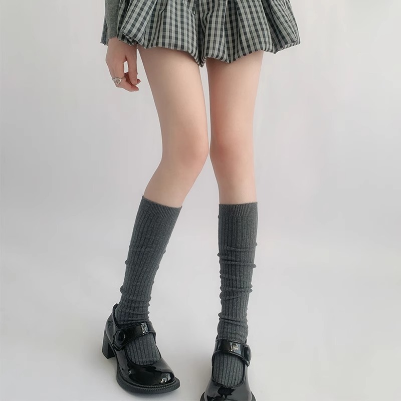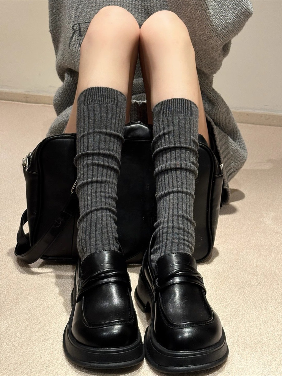 단색 간단한 송아지 양말 여성 일본 스타일 스택 양말 가을 및 겨울 학술 스타일 JK 스타킹 다크 브라운 Maillard 양말스토어 가기