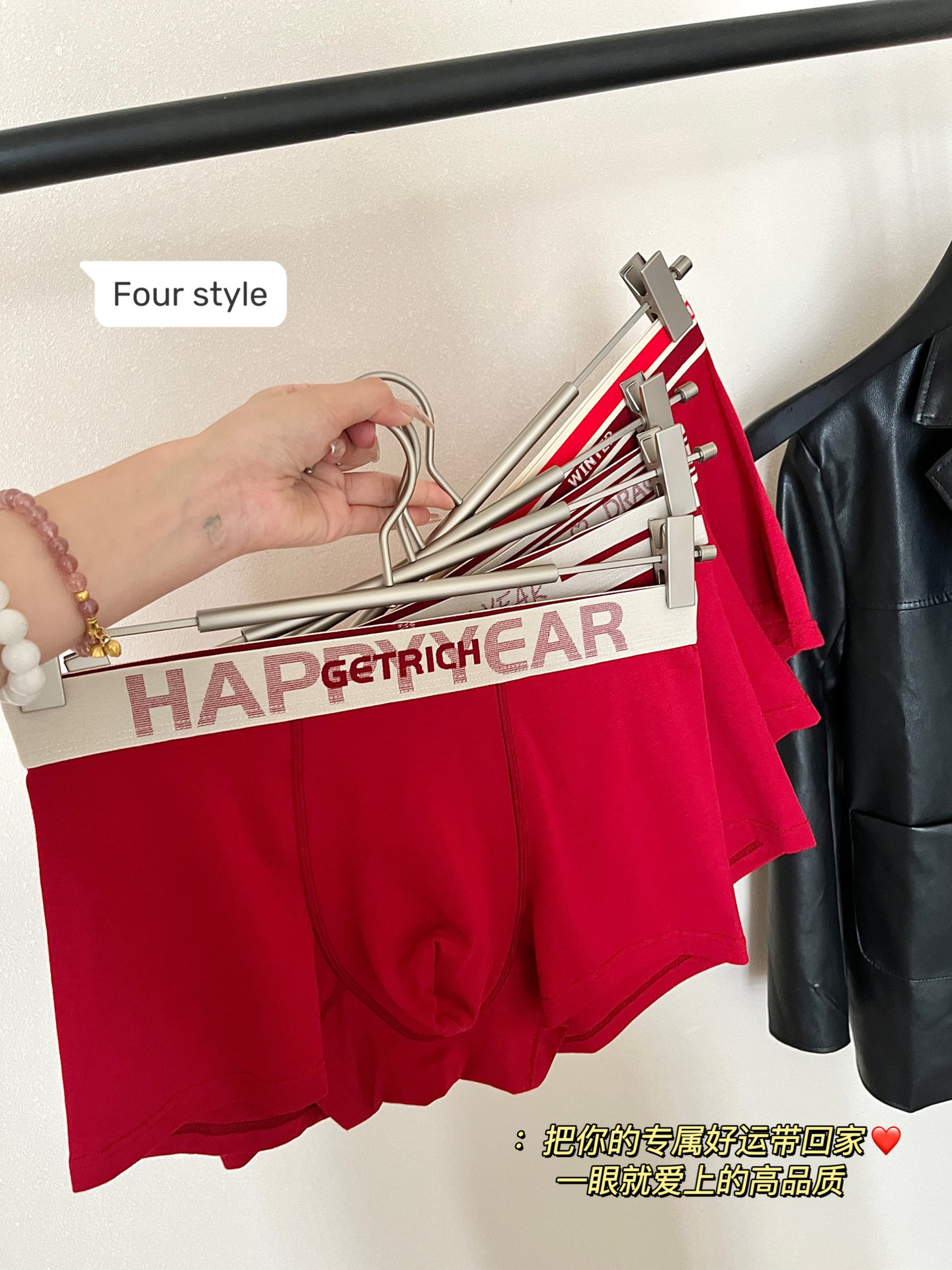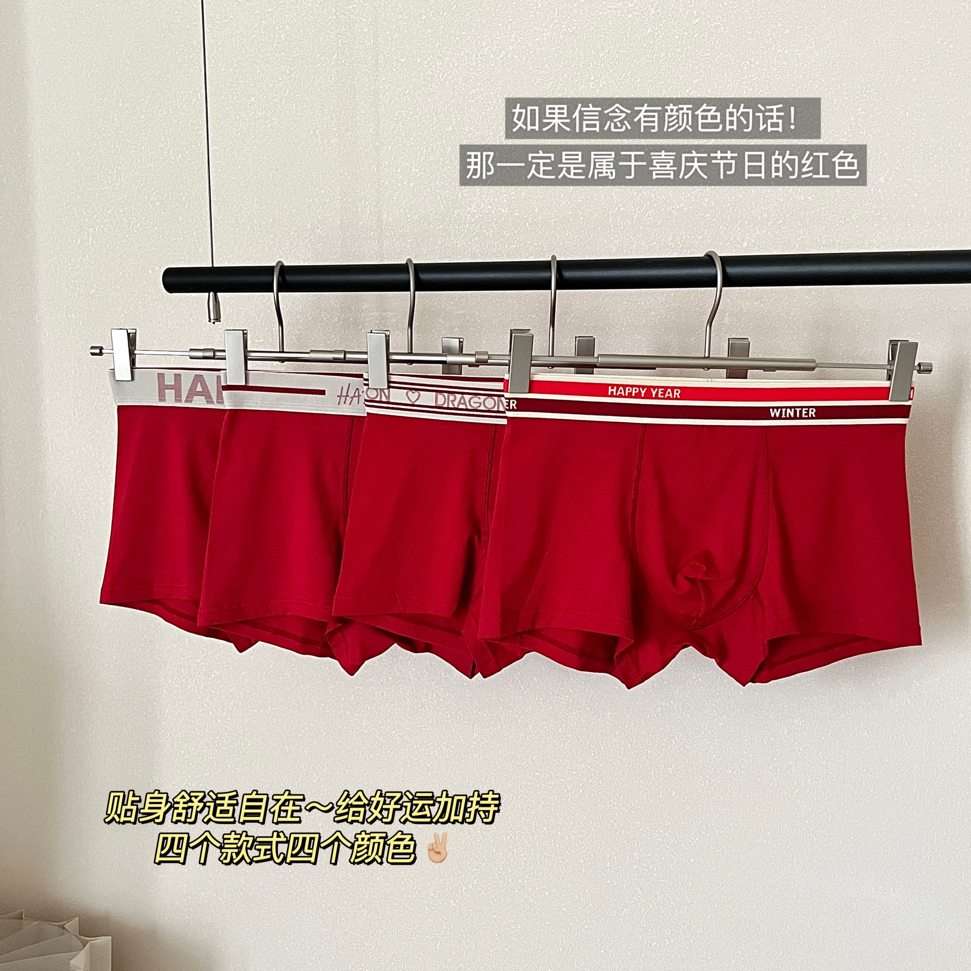 Benmingnian Big Red 남자 플랫 코너 바지 리치 웨딩 새해 더블 바닥 통기성 미드 웨이스트 4 코너 바지