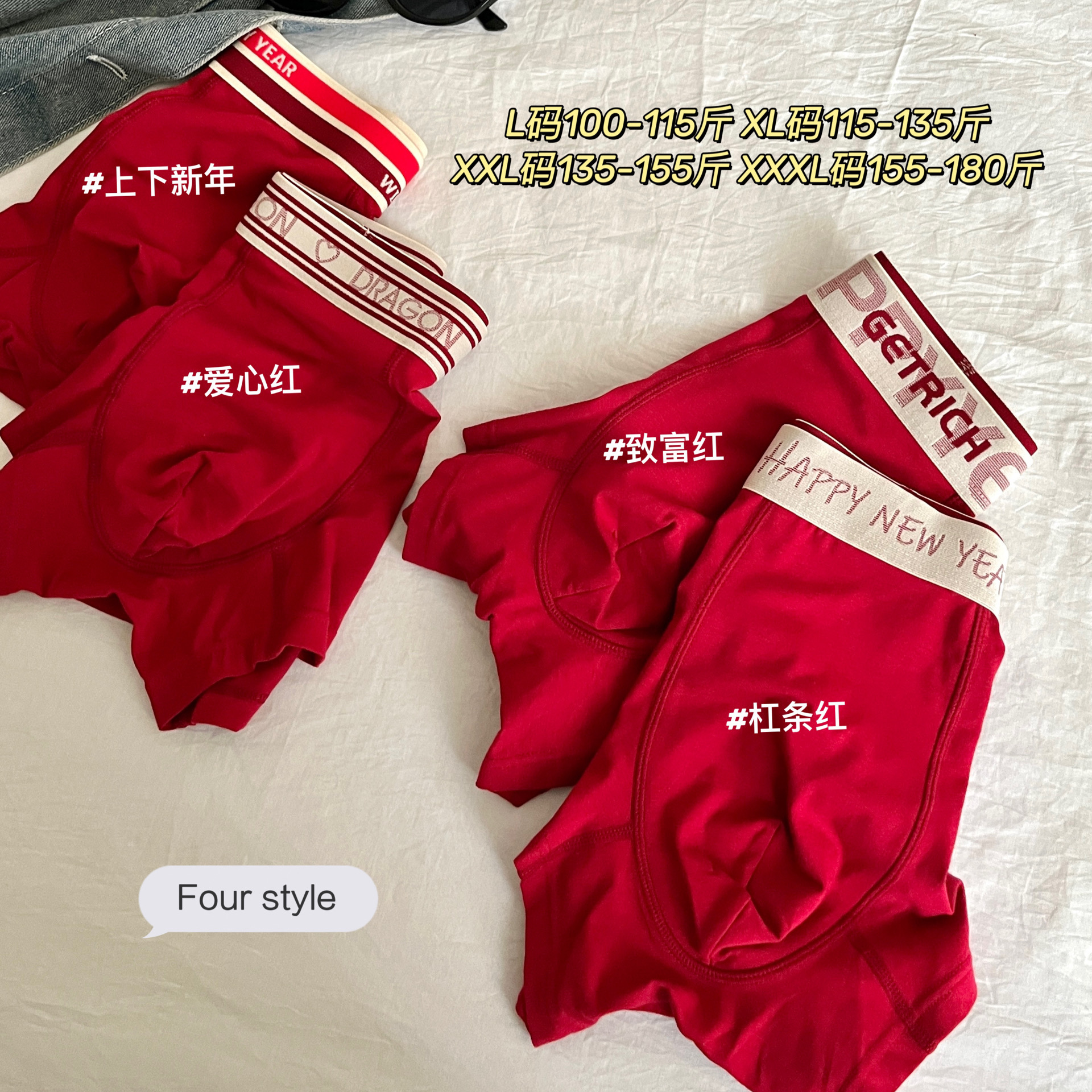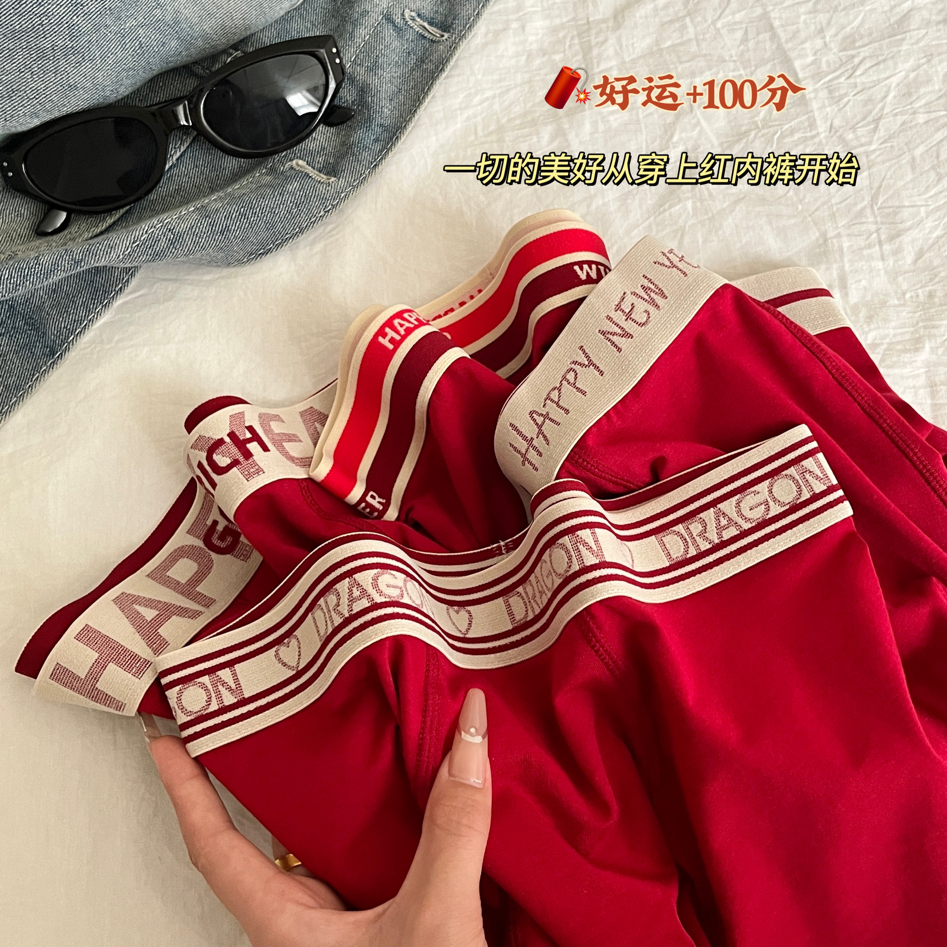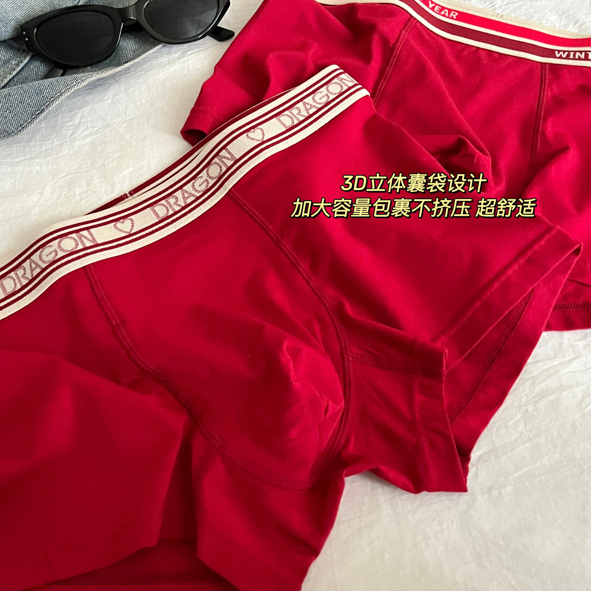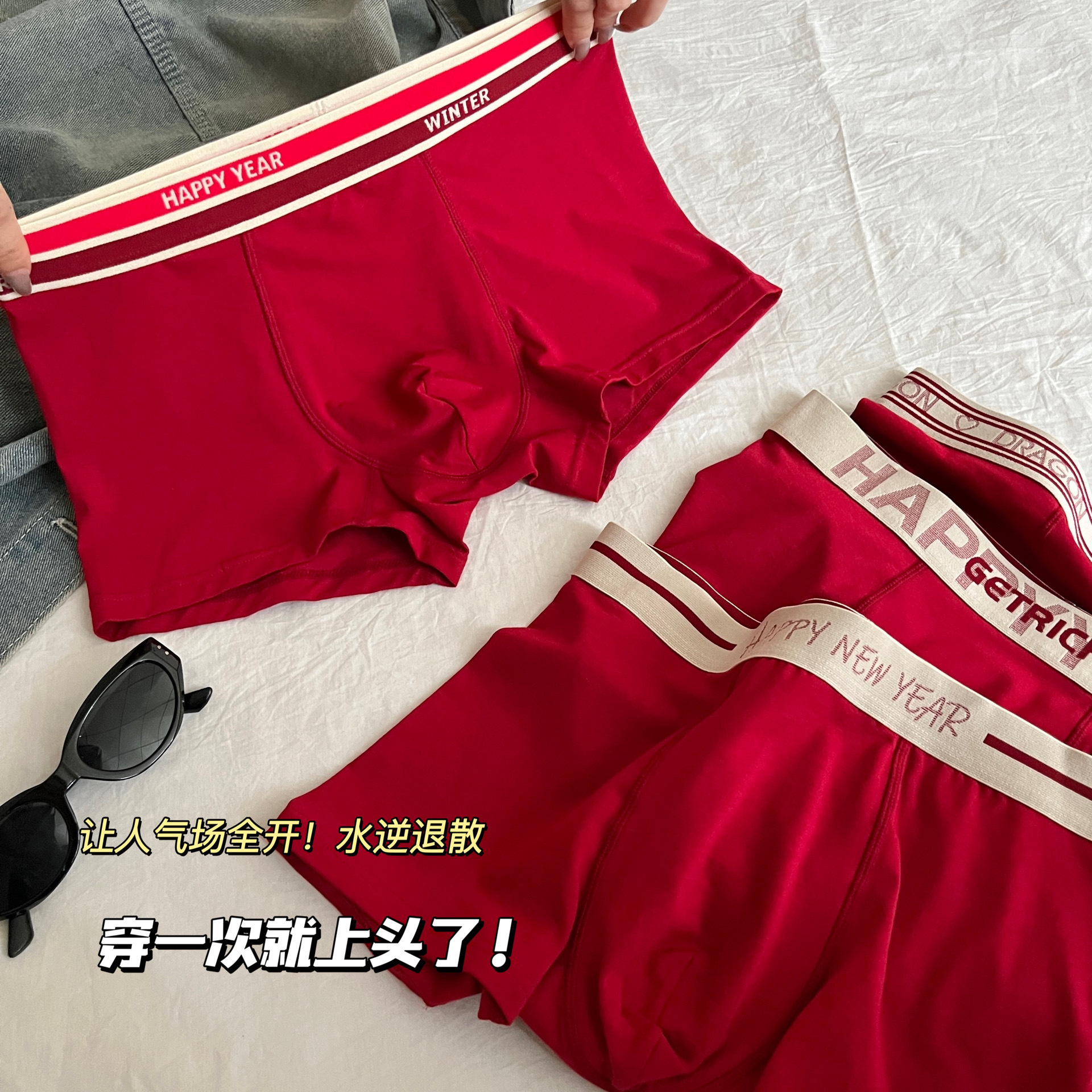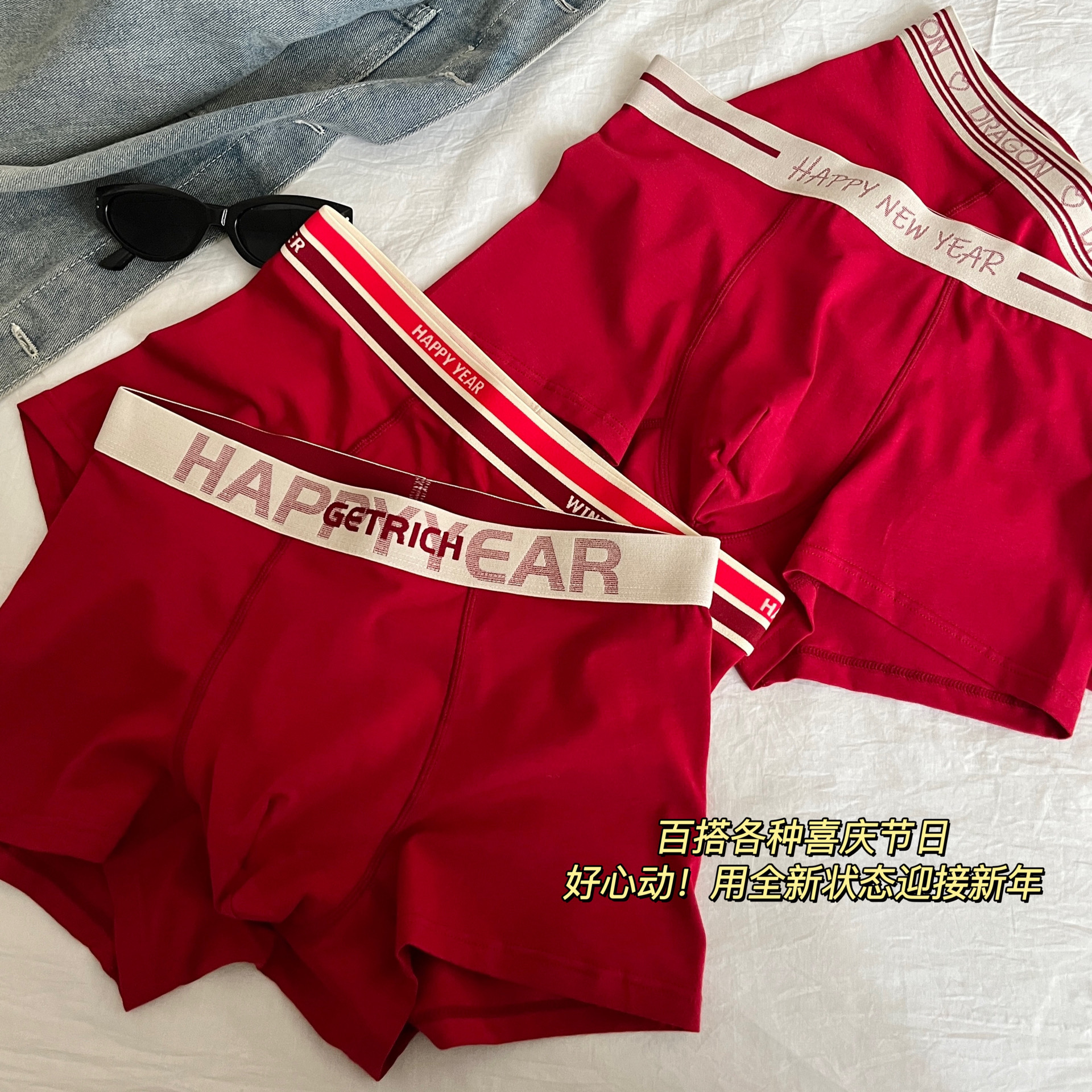 Benmingnian Big Red 남자 플랫 코너 바지 리치 웨딩 새해 더블 바닥 통기성 미드 웨이스트 4 코너 바지스토어 가기