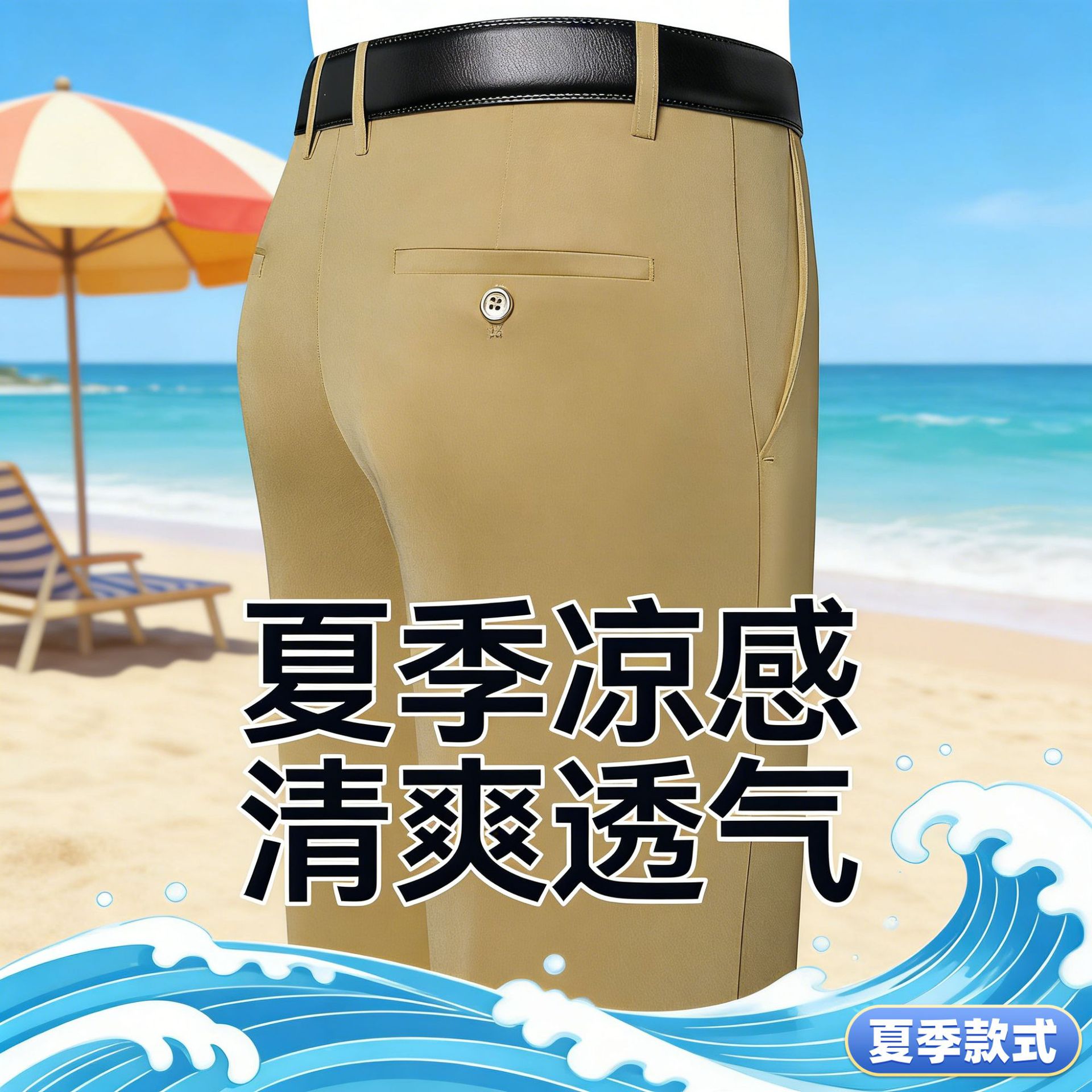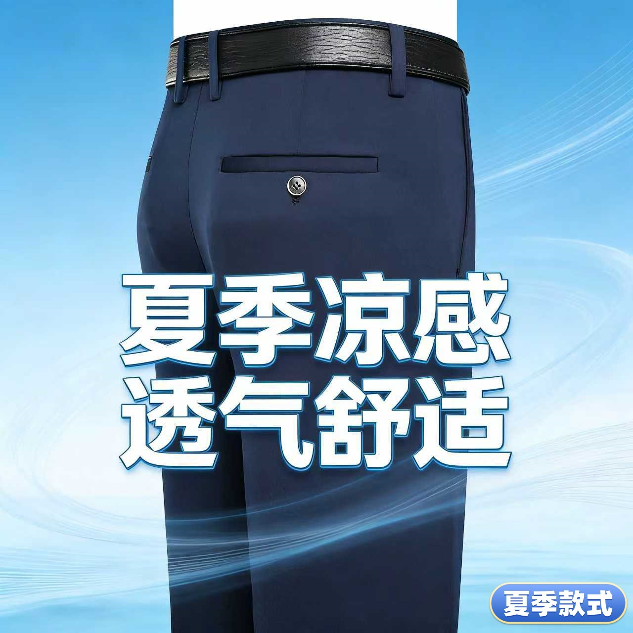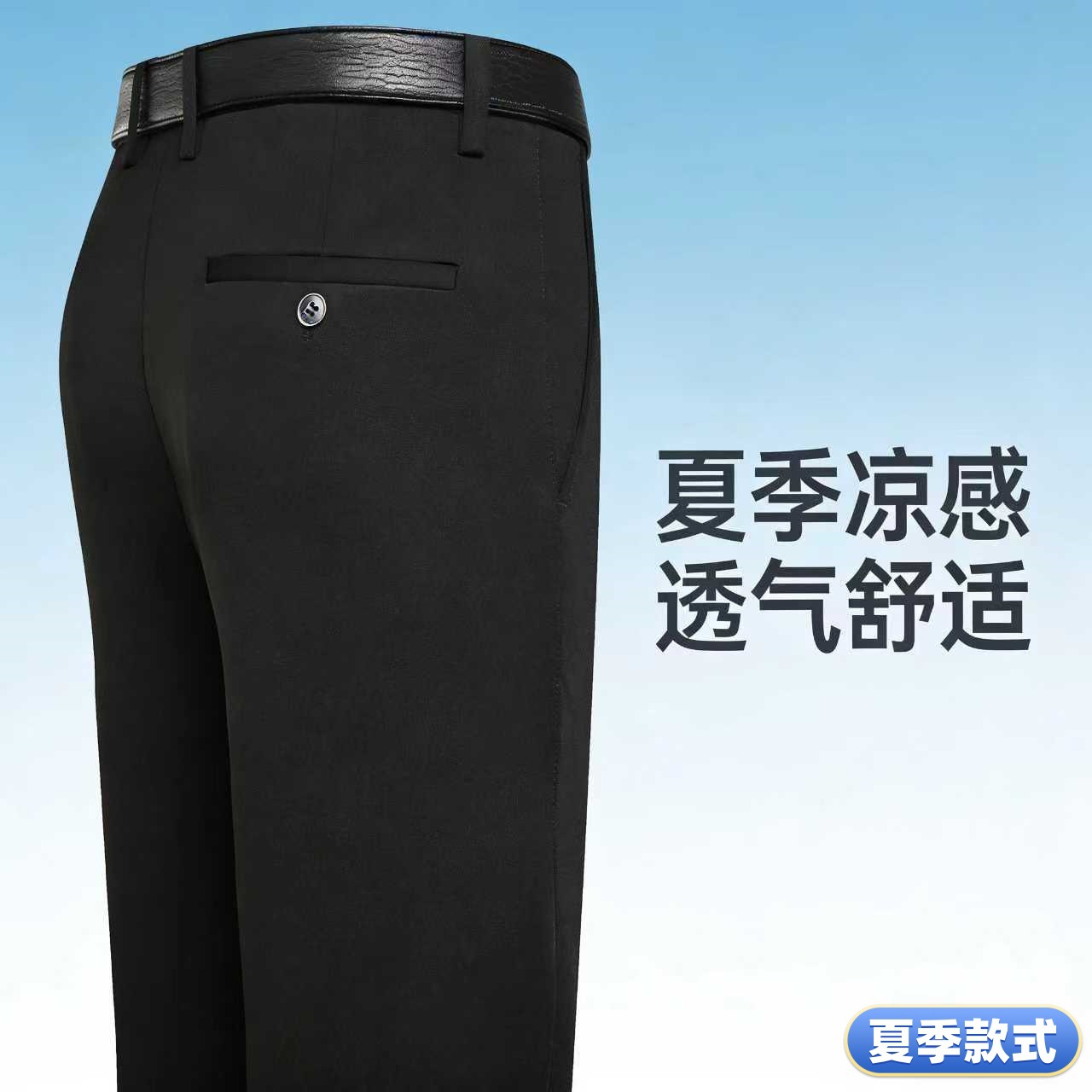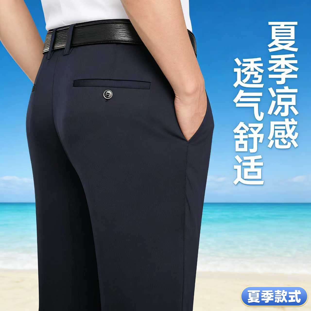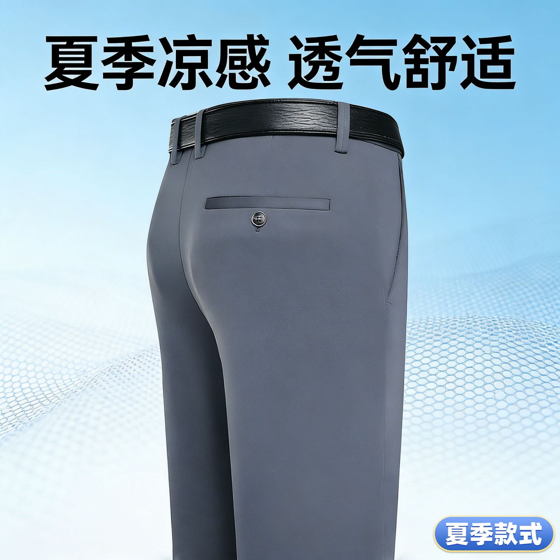 새로운 스타일의 얇은 남성용 바지, 고탄성, 구김 방지, 정장 바지, 루즈핏 남성 캐주얼 바지스토어 가기
