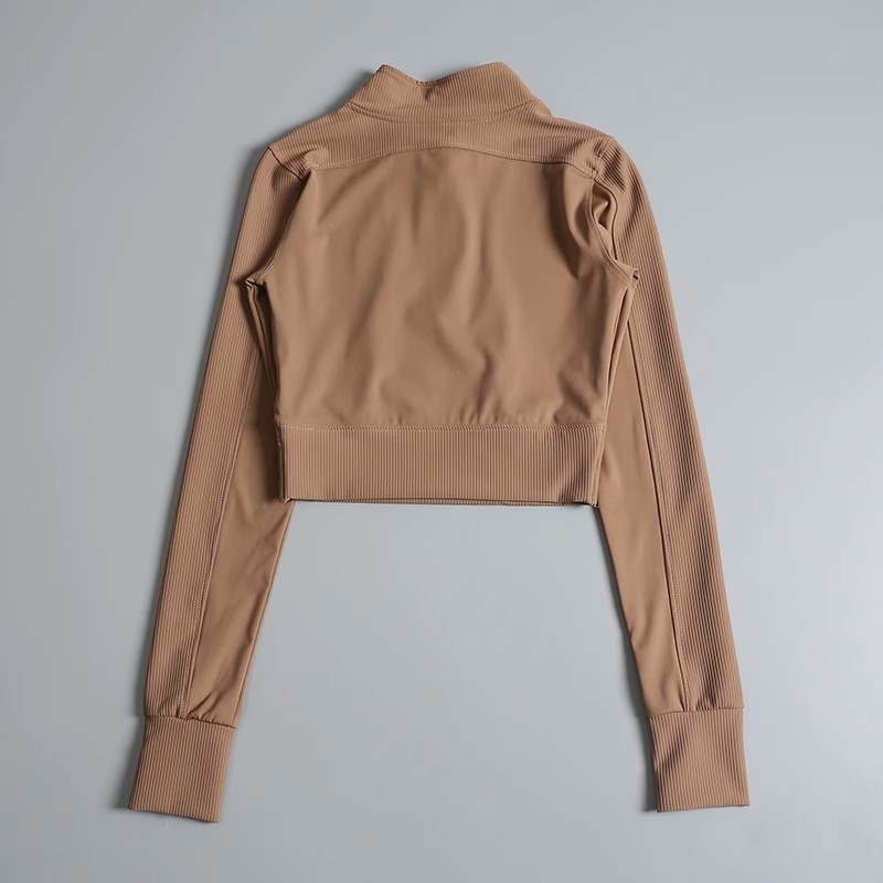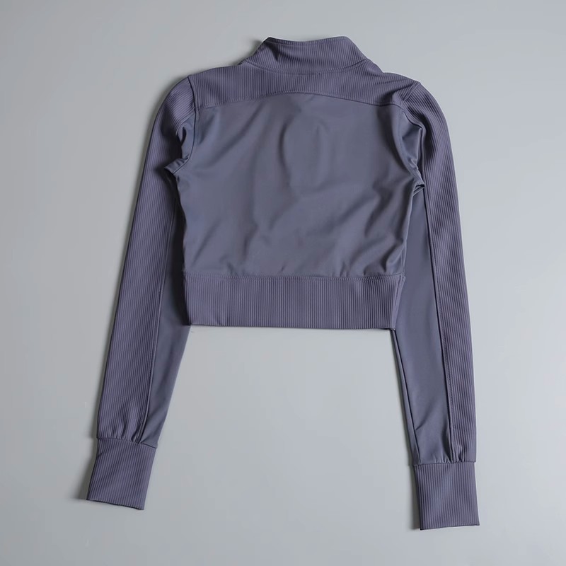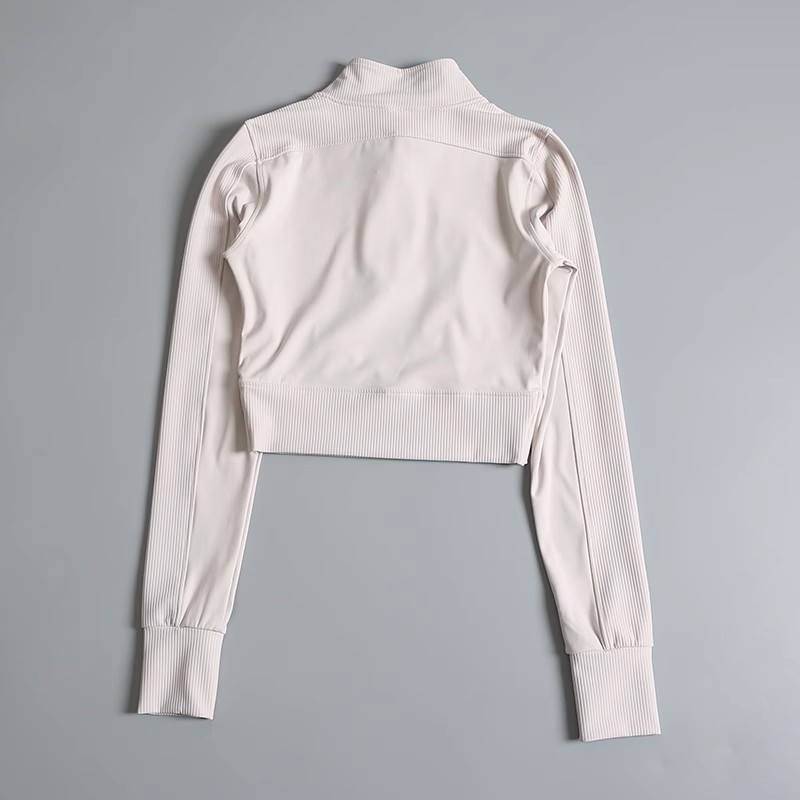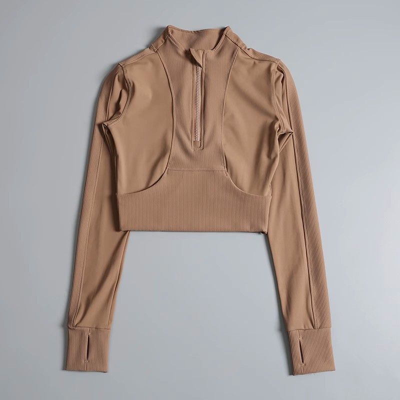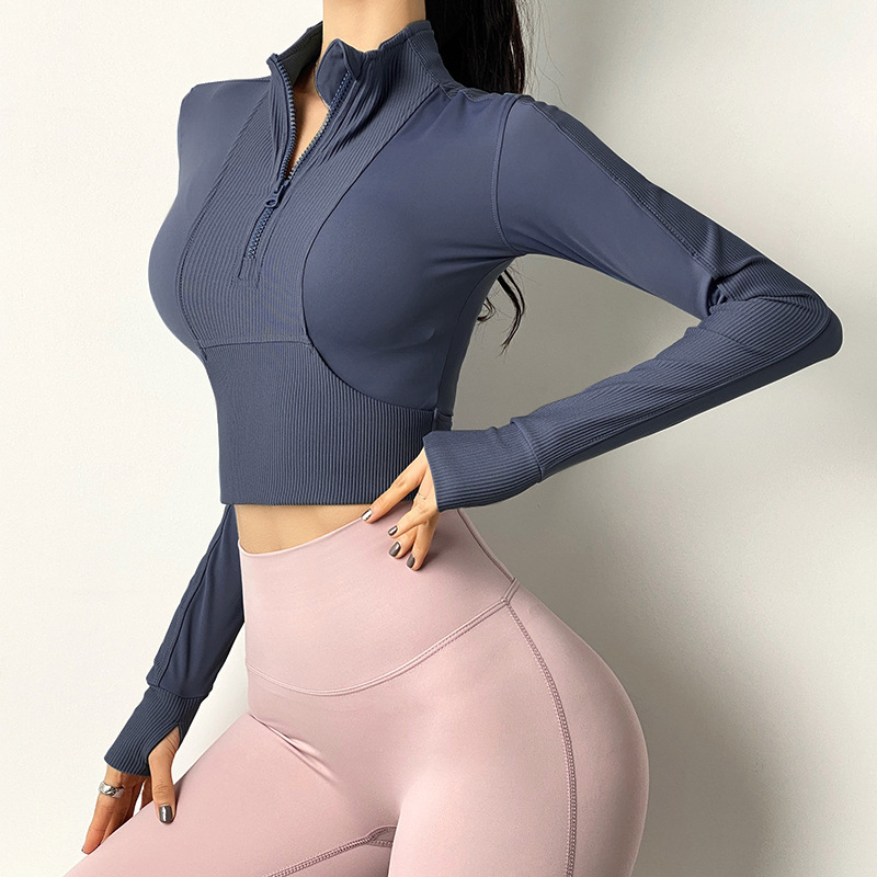 수직 칼라 반 지퍼 타이트 스포츠 코트 여성의 짧은 달리기 피트니스 옷 최고 훈련 슬리밍 요가 옷 긴 소매스토어 가기