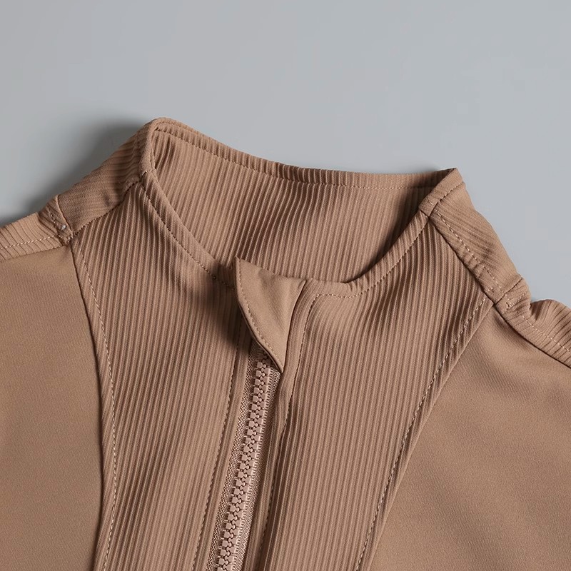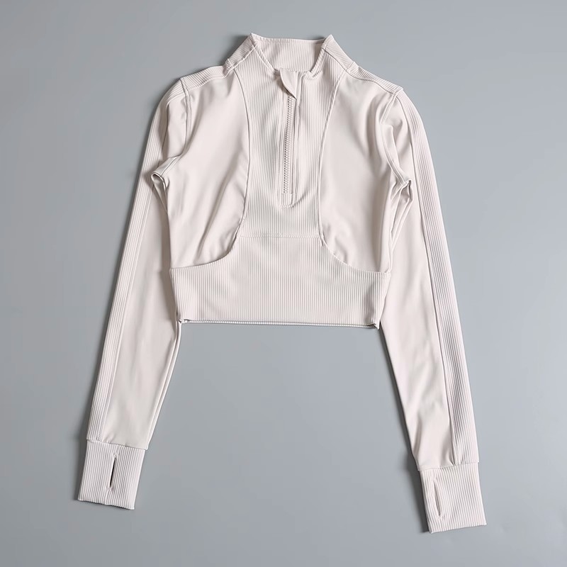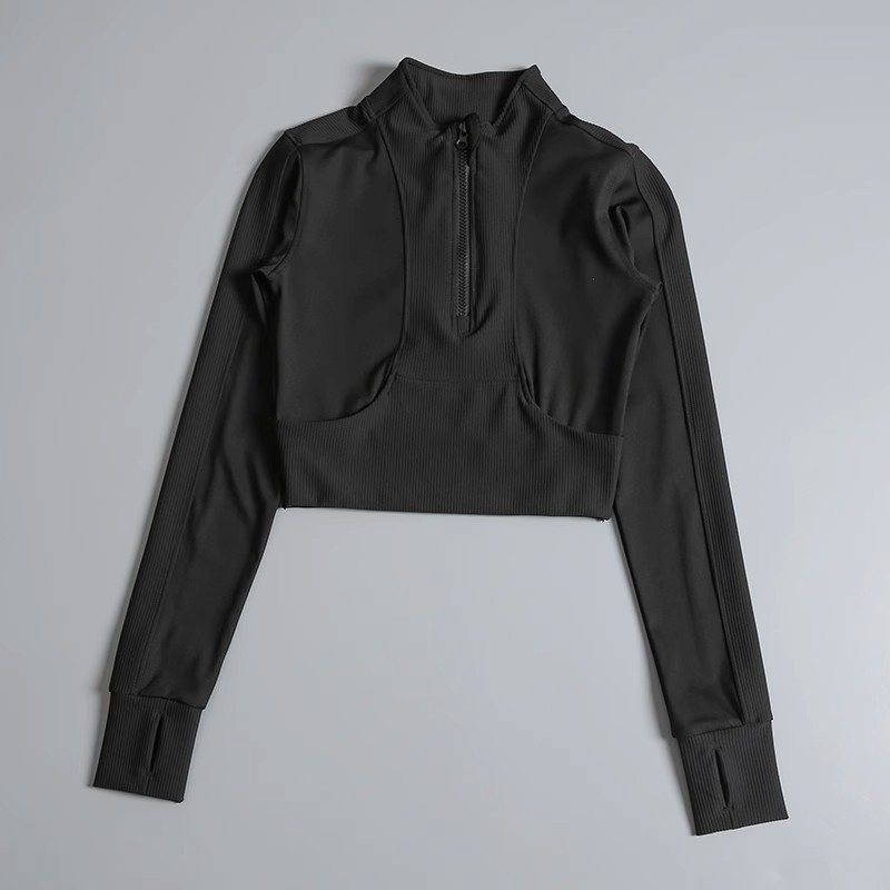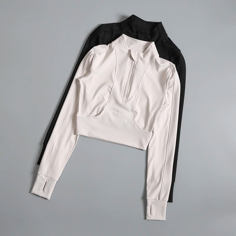 수직 칼라 반 지퍼 타이트 스포츠 코트 여성의 짧은 달리기 피트니스 옷 최고 훈련 슬리밍 요가 옷 긴 소매